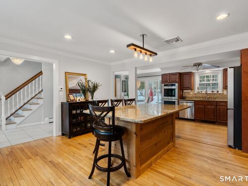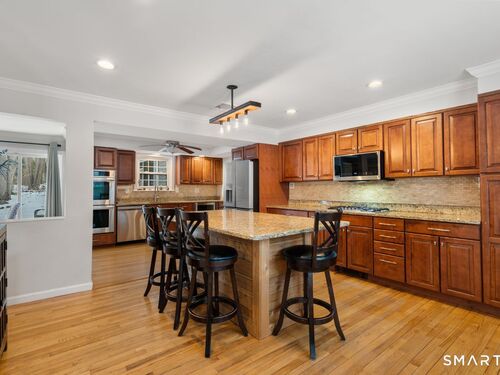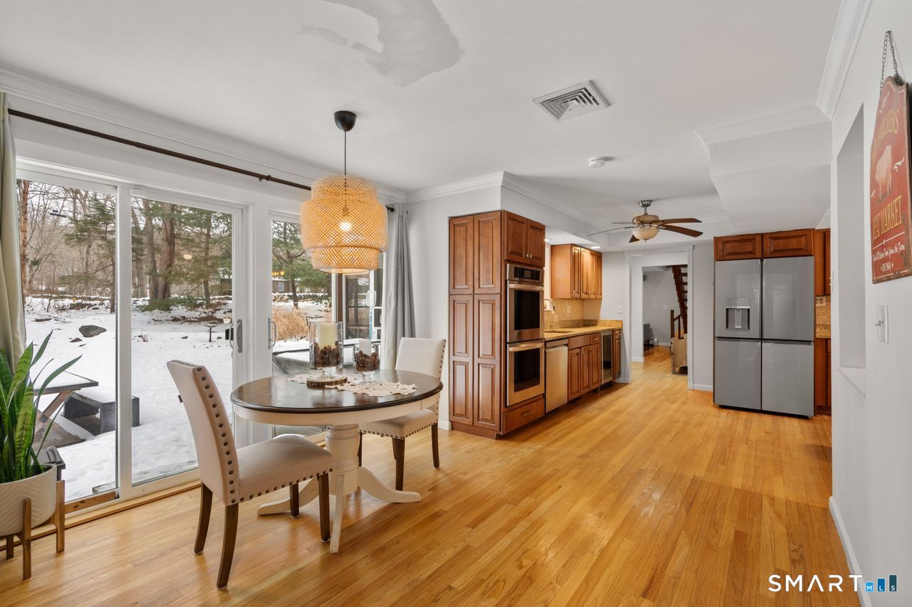 Step into 2026 with a fabulous new home in a sought after neighborhood setting in lower Easton. This classic Colonial, updated for today's lifestyle, offers 6 bedrooms and 3 1/2 baths across 3,600 sq ft of well designed living space with hardwood floors throughout. The main level features a spacious front to back eat-in kitchen with a center island, granite countertops, newer appliances, and sliders that open to a flat backyard with a hot tub. Sunlight fills the sunken living/dining room through bay window plus a main floor laundry adds everyday convenience. The cozy family room is anchored by a stone fireplace and opens to a lovely screened in porch. Recent updates include newer windows, new siding, central air, appliances, new walkway and a new front door, adding to the home's comfort and appeal. Upstairs, the primary bedroom offers a bay window, walk-in closet, and full bath. Five addt'l bedrooms provide flexibility for guests, home offices, a game room, or growing needs. Beyond the home itself, the setting is truly special. Located in one of lower Easton's most coveted neighborhoods, this property is part of the Button Mill Pond private association, a rare, close knit community offering a private beach for swimming, fishing, rafting, sunbathing, social events, and winter ice skating. Just 1/2 mile from the Merritt Parkway and minutes to the Fairfield train, this is a unique opportunity to enjoy the space, warmth, and neighborhood living that are so hard to find in Easton.