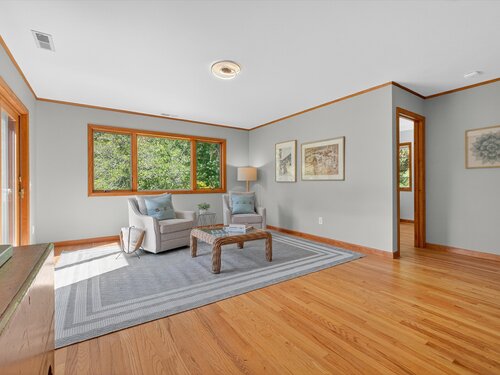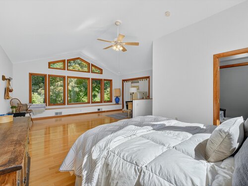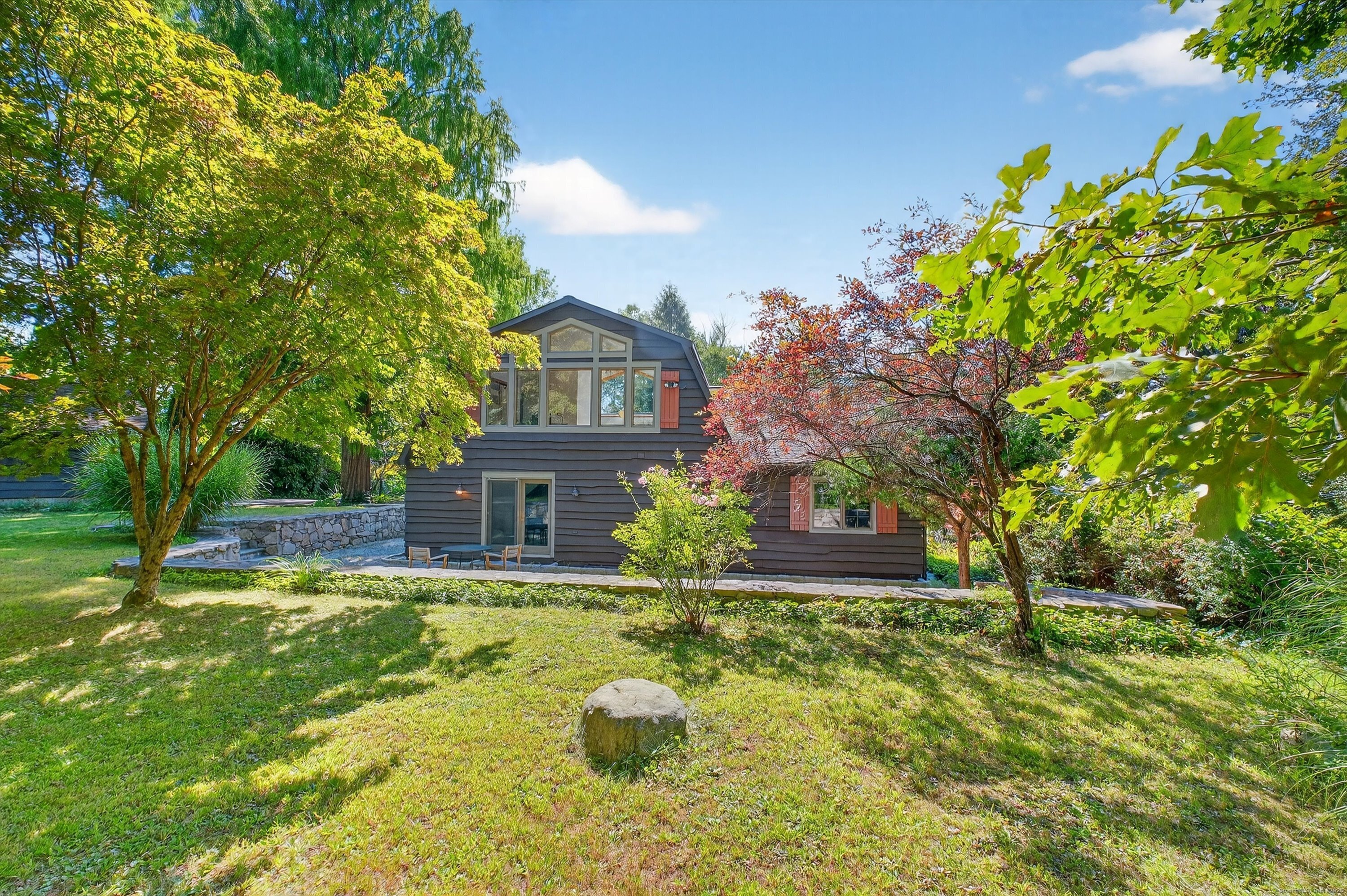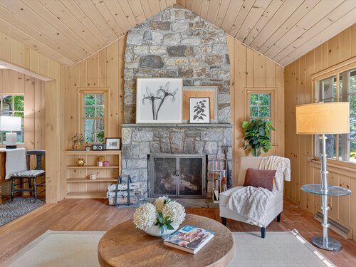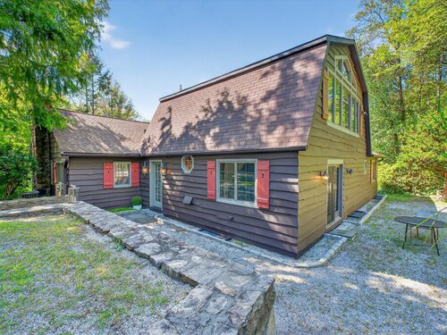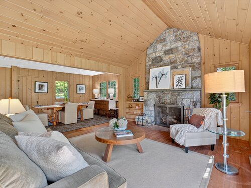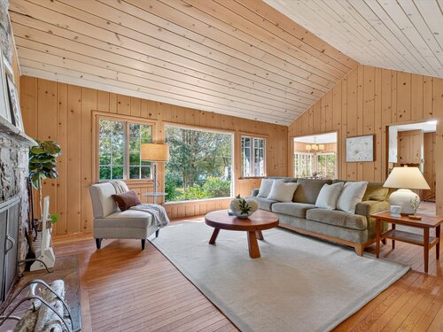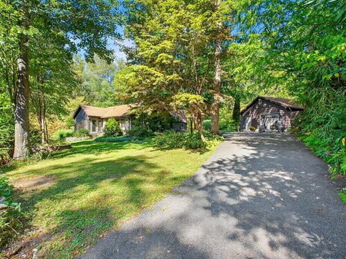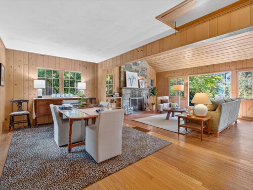 Quintessential lake home in the highly sought-after Candlewood Lake Club! This charming 2-bedroom, 2.5-bath residence offers two primary suites, including one on the main level for comfort and privacy. Nestled on a rare, level 1+-acre lot with seasonal peek-a-boo lake views, the property features a spacious driveway, detached garage with storage, and plenty of outdoor space. Inside, a welcoming living room with stone fireplace and beamed ceiling exudes warmth, while the dining room and four-season sunroom with a wall of windows invite natural light. The main level includes a well-appointed kitchen, family room/den with patio access, a den/office and -a primary suite with walk-in closet, bath, and private backyard entry. Upstairs, another primary suite offers a private retreat for guests or extended family. As a club member, enjoy Candlewood Lake Club's amenities: clubhouse, private 9-hole golf course with pro shop, tennis, pickleball, marina, beach with swimming docks, camp, ball field, hiking trails, winter boat storage, and more-all supported by on-site PGA and tennis pros. Minutes from New Milford Green's restaurants, boutiques, the Elephant's Trunk Flea Market, Stew Leonard's, and the CT Wine Trail. With its rare acreage, prime location, and endless potential, this is the quintessential Candlewood Lake retreat!