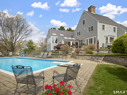 First time ever on market. This light-filled colonial sits high on a prime lot with views on beautiful Keelers Ridge. Custom-built by Kellogg Brothers, this home has 3 fireplaces and exceptional craftsmanship throughout. The property is open, sunny, and features a beautiful pool, outdoor living area, and expansive lawns. The expanded eat-in-kitchen has two islands, a 48" Thermadore gas range, double wall ovens,, and more cabinets than you will need. The kitchen is open to family room with fireplace and a sunroom with cathedral ceiling that opens to outdoor living area. The living room is comfortable, yet has a timeless elegance with fireplace, built-ins, beautiful windows and also opens to outdoor oasis. The dining room has floor to ceiling windows and a beautiful built-in. There is a paneled, tucked-away office with a new full bath and a rec room over the garage, in addition to a sunroom with new full bath convenient to the pool. Upstairs is a luxurious primary suite with spa bath, fireplace, and walk-in closet to relax in at the end of a long day. There are 3 more spacious bedrooms and an extra large hall bath. The lower level has 1500 sq ft that is easily finished. This elegant, comfortable home with a special backyard oasis is located close to Quarry Head Park with scenic hiking trails and a neighborhood great for walking, biking, running, and socializing. This home has it all. You will love living here!