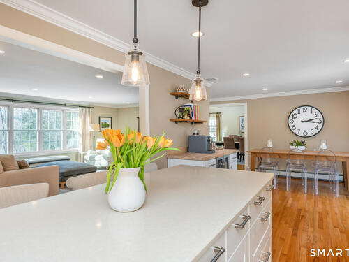 This beautifully updated 4-bedroom, 3-bath home offers living in one of Wilton's most sought-after locations near the Lake Club. Warm and inviting throughout, this home features a light-filled open-concept with eat in kitchen and huge island and living room-ideal for entertaining holidays and everyday living. A spacious dining room with fireplace offers flexibility for today's lifestyle. Relax and enjoy down time by the fire in the family room. Enjoy peaceful outdoor living on the expansive deck overlooking a professionally landscaped yard, complete with fire-pit area perfect for s'mores and gatherings. Major updates include a new roof, windows, TREX deck, boiler, hot water heater, garage doors, well pump, water softener and more. Bathrooms have been fully renovated and fresh paint add to the move-in-ready appeal. Quiet, walkable street on cul de sac -ride bikes, host parties or simply unwind in this impeccably maintained turnkey home offering quality, care and pride of ownership. INTERIOR PHOTOS COMING THIS WEEKEND
