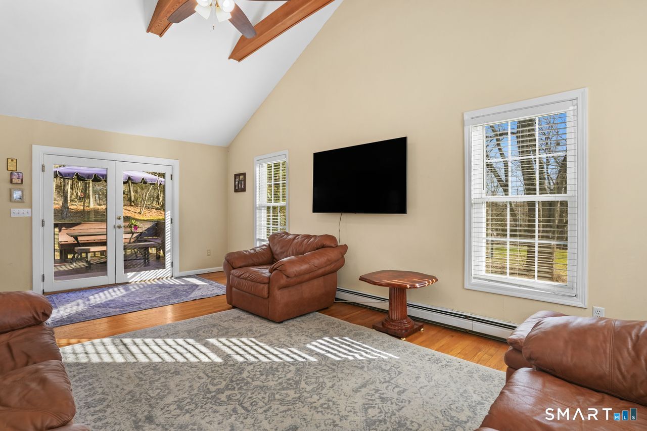 Vaulted Ceiling, Balcony/Deck, Ceiling Fan, French Doors, Hardwood Floor