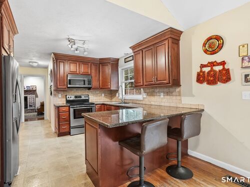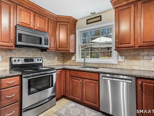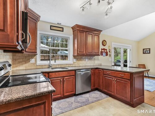LOCATION, LOCATION, LOCATION!! This home is conveniently located to I84 & Main St South for Easy Commute. Beautiful kitchen with breakfast bar open to the Great Room/Family Room. Chestnut cabinets, new refrigerator, newer boiler and new stone countertops in bathrooms. Front to back living room with wood-burning fireplace. Family room has vaulted ceiling and French door to deck overlooking a beautiful yard. Finished lower level REC room can also be used as a 4th bedroom. Upper level has spacious Primary bedroom with full bath & whirlpool tub. Central Air, 2 car garage, located on a cul-de-sac with great commute location are just a few of its great features!