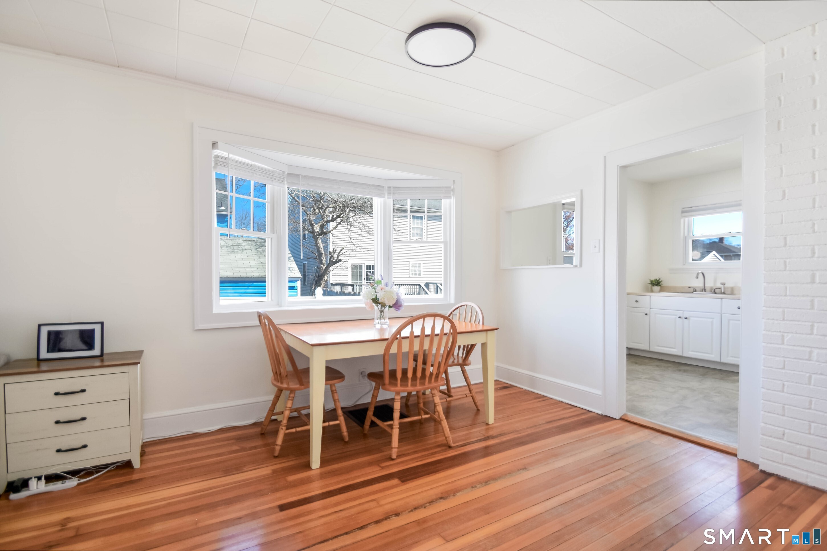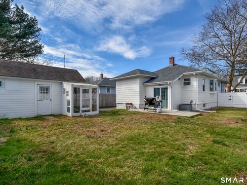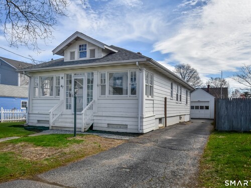 Welcome to this charming, sun-filled cottage / ranch featuring an inviting enclosed porch and tons of curb appeal. Inside, you'll find recently refinished original hardwood floors, central air, and a warm, welcoming layout. The home offers an expansive main bedroom with a walk-in closet, while the second bedroom includes period details with beautiful built-in shelving. The bathroom has been tastefully renovated and includes a tub. Enjoy a lovely, level backyard perfect for picnics and entertaining as well as a large basement ideal for storage or a hobby space. Recent upgrades include a newer roof with architectural shingles, along with a newer water heater. Additional highlights include a one car garage and ample on-site parking. Conveniently located near Stratford's Recreation Center and Short Beach, offering amenities such as golf, tennis, basketball, playgrounds, and more. Within close proximity to major highways and the rail road station making for an easy commute. Move right into this charmer. Don't miss this opportunity!