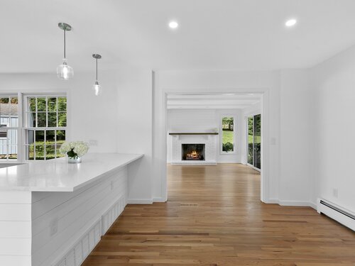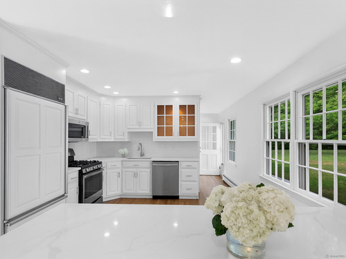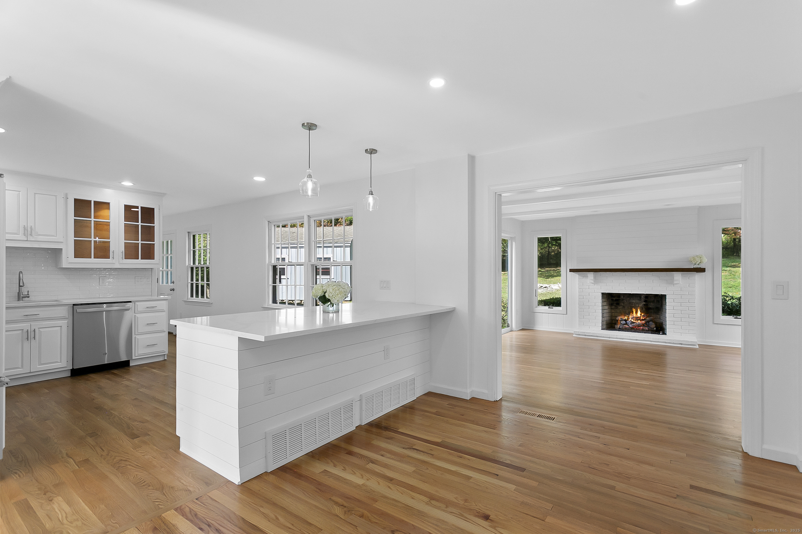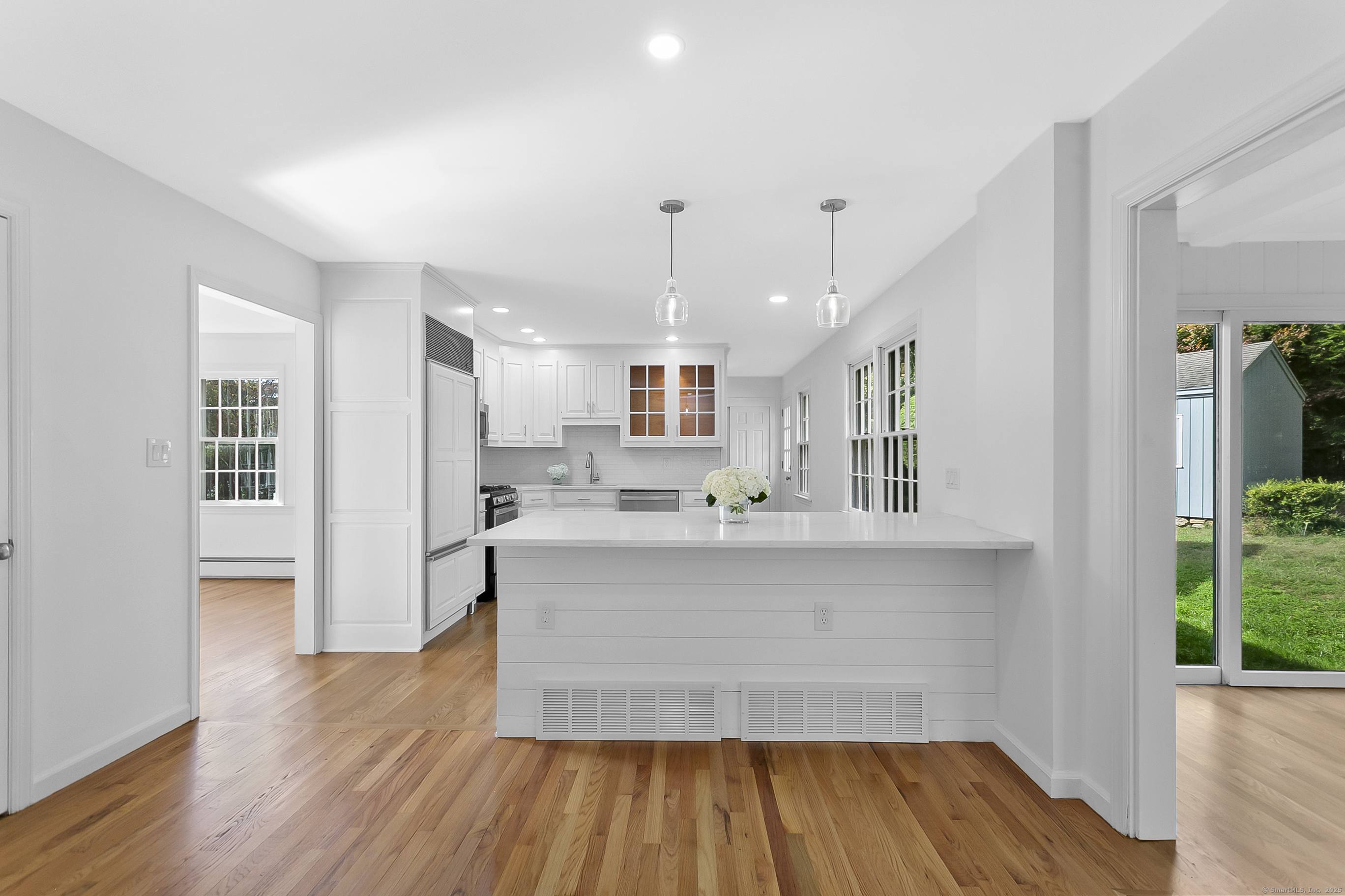 A picturesque, expanded and impeccably renovated Cape Cod home located in highly desirable Southport (set off far from road) awaits. Welcome home to 478 Hulls Highway where the character of this Cape blends with today's must have updates. This sun-drenched home features two levels of living, 8 spacious rooms including 3 bedrooms and 2.5 beautifully renovated baths. A rare main level primary suite adds to the convenience and appeal of this special property. Set on an expansive 1.0 acre lot this home has been meticulously updated throughout. Recent home improvements include: all new bathrooms with high-end finishes, renovated eat-in kitchen with new Quartz countertops, new appliances, new backsplash and painted cabinetry, entire interior has been freshly painted, new lighting and hardware throughout, striking new granite hearth fireplace, new central air system, updated plumbing fixtures and a newly paved driveway. The open and flexible floor plan allows for comfortable everyday living & effortless entertaining. Unfinished lower level is ideal for great storage or future home expansion with 864 sf. Attached two car garage provides easy entry into home. Flooded with natural light and filled with charm this home truly has it all. Step outside to a private and peaceful backyard with patio and great space to unwind or host guests. Ideally located and just minutes to Southport Village, beaches, the harbor, top-rated schools and train access - everything you need is at your doorstep!