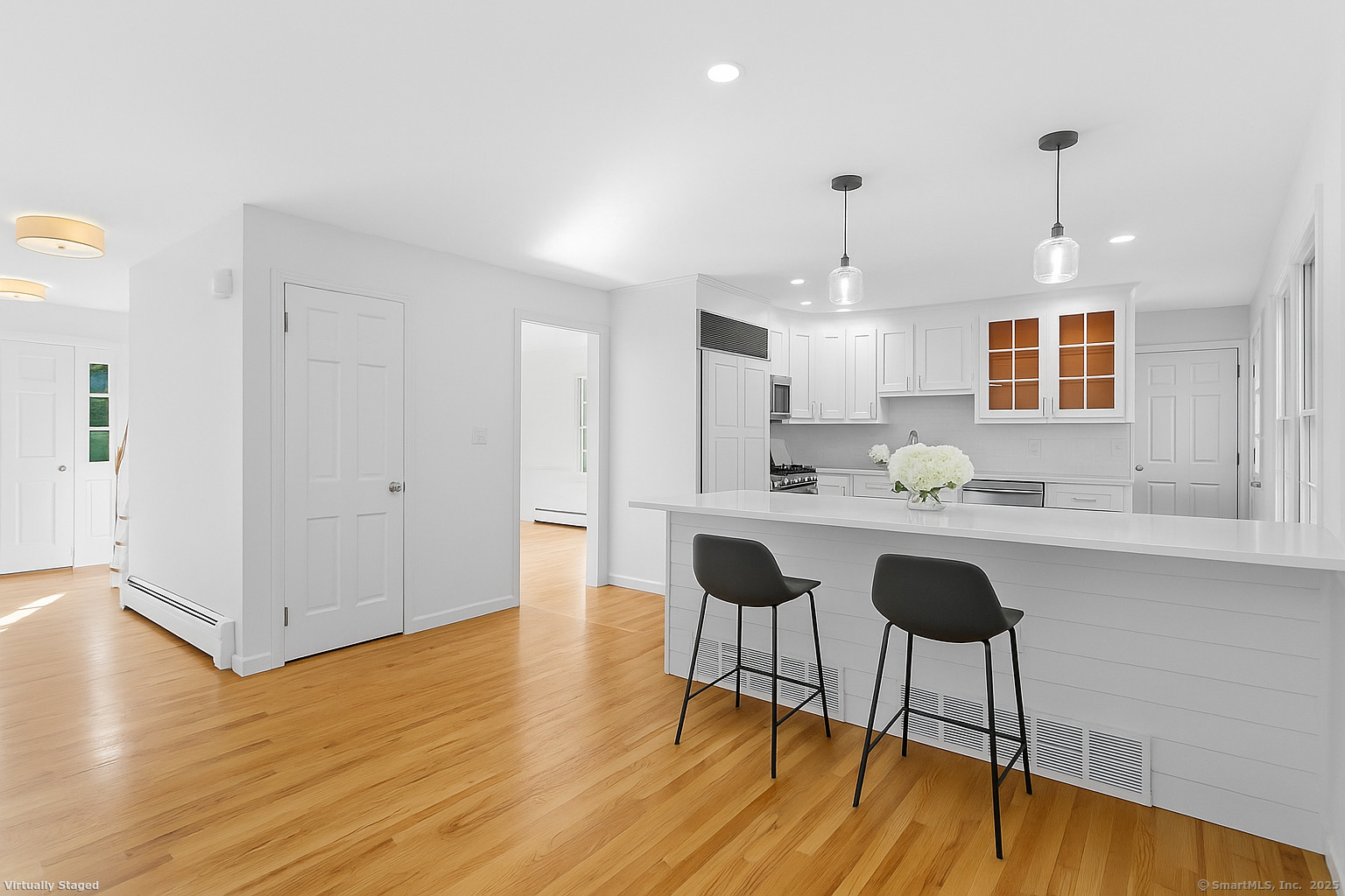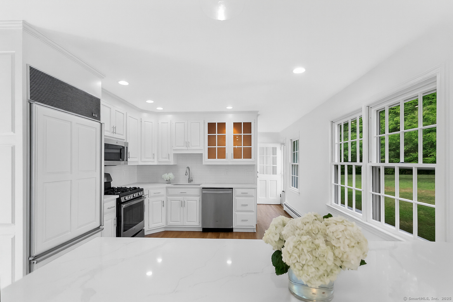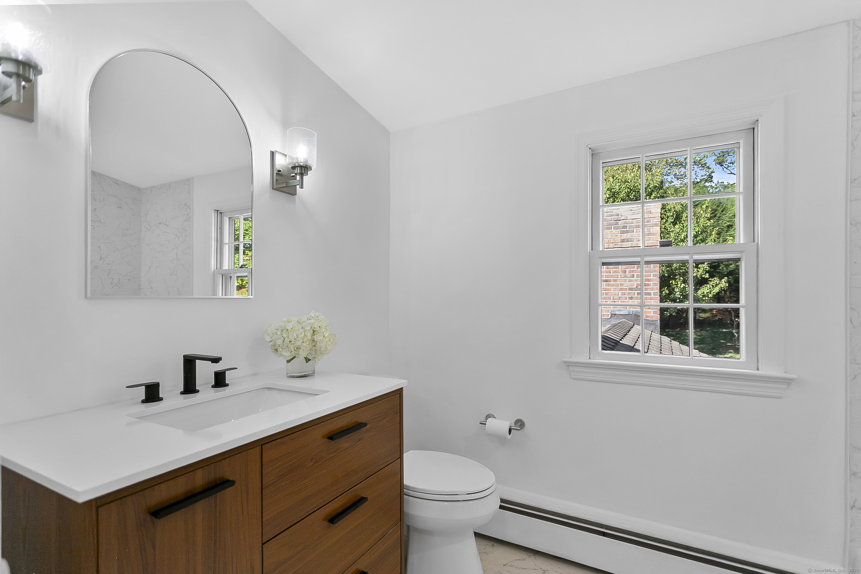 A picturesque, expanded and impeccably renovated Cape Cod home located in highly desirable Southport (set off far from road) awaits. Welcome home to 478 Hulls Highway where the character of this Cape blends with today's must have updates. This sun-drenched home features two levels of living, 8 spacious rooms including 3 bedrooms and 2.5 beautifully renovated baths. A rare main level primary suite adds to the convenience and appeal of this special property. Set on an expansive 1.0 acre lot this home has been meticulously updated throughout. Recent home improvements include: all new bathrooms with high-end finishes, renovated eat-in kitchen with new Quartz countertops, new appliances, new backsplash and painted cabinetry, entire interior has been freshly painted, new lighting and hardware throughout, striking new granite hearth fireplace, new central air system, updated plumbing fixtures and a newly paved driveway. The open and flexible floor plan allows for comfortable everyday living & effortless entertaining. Unfinished lower level is ideal for great storage or future home expansion with 864 sf. Attached two car garage provides easy entry into home. Flooded with natural light and filled with charm this home truly has it all. Step outside to a private and peaceful backyard with patio and great space to unwind or host guests. Ideally located and just minutes to Southport Village, beaches, the harbor, top-rated schools and train access - everything you need is at your doorstep!