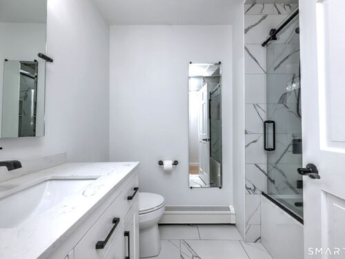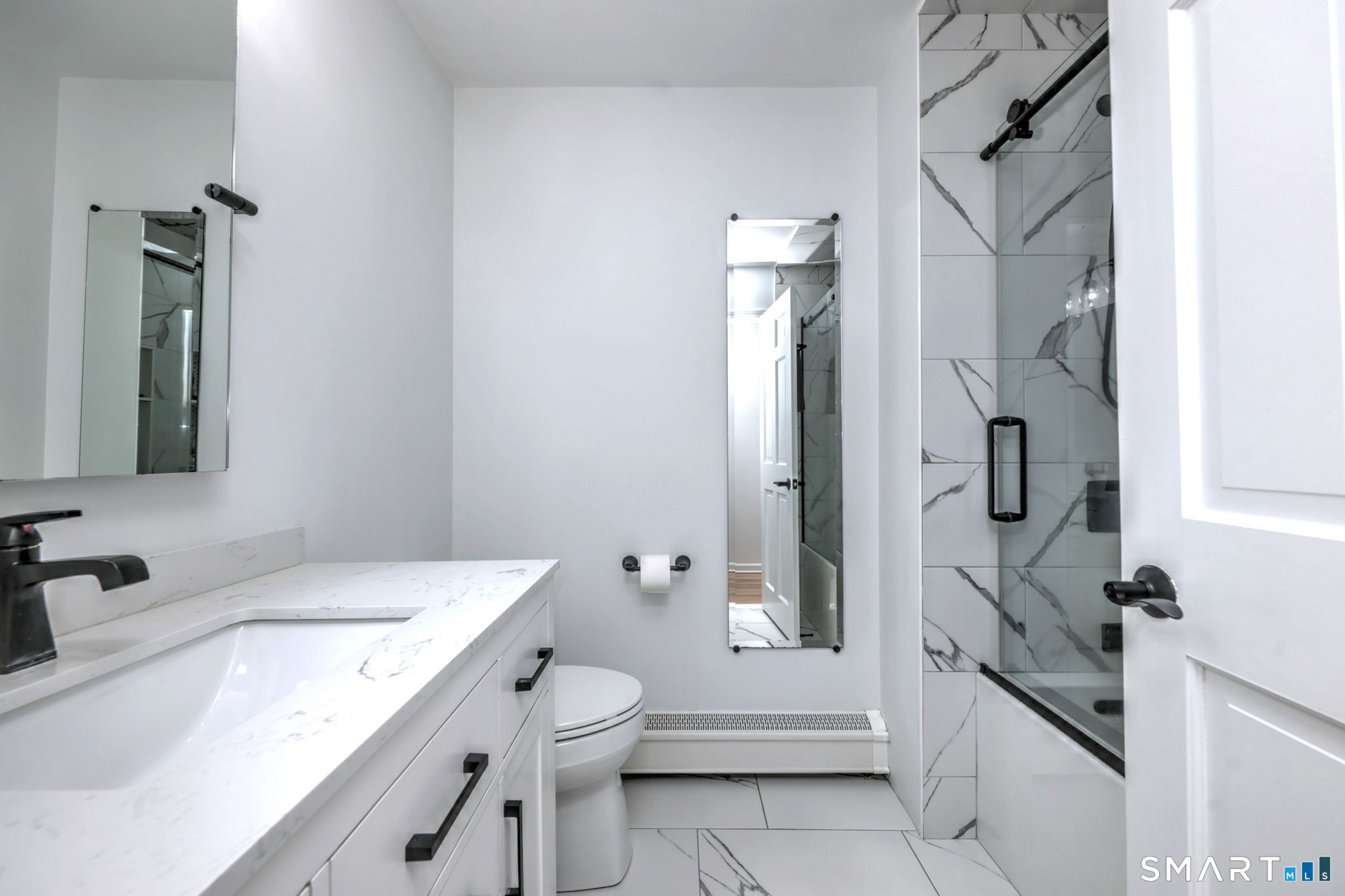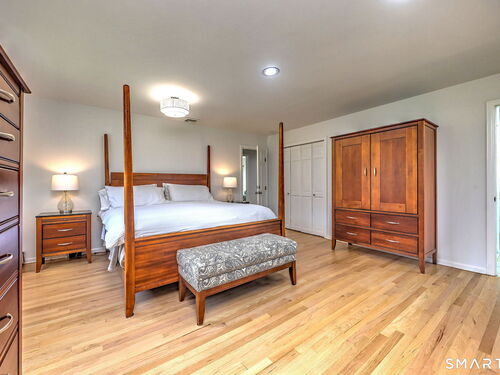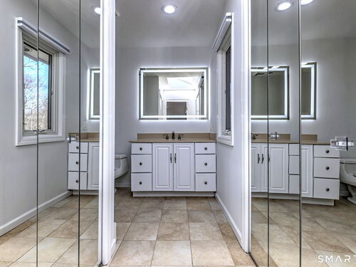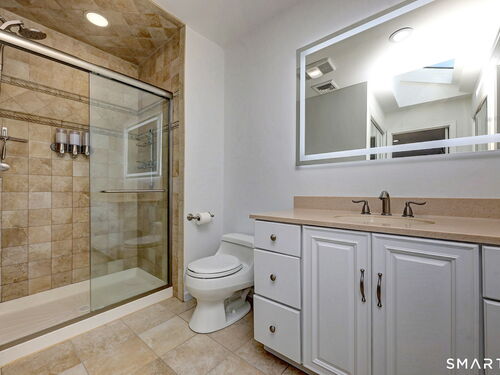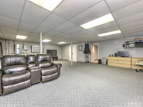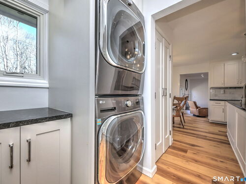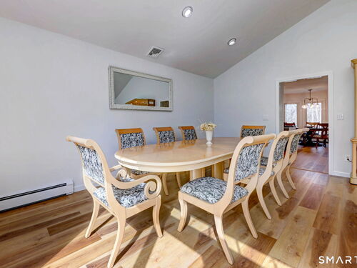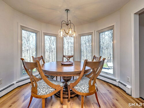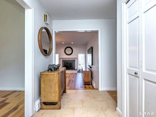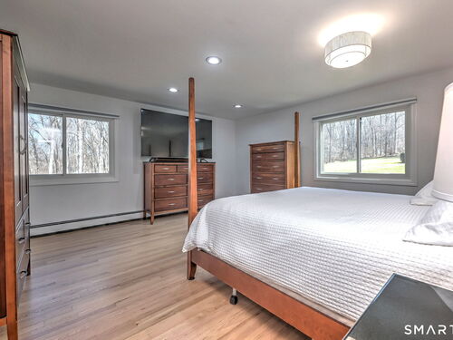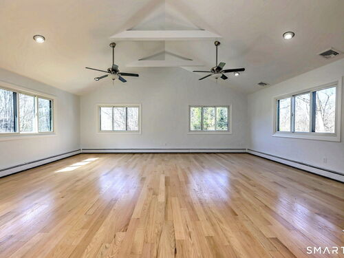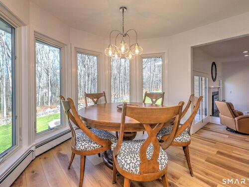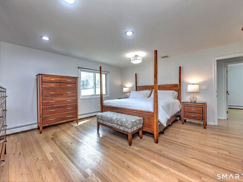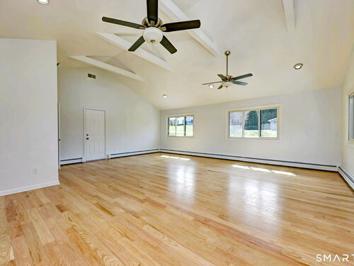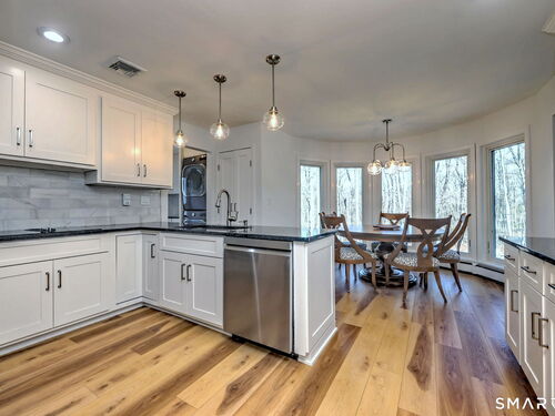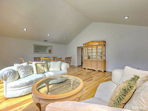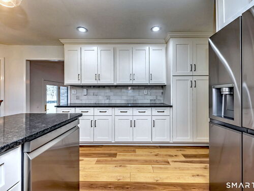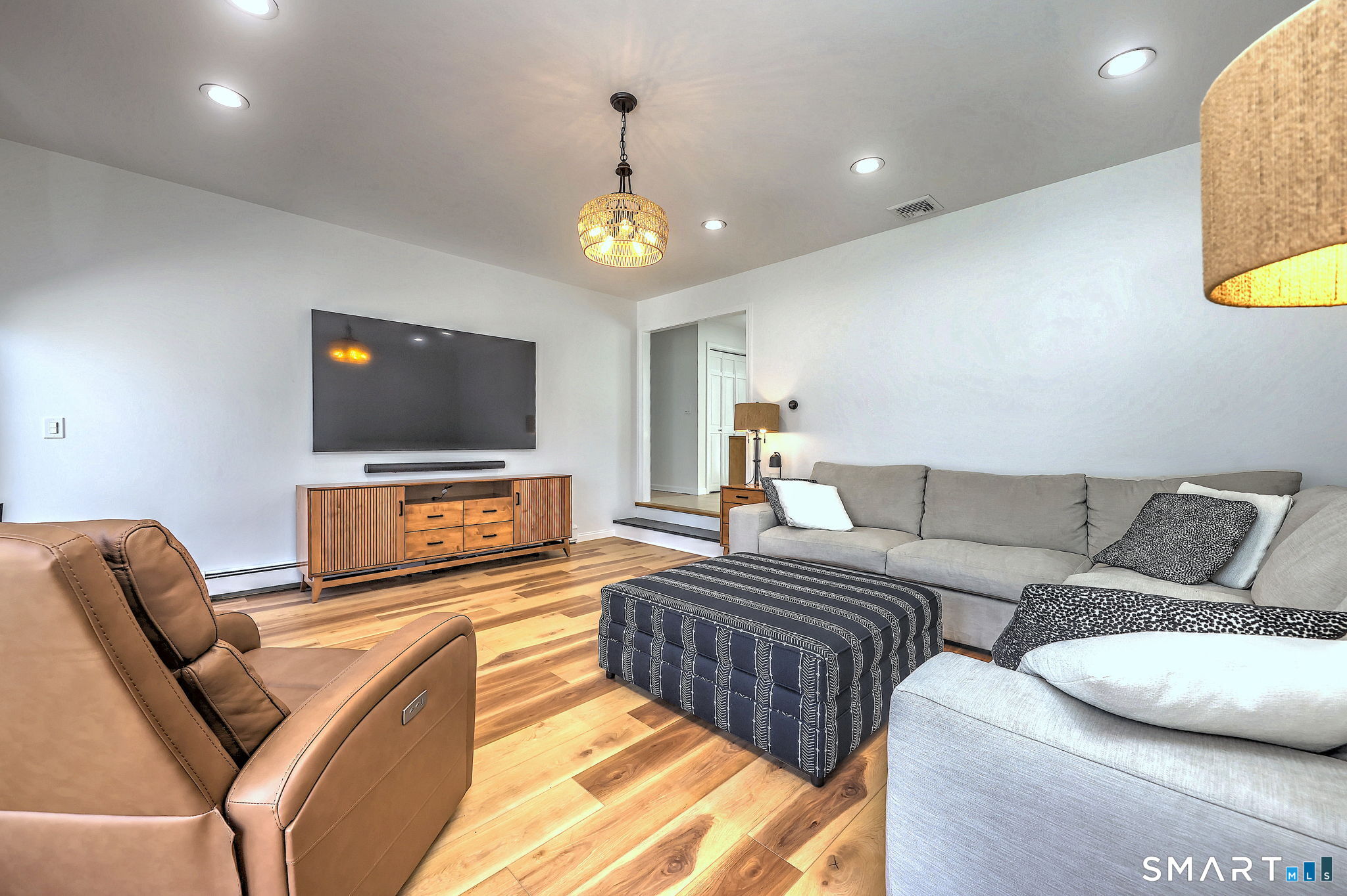 Completely remodelled from top to bottom, this stunning home combines modern design with exceptional energy efficiency featuring solar panels for sustainable cost-saving living. A bright open living and dining area showcases a vaulted ceiling along with a distinctive screened picture window that fills the room with natural light. Newer kitchen with abundant cabinetry and a one-of-a-kind dining area with circular window overlooking rear yard. Inviting family room with cozy fireplace. Comfortable primary bedroom offers newer bath, plenty of closet space (including WIC). Flexible floor plan is designed to accommodate a variety of living needs. Secluded from the main bedroom wing, the fourth bedroom features a vaulted ceiling and provides versatile options for in-law accommodations, home office or guest suite. Heated finished lower level adds approx. 700 feet. Garage comfortably accommodates 3 vehicles. Large circular paver patio provides inviting outdoor space. Younger mechanicals throughout including 3 yr. old roof, new driveway (2025), new windows (2025) and more. Solar panels with battery backup that not only eliminate electric bills but also establish quarterly credits from Eversource (See info in supplements).This turnkey home offers modern updates, energy efficiency and versatile living spaces. Potential pool site.