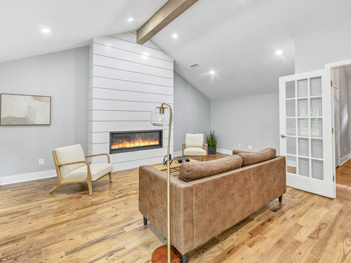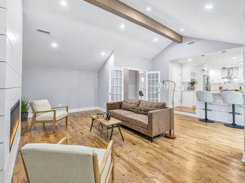 Remodeled, Vaulted Ceiling, Balcony/Deck, Beams, Fireplace, Hardwood Floor