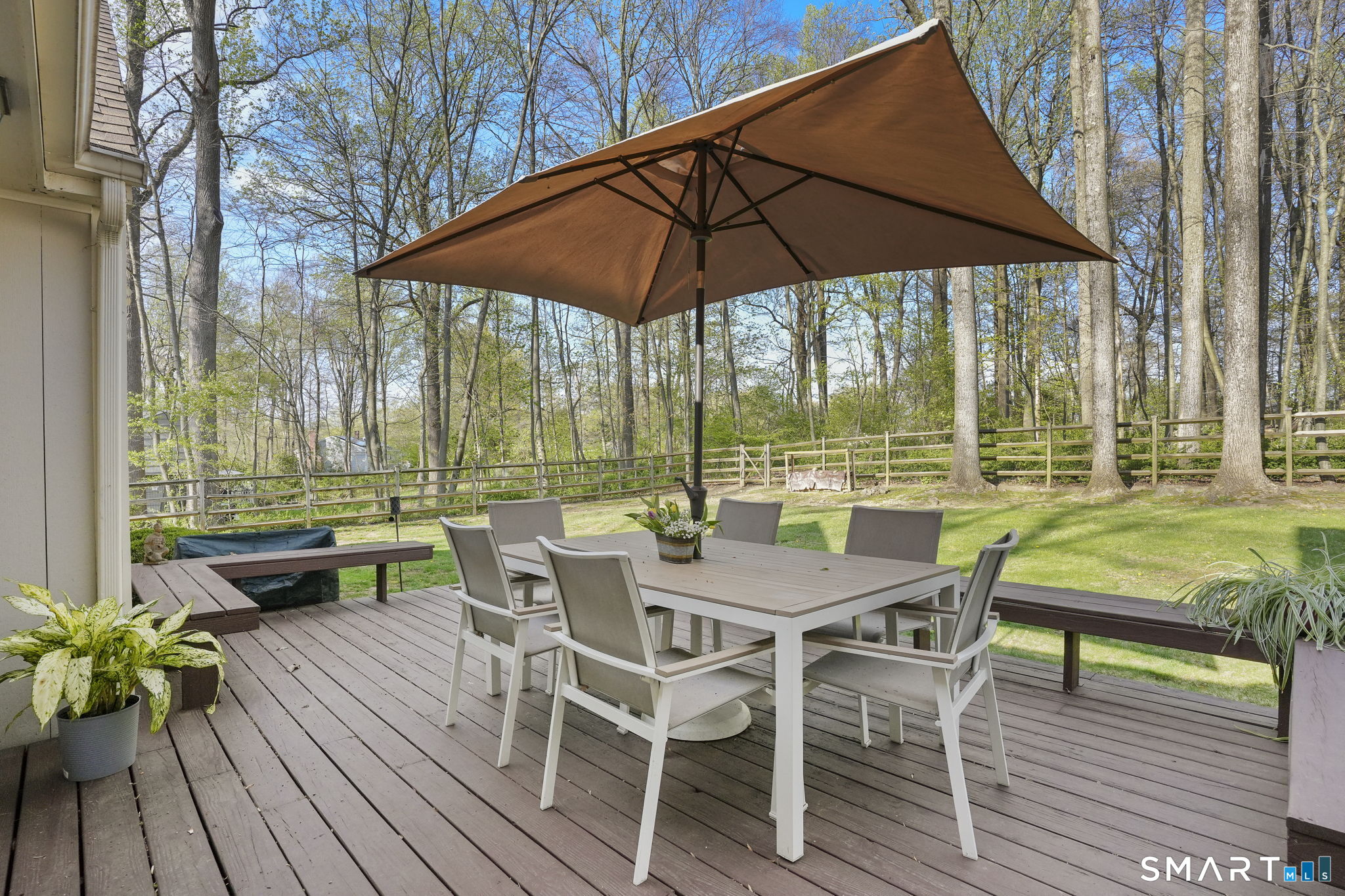 Welcome to 49 Midland-where classic charm meets modern comfort in one of Trumbull's most desirable locations. Set on a picturesque, park-like acre, this beautifully updated and meticulously maintained colonial offers exceptional curb appeal with mature landscaping and a serene, private setting. Ideally located just minutes from Trumbull Center, top-rated schools, and major highways. Inside, this spacious 4 bedroom home is warm and inviting from the moment you enter. The sun-filled living room features custom built-ins and one of two fireplaces, creating a perfect space to relax or entertain. The dining room flows effortlessly into the kitchen, making gatherings both easy and enjoyable. A generously sized family room provides an ideal setting for everyday living, complete with a second fireplace for cozy nights in. Upstairs, you'll find four bedrooms-including one currently used as a home office-along with a full hall bath and a comfortable primary suite. The finished lower level adds valuable living space while still offering ample storage. Step outside to enjoy the fully fenced, flat backyard ideal for hosting summer barbecues on the deck with built-in seating and dining area. This outdoor space is designed for both entertaining and everyday enjoyment. As a special bonus, you can even take in Trumbull Day fireworks right from your front lawn. 49 Midland is truly a place to call home-offering space, style, and a setting that's hard to match.