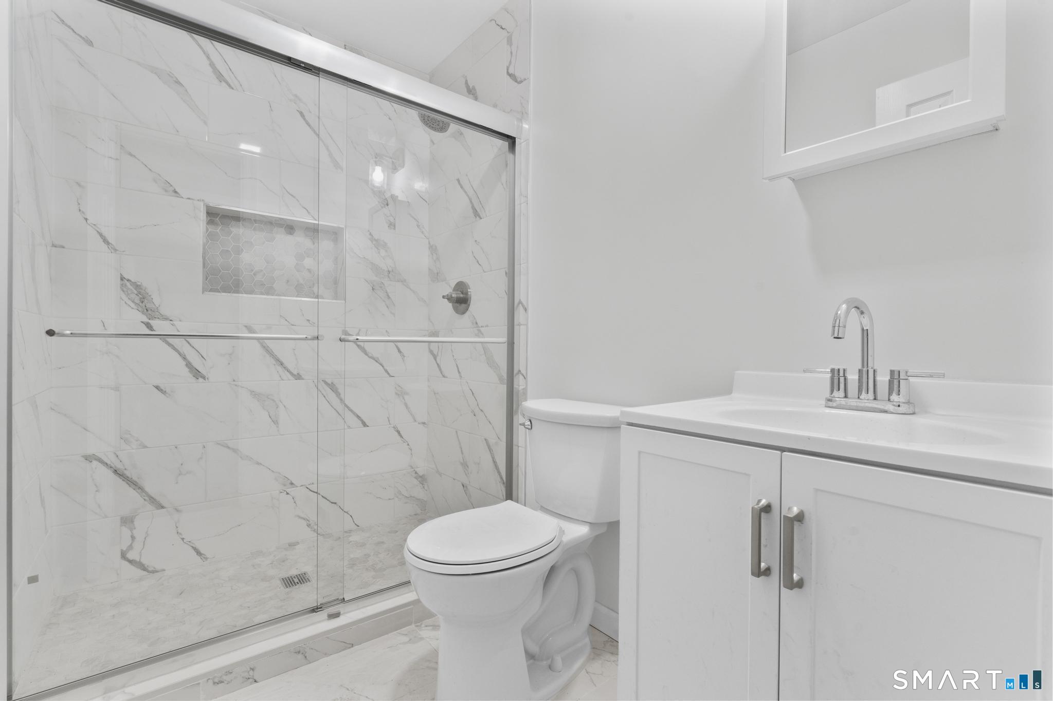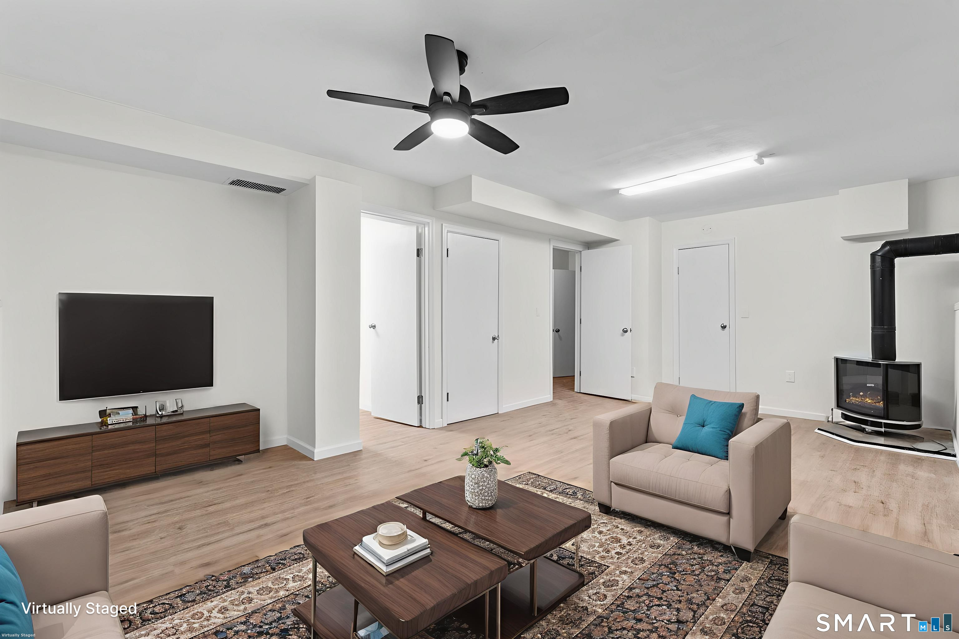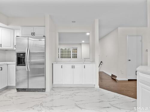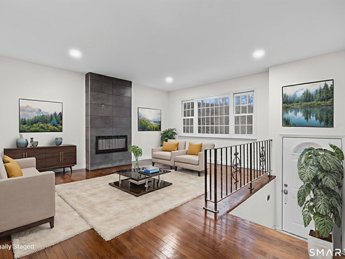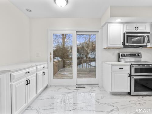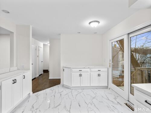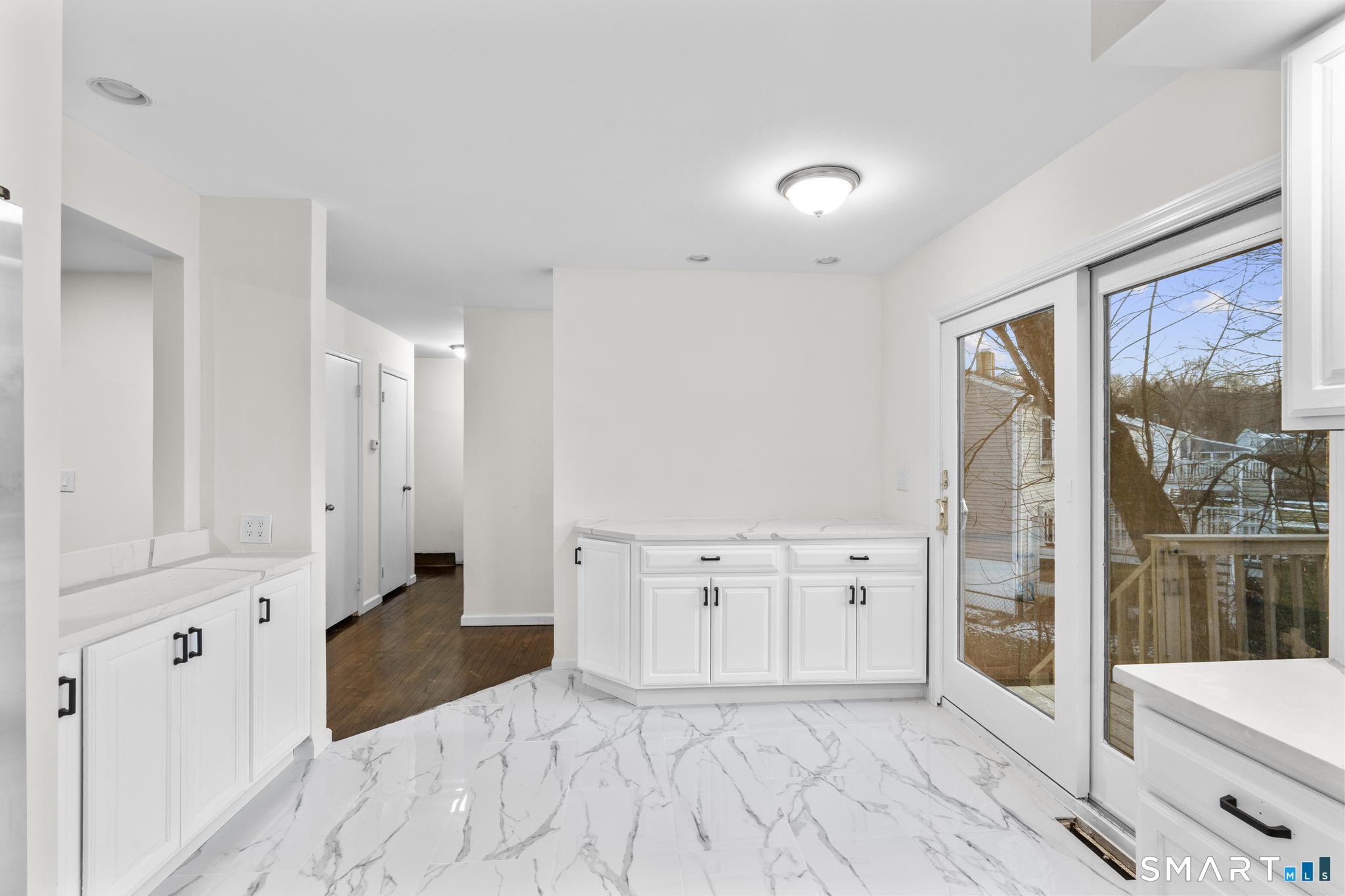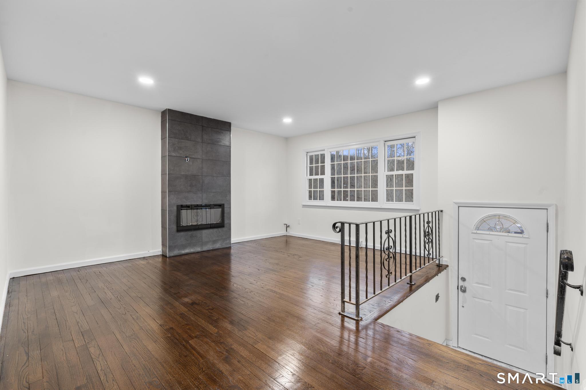 Welcome to 49 Sleepy Hollow Drive, an updated raised ranch set on a desirable corner lot, offering modern upgrades, flexible living space, and excellent New York commuter access. Located on a quiet residential street just minutes from I-84, Route 7, Metro-North, and the NY border, this home provides both privacy and convenience. The sun-filled main level features beautifully refinished hardwood floors, recessed lighting, and a stylish fireplace anchoring the living room. The brand-new kitchen showcases white cabinetry, quartz countertops, stainless steel appliances, and elegant marble-style flooring, with sliding glass doors leading to a private rear deck ideal for entertaining. The upper level offers 3 comfortable bedrooms and a completely renovated full bathroom in a clean, neutral palette. The finished lower level adds exceptional versatility, featuring a spacious family or recreation room, additional finished rooms ideal for a home office, guest suite, or potential fourth bedroom, multiple fully renovated bathrooms with walk-in tiled showers, a laundry area, ample storage, and direct access to the attached garage, making it well-suited for in-law or multi-generational living potential. A turn-key raised ranch offering space, flexibility, corner-lot appeal, and commuter-friendly living in a prime Danbury location.