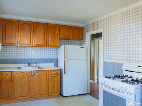 This darling three bedroom Cape is an excellent opportunity to get into ownership at a great price with room to expand in both size and value. Recent high sales in the neighborhood are in the $550K ballpark. The flat, deep .11 acre lot is located in close proximity to Sacred Heart & St Vincents. The first floor is 792 sq ft with a living room, eat-in-kitchen, two bedrooms, a full hall bathroom, side porch and interior access to the full unfinished basement. The second floor is a 360 sq ft third bedroom (heated). This is an as-is sale however the home has been lovingly cared for by the same family since the 60's. Natural gas heat. 396 sq ft detached garage. CT Basement french drains and sump pump. Roof is newer. Hot water heater is 2017. N2 Mid-Century zone.