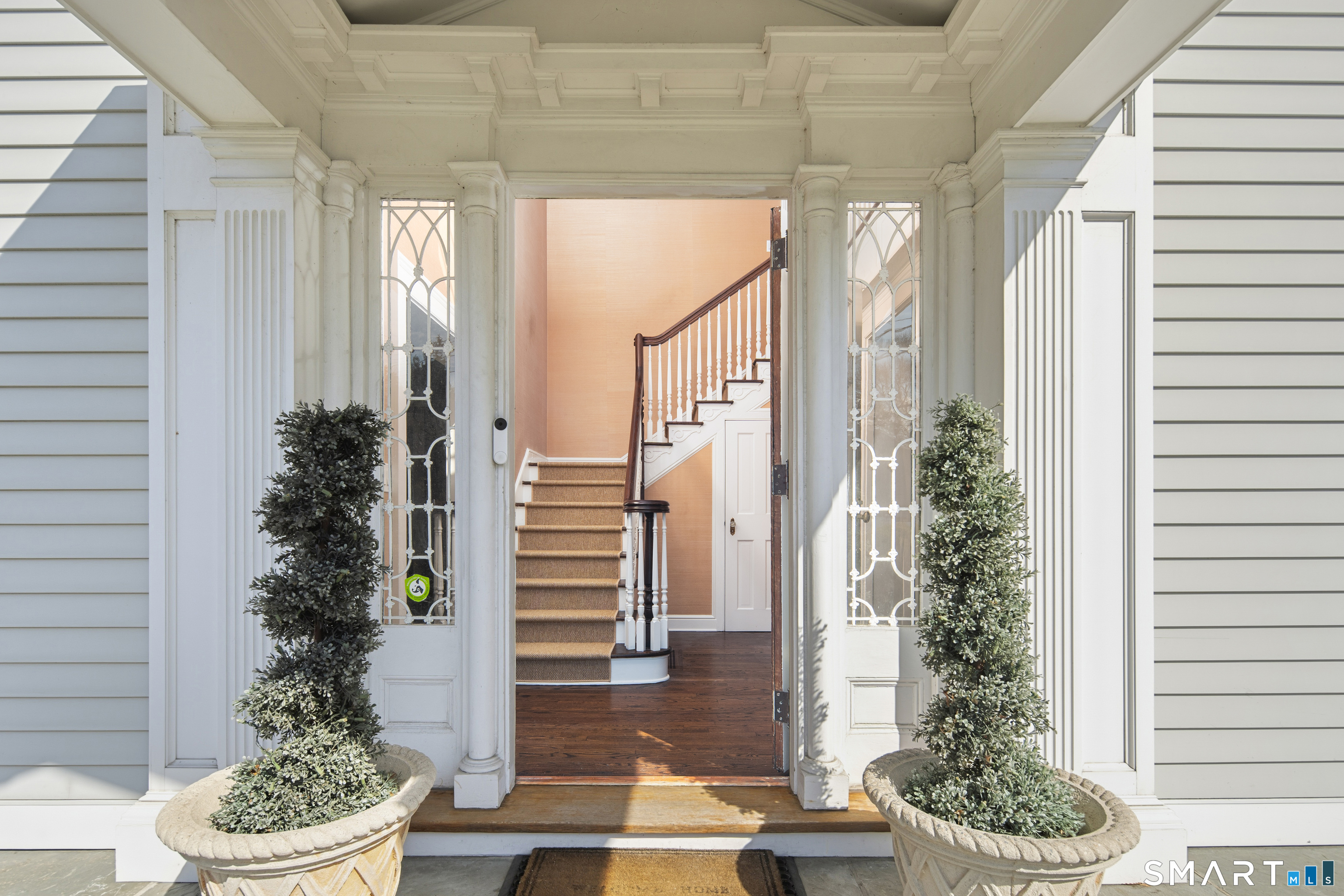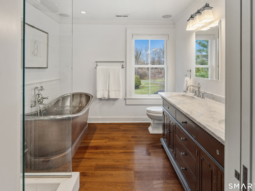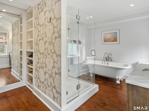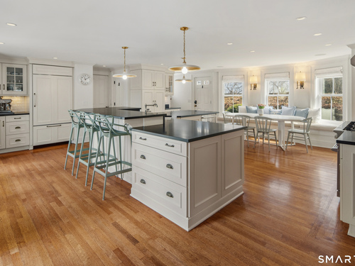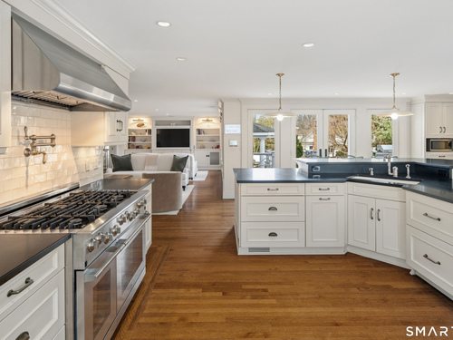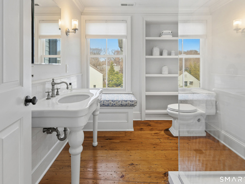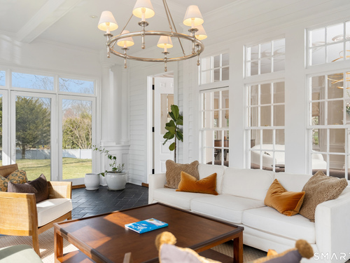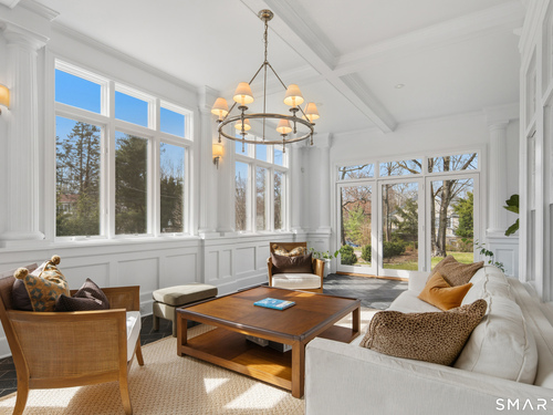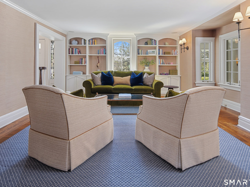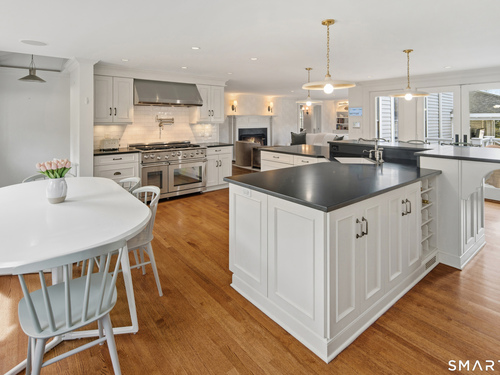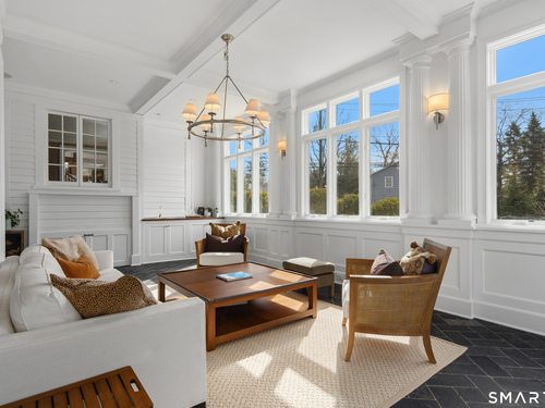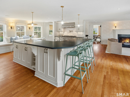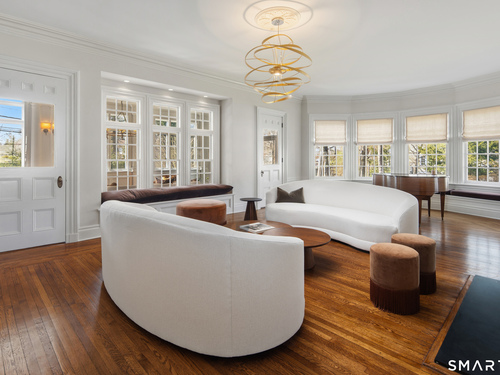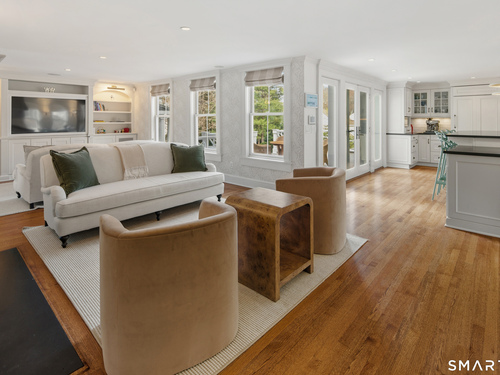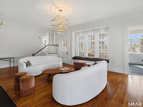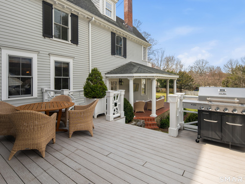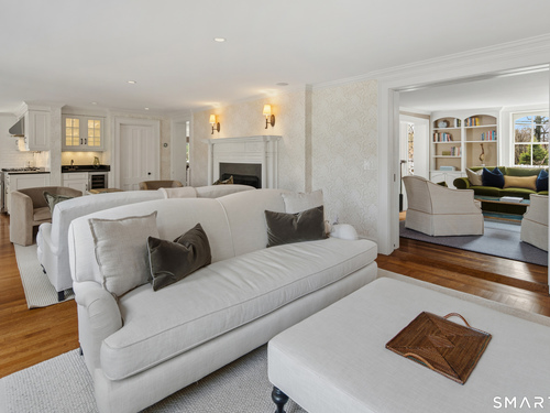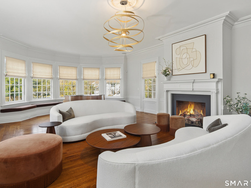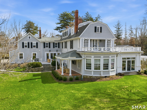 Step into a rare offering that beautifully captures the essence of classic New England living-a stately 1880s residence set in one of the Gold Coast's most desirable towns. South-facing and beautifully sited on over 1/2 acre, this gracious home offers more than 6,100 sqft of character, elegance, and modern comfort. From the grand living room with its soaring ceiling to the warmth of 3 fireplaces and hardwood flooring throughout, the home is rich with architectural detail. Bow windows, natural wood beams, and intricate moldings create a timeless sense of craftsmanship that is rarely found today. Every room tells a story while offering spaces designed for both everyday living and memorable entertaining. Host elegant gatherings in the formal dining room, relax in the sun-filled garden room with heated slate floors, or unwind in the inviting family room. The home's warmth and charm are felt throughout, yet thoughtful updates ensure modern comfort, including newer central air, boiler, natural gas conversion, and integrated sound throughout the main living areas, primary suite, and veranda. The gourmet kitchen is thoughtfully designed, featuring a large center island, 6 burner gas range, Sub-Zero refrigeration, warming drawer & a wet bar. A back staircase provides convenient access to the upper level. Outdoor living is equally inviting, with multiple spaces for quiet or lively gatherings. Front and back driveways. This home is a true blend of heritage, elegance and modern luxury.