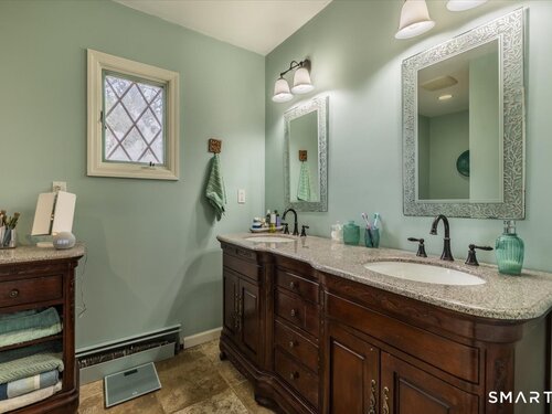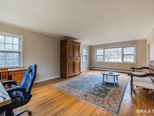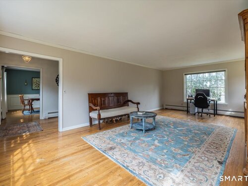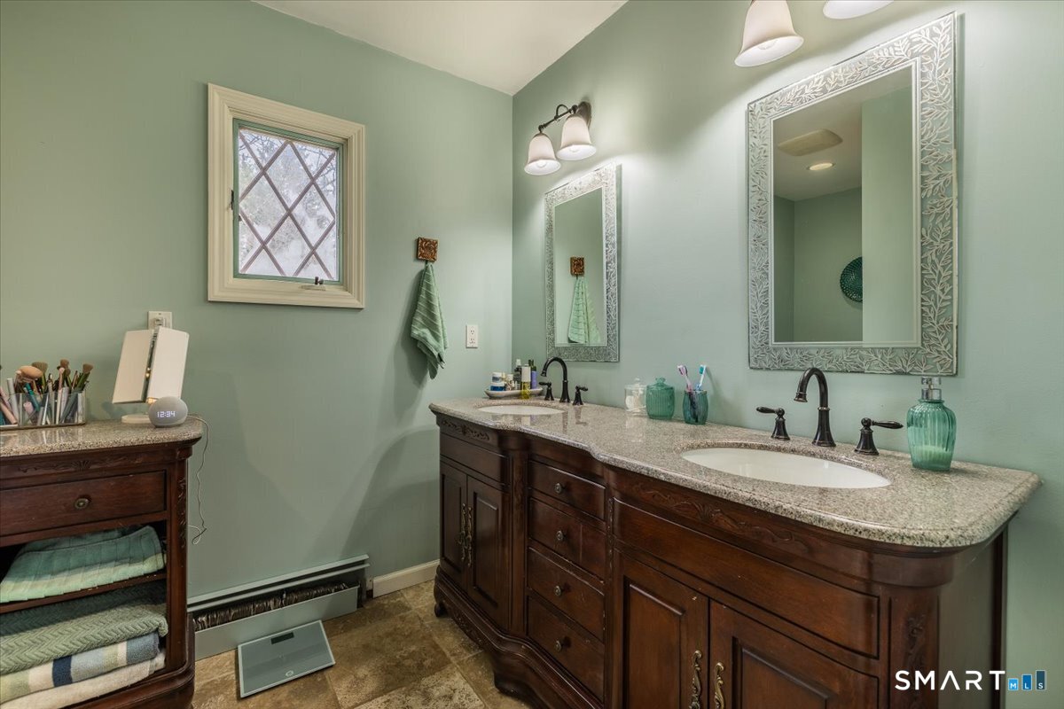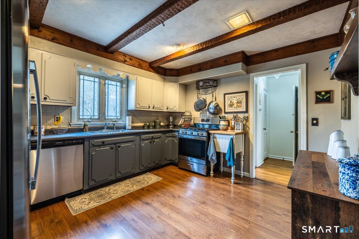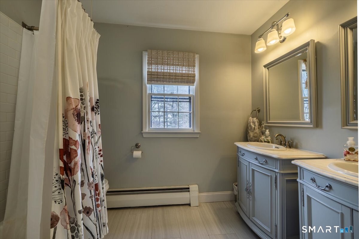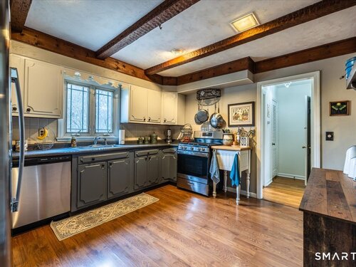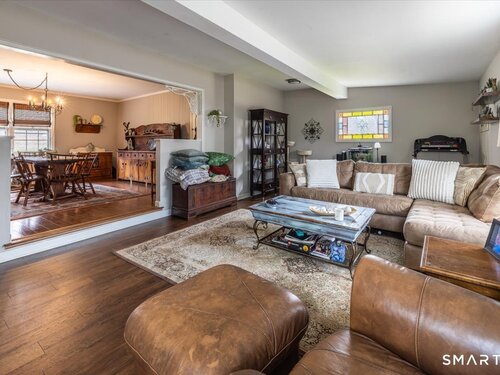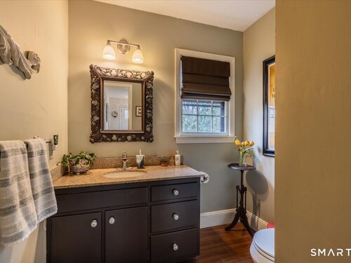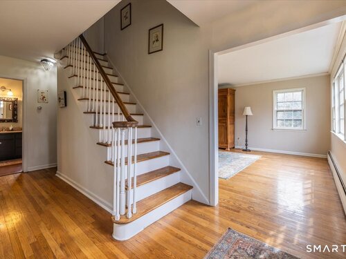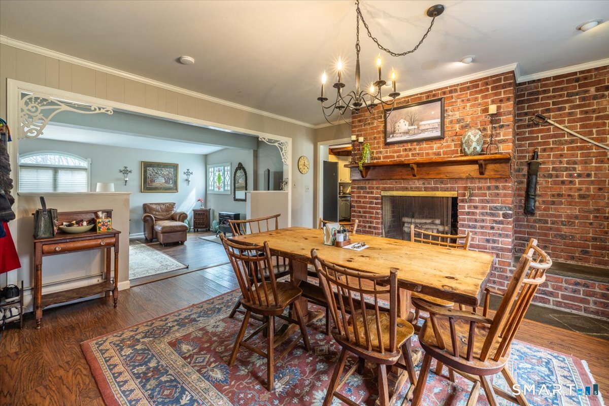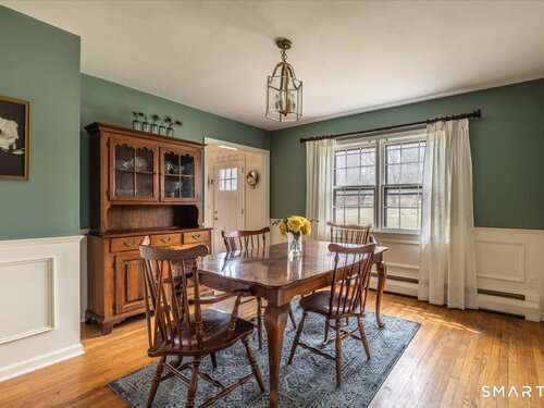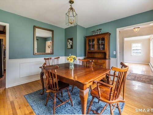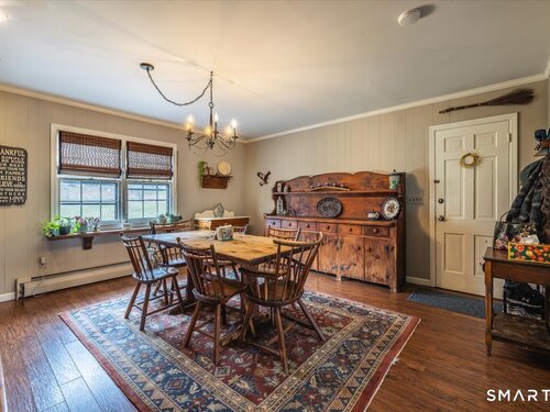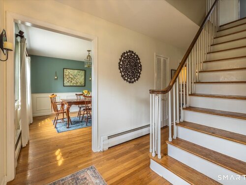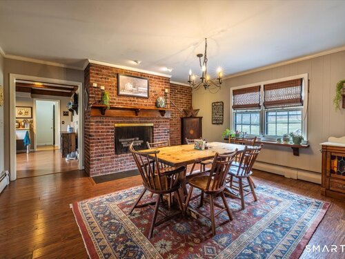A true New England charmer, this center hall colonial is situated up & off of Mount Pleasant on a bucolic 1-acre lot, offering just over 2,600sqft of purposeful living space. The main floor features a sunken family room w/ a gas stove & gorgeous opposing stained glass windows filling the space w/ natural light. An expansive dining area seamlessly blends w/ a full height brick wood-burning fireplace & custom mantle perfect for soul-recharging gatherings. Adjacent is a farmhouse kitchen w/ faux wood beams, butcher block end, SS appliances & gas stove. A formal dining room w/ shadow box moulding is just off the main foyer, while hardwood floors flow into a stately living room spanning the depth of the home. Ideal as a flex space or potential additional bedroom. A powder room completes the first floor. Upstairs find a primary suite w/ a custom tile shower & dual sinks in a custom stone-top vanity. Two bedrooms & a full bath w/ tub surround & custom vanity complete the upper level. An unfinished basement offers unlimited potential for additional living space w/ full ceiling height. Further highlights include a newer gas boiler & hot water heater (2 years old), two built-in wall AC units & a 2-car garage. Connected to town water & sewer w/ natural gas for worry free living. A peaceful rolling lot w/ garden area & space to play! Convenient to Church Hill shops, downtown Bethel & I84. Within the Newtown Burrough Historic District & Downtown Sandy Hook, a lifestyle unlike any other!