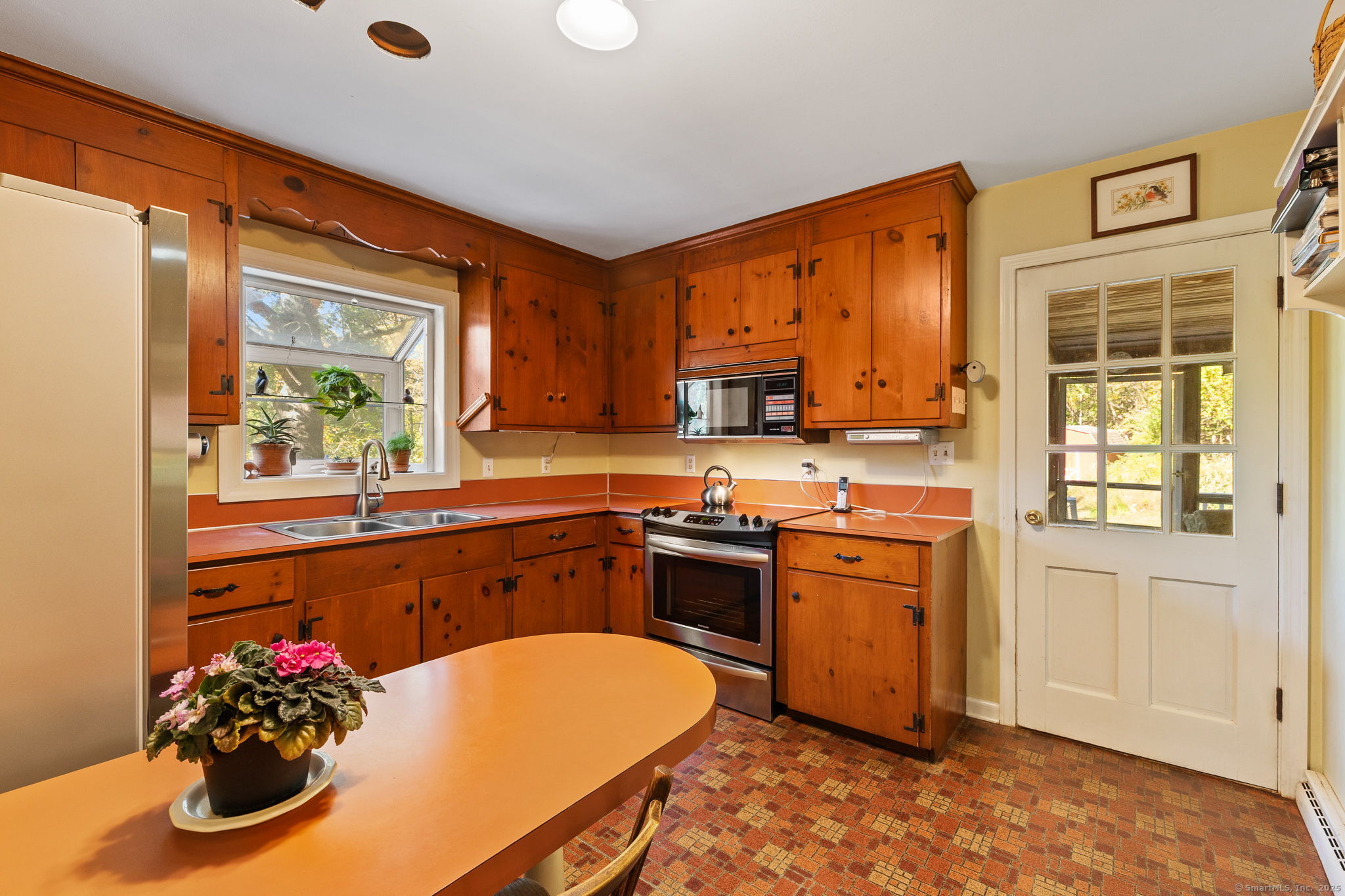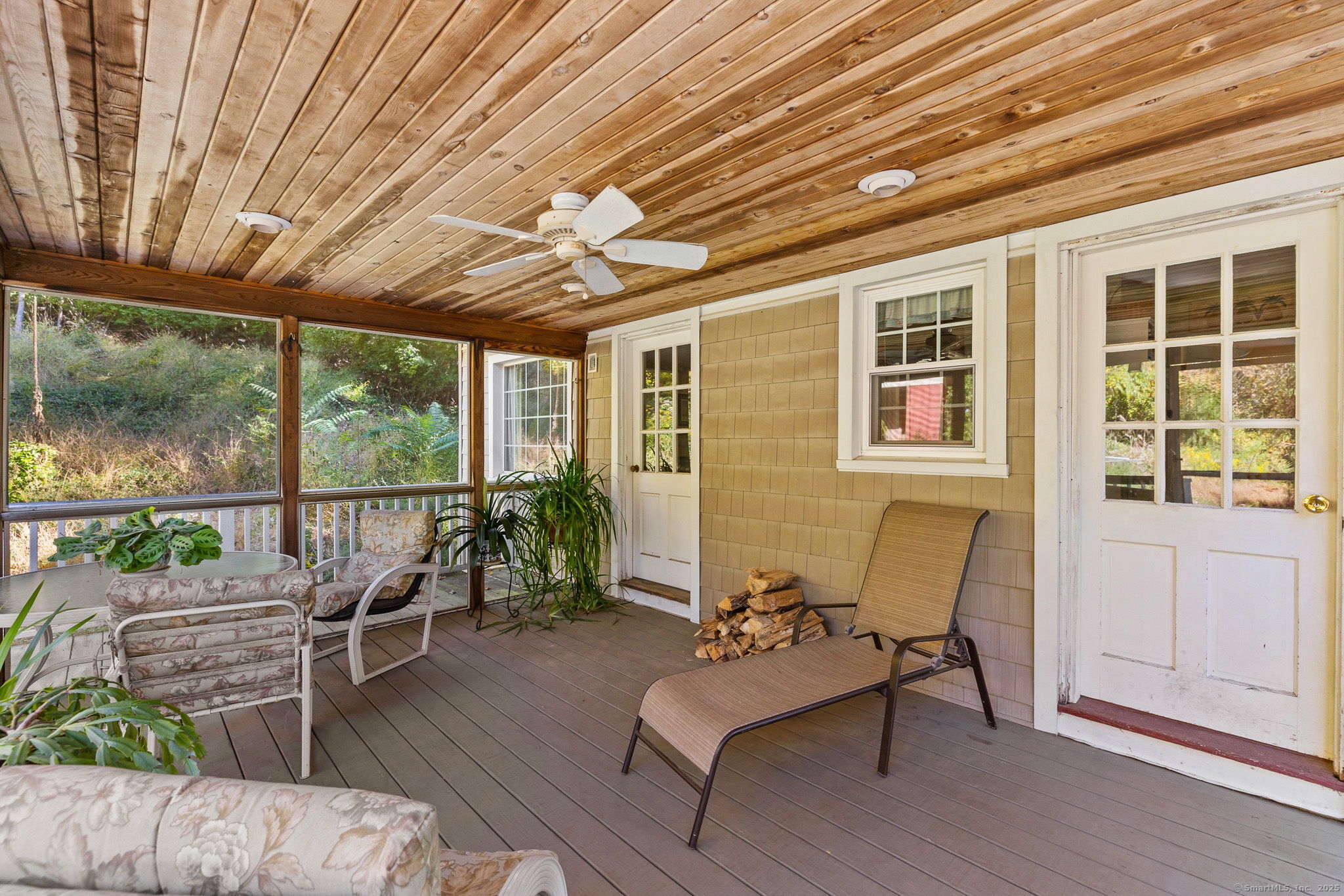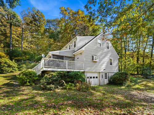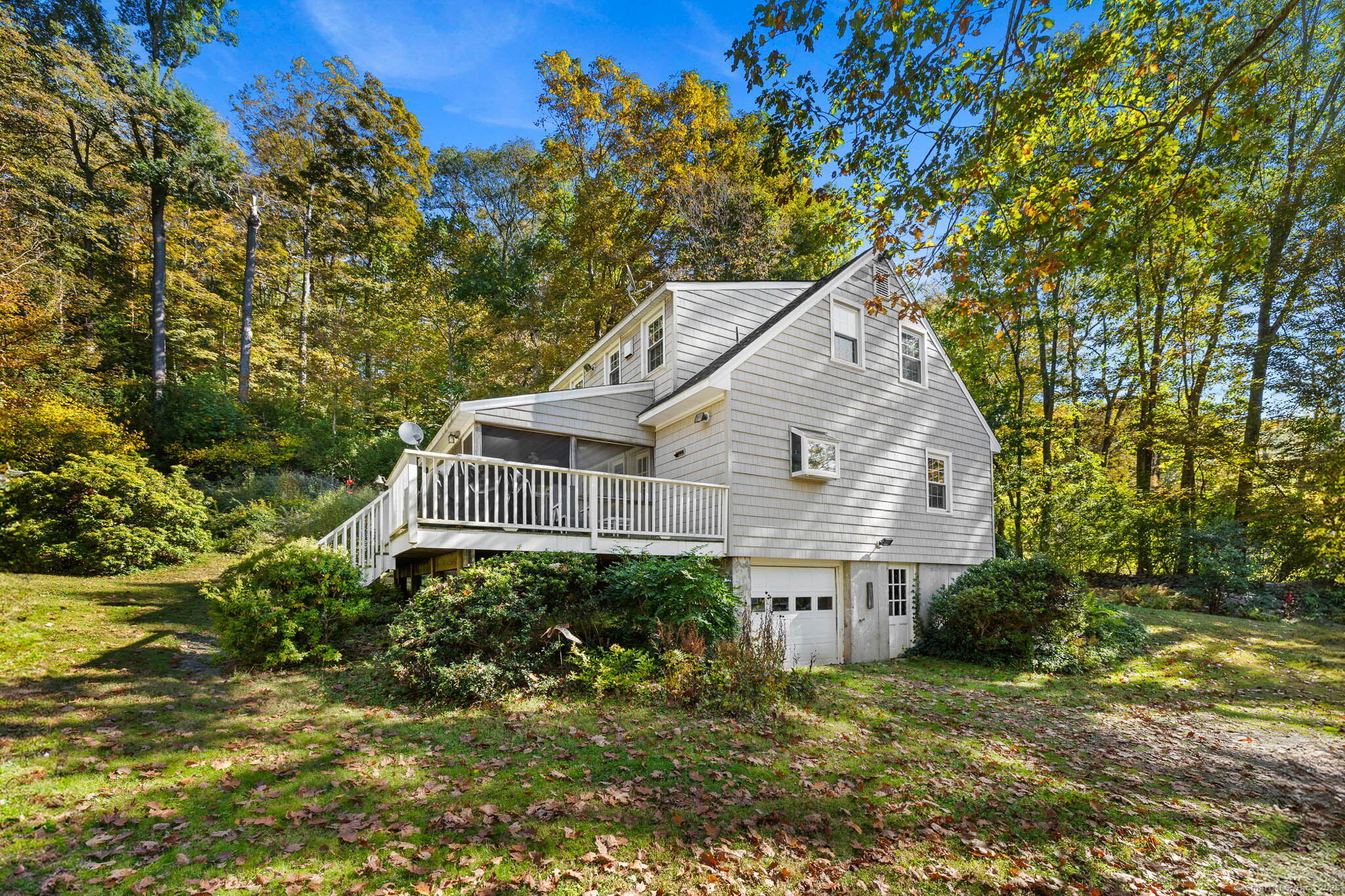 Classic Cape in Prime Newtown Location. Set on 3.2 private acres at the end of a quiet dead-end road, this 3-bedroom, 2-bath Cape offers both charm and convenience-just minutes to town amenities and only one mile to I-84 at Exit 10. Lovingly maintained by its original owner, the home features a traditional Cape layout. The main level offers a front-to-rear living room with fireplace, a large dining room (previously used as the 3rd bedroom), a full bath, pantry, and a kitchen that opens to a screened, covered deck overlooking the peaceful, wooded property-much of it bordered by Newtown town land. Upstairs are two spacious dormered bedrooms with ample closet space, plus a full hallway bath. Oak hardwood floors run throughout most of the home, with vinyl siding, replacement windows, and an updated garage door already in place. Though largely in original condition, the home has been exceptionally well cared for and is ready for your personal updates. Property to be conveyed in as-is condition [Seller has set a deadline for all highest and best offers to be in by tomorrow, 10/8, at 6pm]
