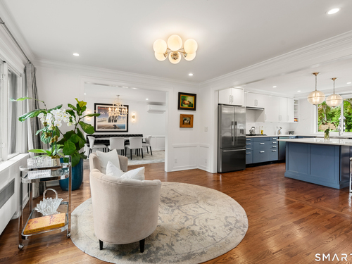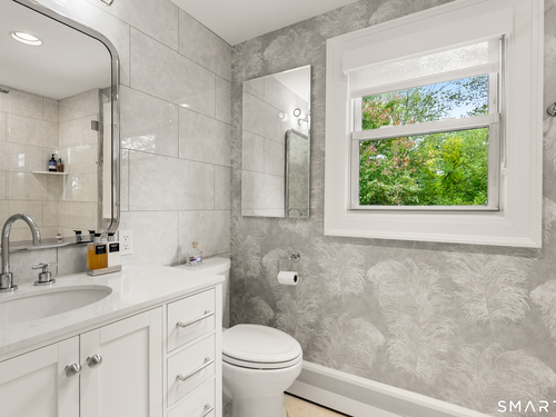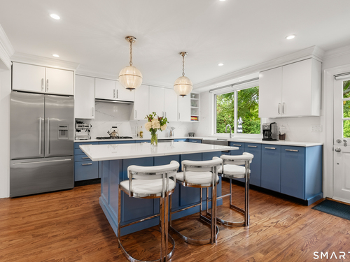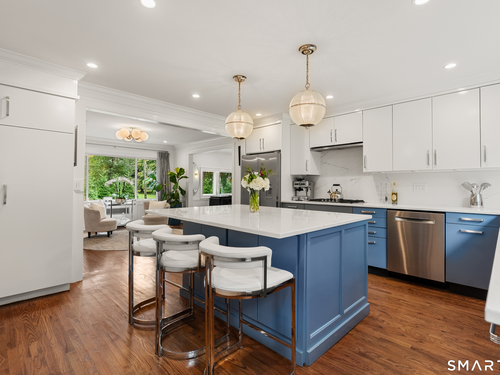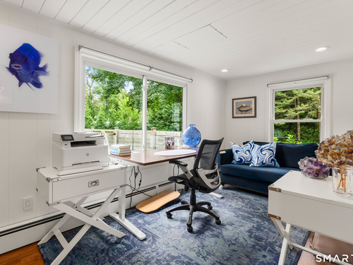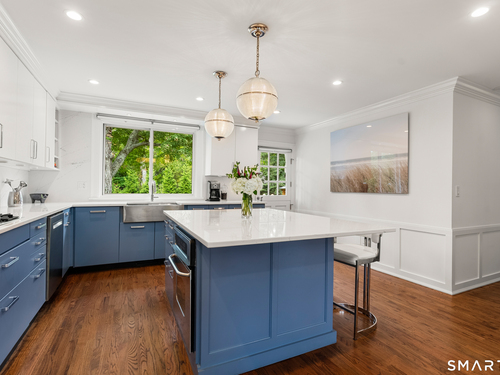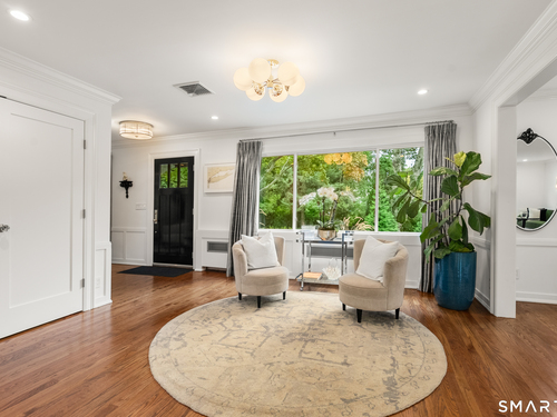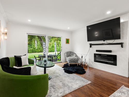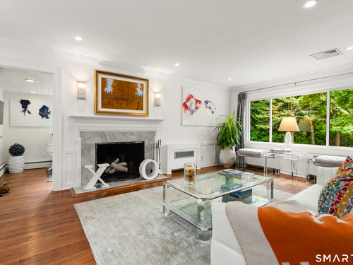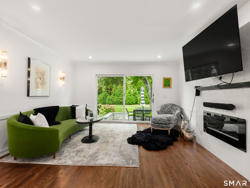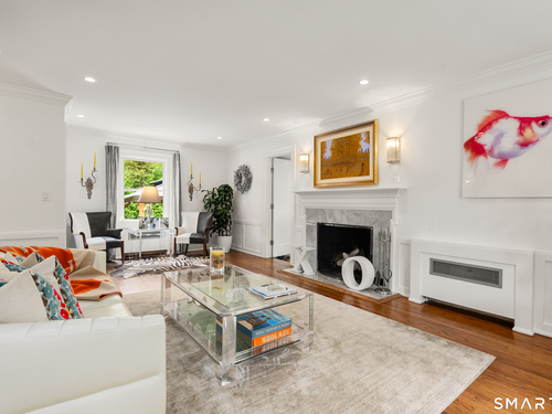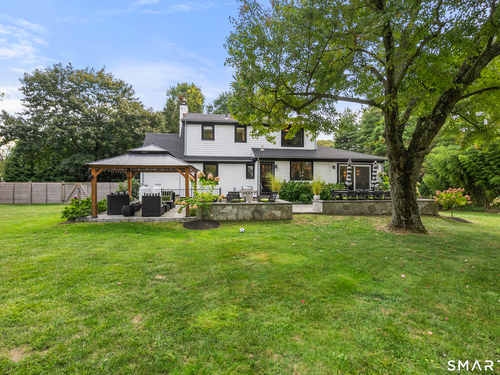 Elegance, style, and thoughtful design converge in this stunning Westport residence, perfectly situated on a full acre of park-like grounds. Set back from the road, the property offers both privacy and convenience, just minutes from Saugatuck Center and downtown Westport. Inside, recent updates and tasteful renovations are showcased at every turn. The living room features a marble fireplace and serene views of the front and rear grounds, while a private office provides a tranquil retreat. The gourmet kitchen is a chef's dream, with a center island and seating, quartz countertops and backsplash, stainless steel appliances, a gas cooktop, pantry, and direct access to the patio. An open layout seamlessly connects the kitchen to a cozy sitting/breakfast area and a spacious dining and family room, complete with an accent fireplace and sliding doors overlooking the backyard. Upstairs, the primary suite is elegantly appointed with custom built-ins and a luxurious designer bath, complemented by two additional bedrooms and a beautifully finished second bath. The walk-out lower level offers versatile space for a recreation room, gym, or additional living area. Designed for both entertaining and everyday living, the home effortlessly blends indoor and outdoor spaces. Step outside to an exquisite patio with a sitting wall, pergola, and fire pit, opening onto an expansive backyard. This exceptional residence presents a rare opportunity to experience luxurious, comfortable living in one