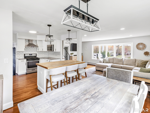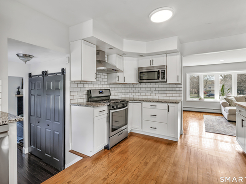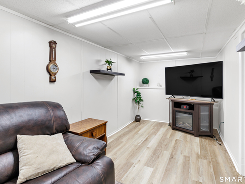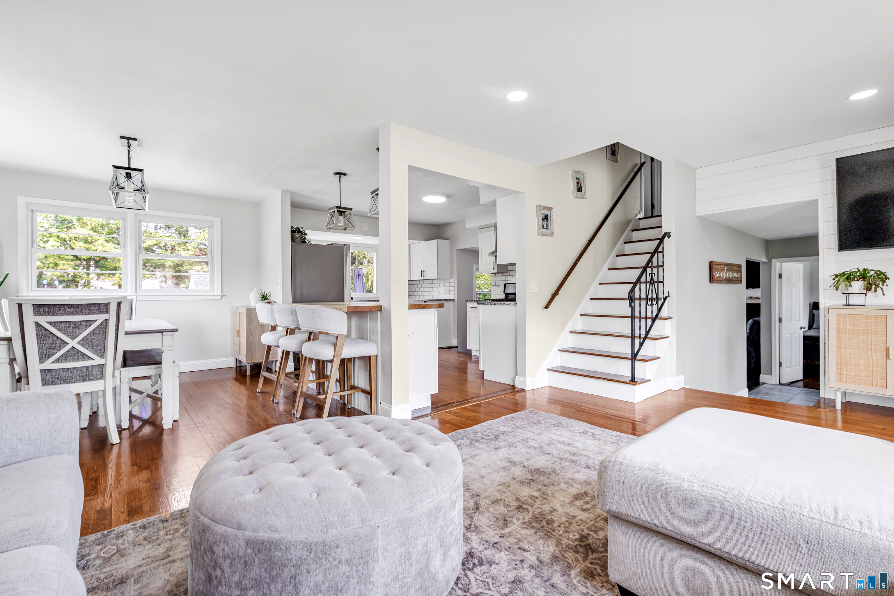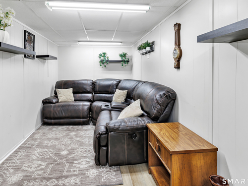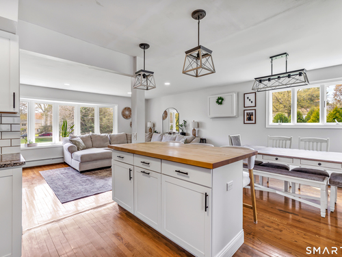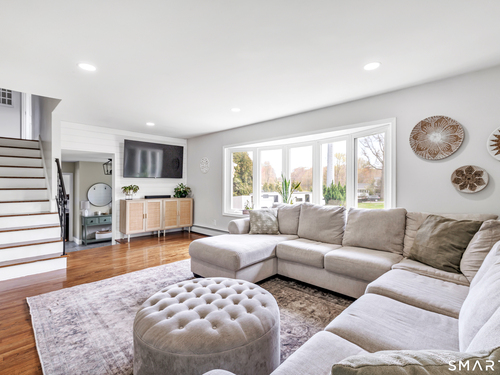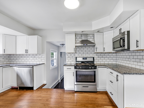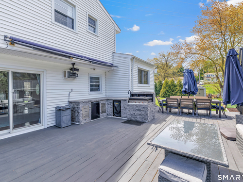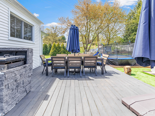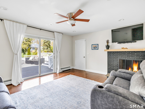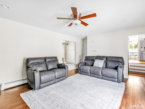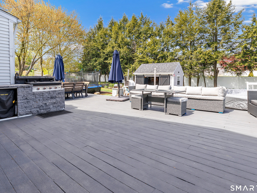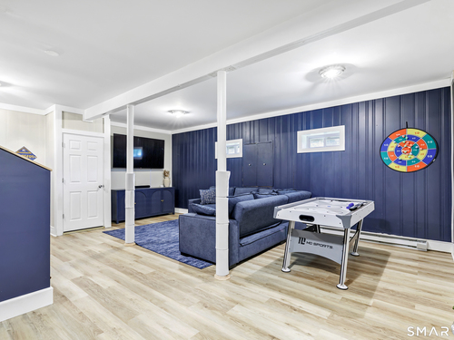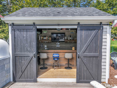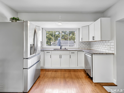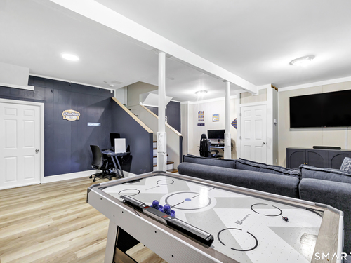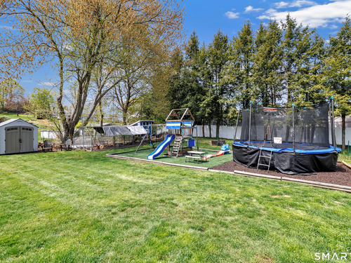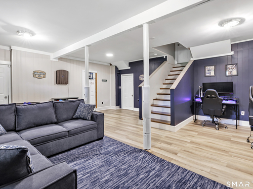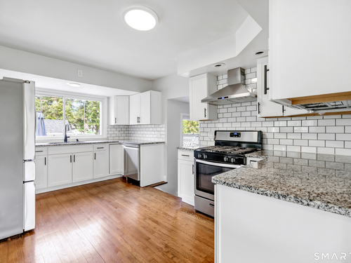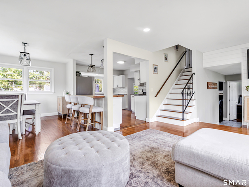 Welcome to this move in ready split level home located on a quiet cul de sac in Stratford's North End. Set back from the road, the property offers a spacious front yard ideal for play and everyday outdoor enjoyment. The main level features hardwood floors and recessed lighting throughout, along with an open floor plan and a remodeled kitchen complete with a butcher block island with seating for three, stainless steel appliances, and a seamless flow into the dining area and living room. A comfortable family room with a wood burning fireplace, along with a main level bedroom and powder room, complete this level. The upper floor includes a primary bedroom with a full bath, along with two additional bedrooms and a full hall bath with tub and shower. The partially finished lower level offers flexible space with a den, playroom area, laundry, and an additional bonus room. The fully fenced backyard is designed for entertaining, featuring an above ground pool surrounded by a deck, an outdoor cooking area, and a separate outbuilding converted into a man cave with a bar, complete with electricity, plumbing, and heat and air conditioning. Do not miss the opportunity to enjoy this home in a desirable neighborhood close to schools, shopping, and major highways. Best & Final by Tuesday 4/28/2026 at Noon.