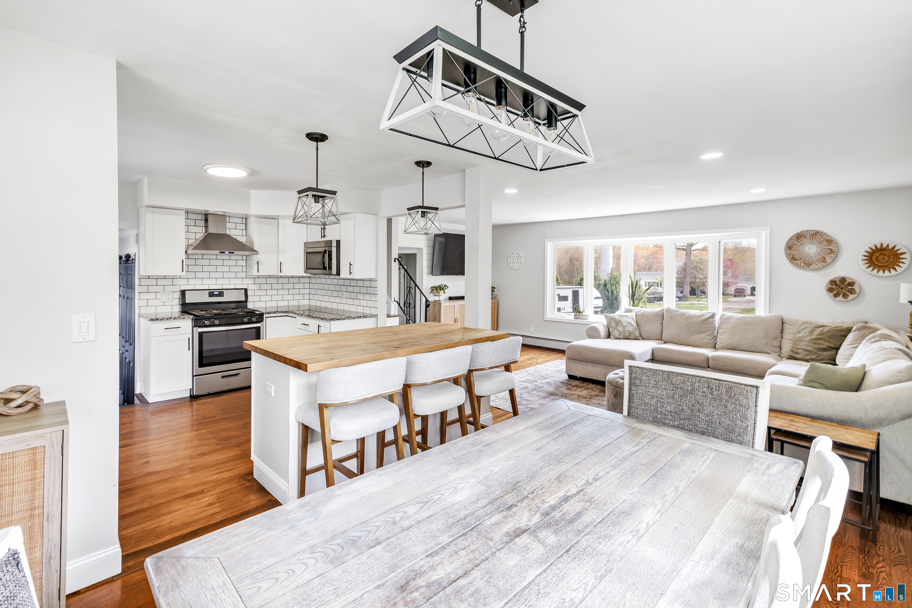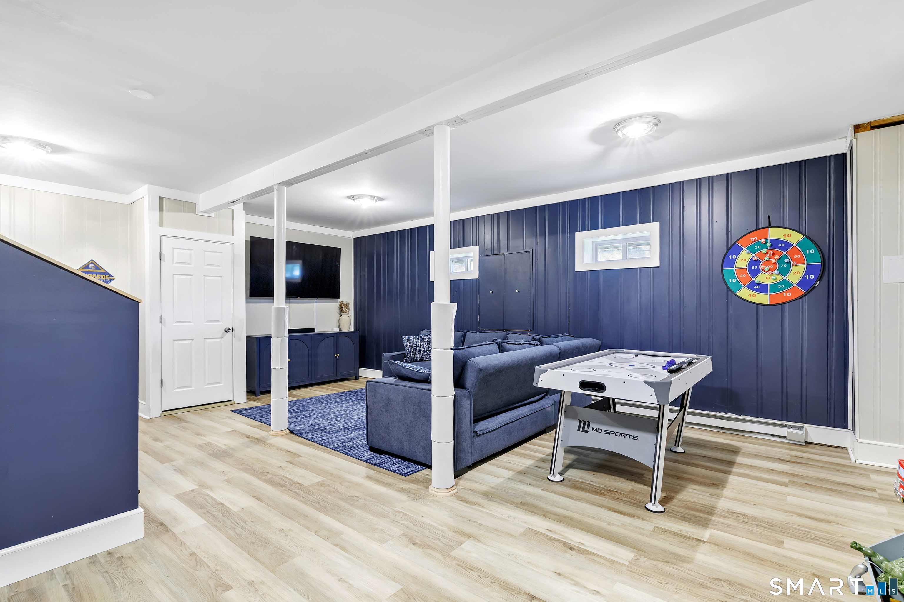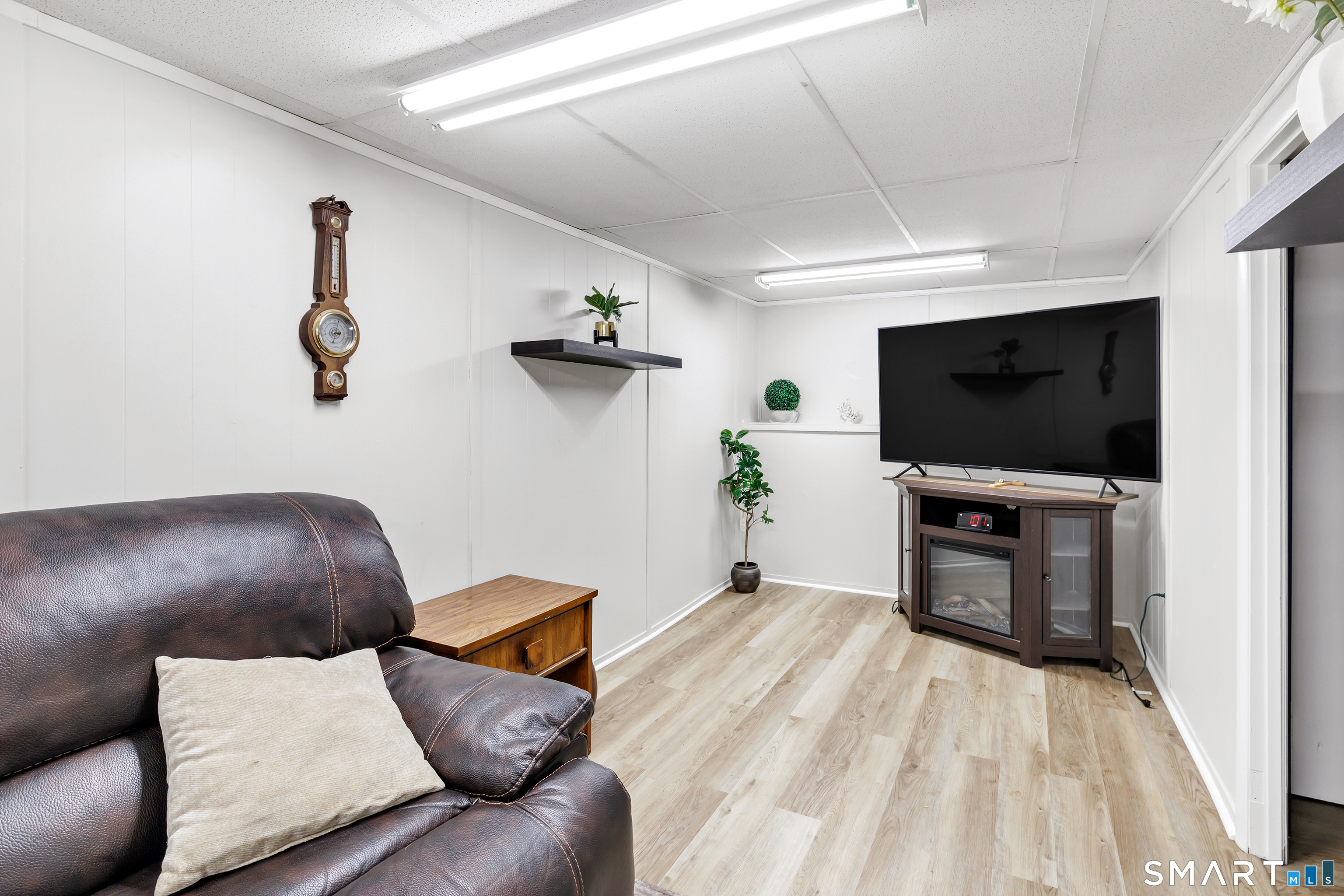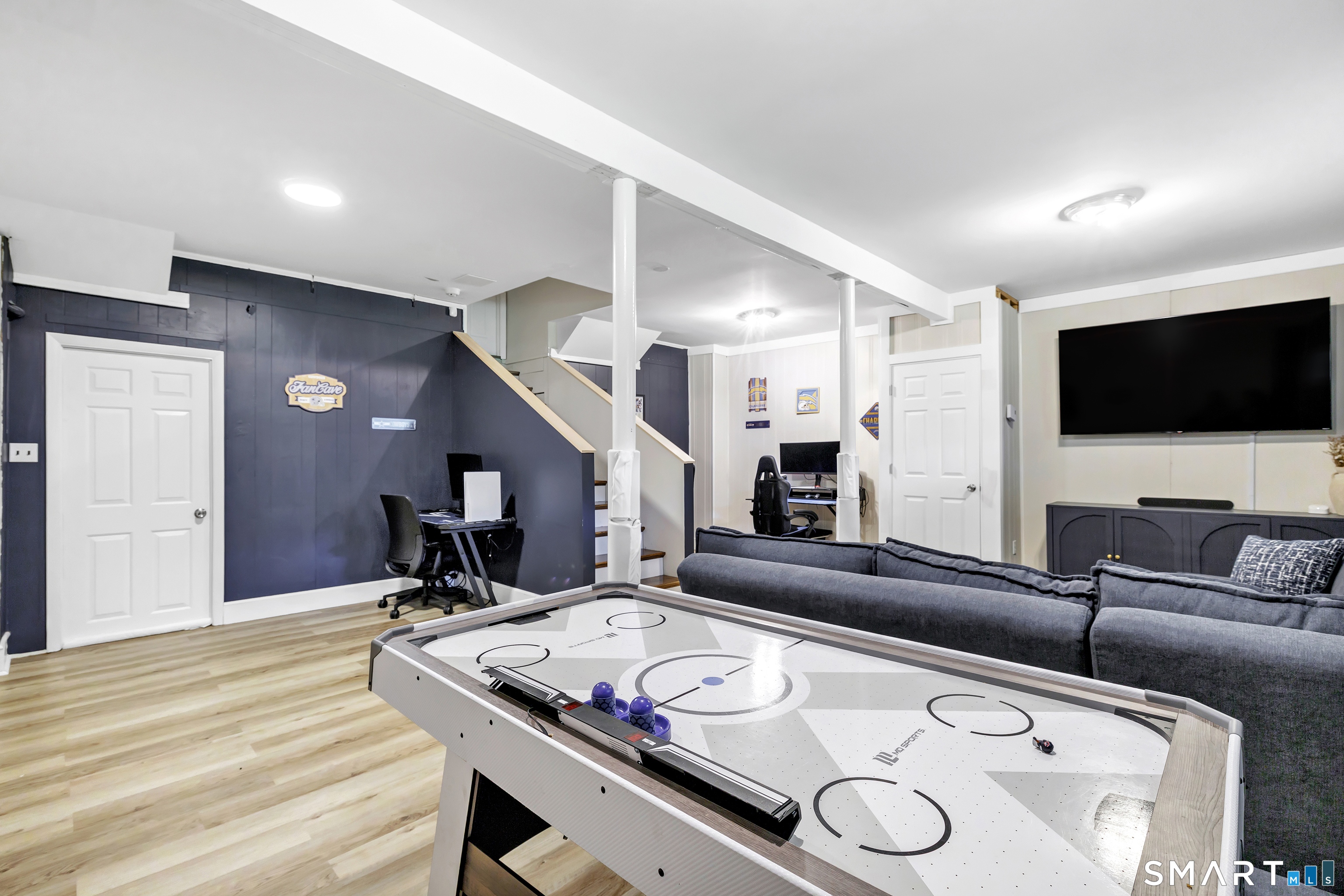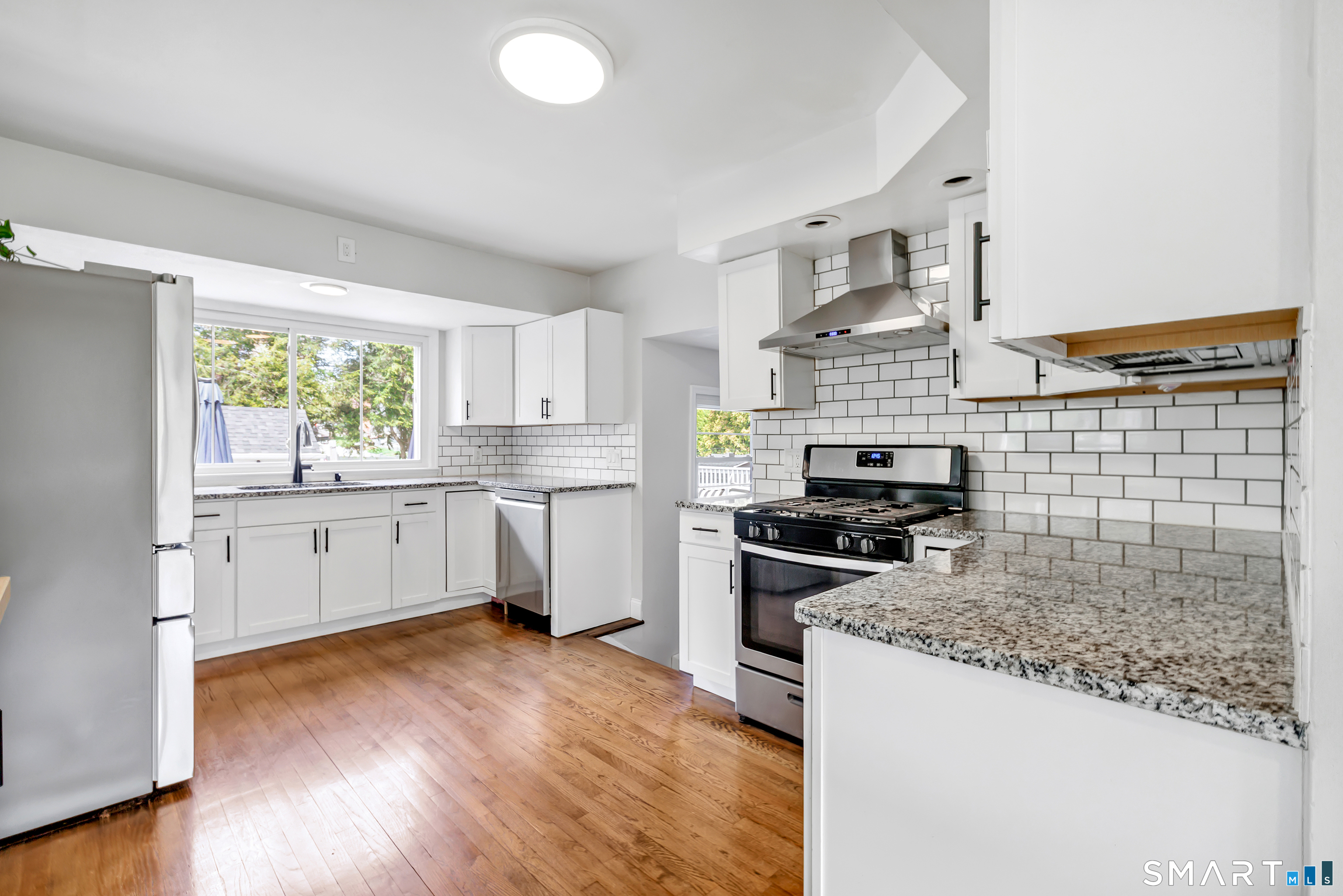 Welcome to this move in ready split level home located on a quiet cul de sac in Stratford's North End. Set back from the road, the property offers a spacious front yard ideal for play and everyday outdoor enjoyment. The main level features hardwood floors and recessed lighting throughout, along with an open floor plan and a remodeled kitchen complete with a butcher block island with seating for three, stainless steel appliances, and a seamless flow into the dining area and living room. A comfortable family room with a wood burning fireplace, along with a main level bedroom and powder room, complete this level. The upper floor includes a primary bedroom with a full bath, along with two additional bedrooms and a full hall bath with tub and shower. The partially finished lower level offers flexible space with a den, playroom area, laundry, and an additional bonus room. The fully fenced backyard is designed for entertaining, featuring an above ground pool surrounded by a deck, an outdoor cooking area, and a separate outbuilding converted into a man cave with a bar, complete with electricity, plumbing, and heat and air conditioning. Do not miss the opportunity to enjoy this home in a desirable neighborhood close to schools, shopping, and major highways. Best & Final by Tuesday 4/28/2026 at Noon.