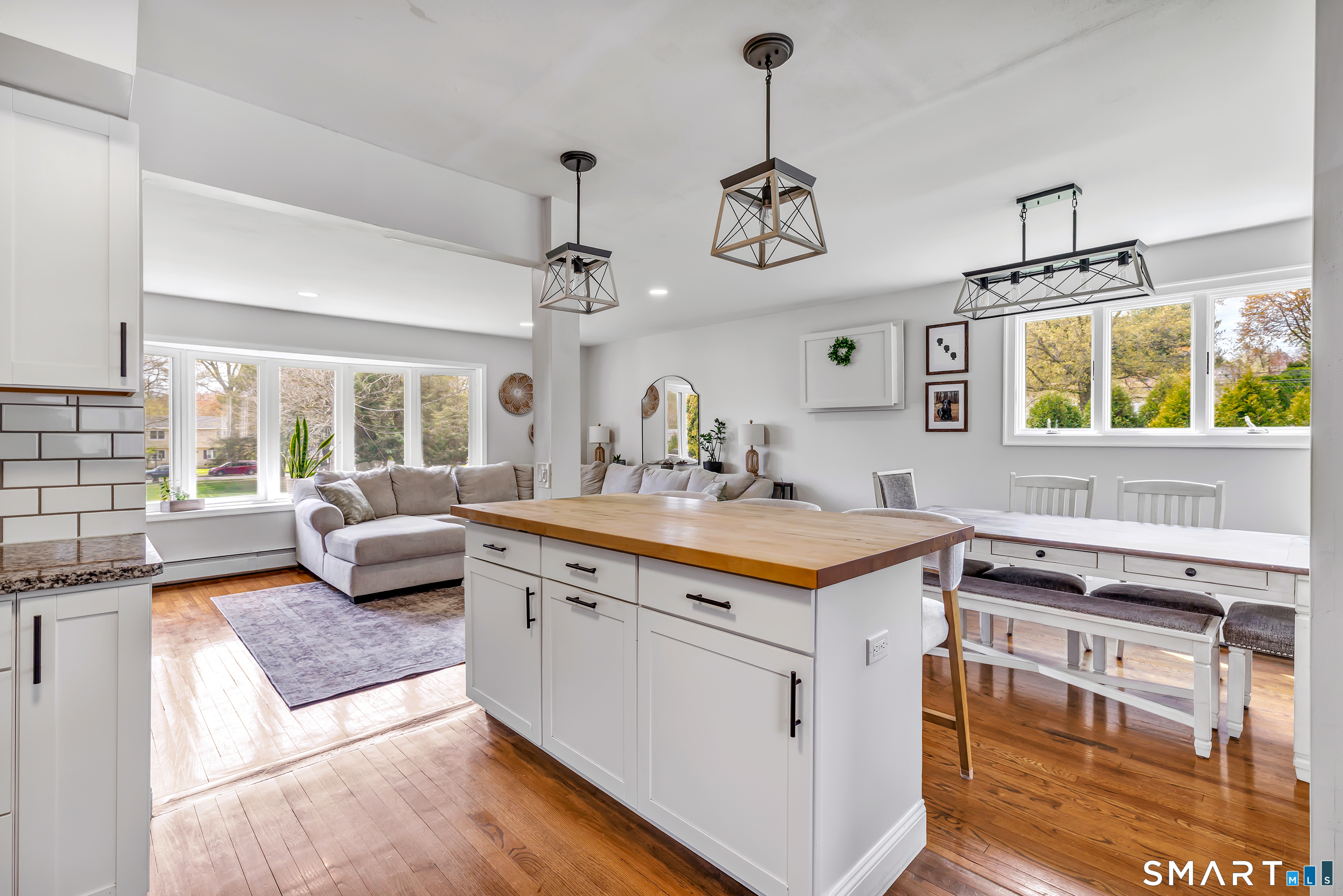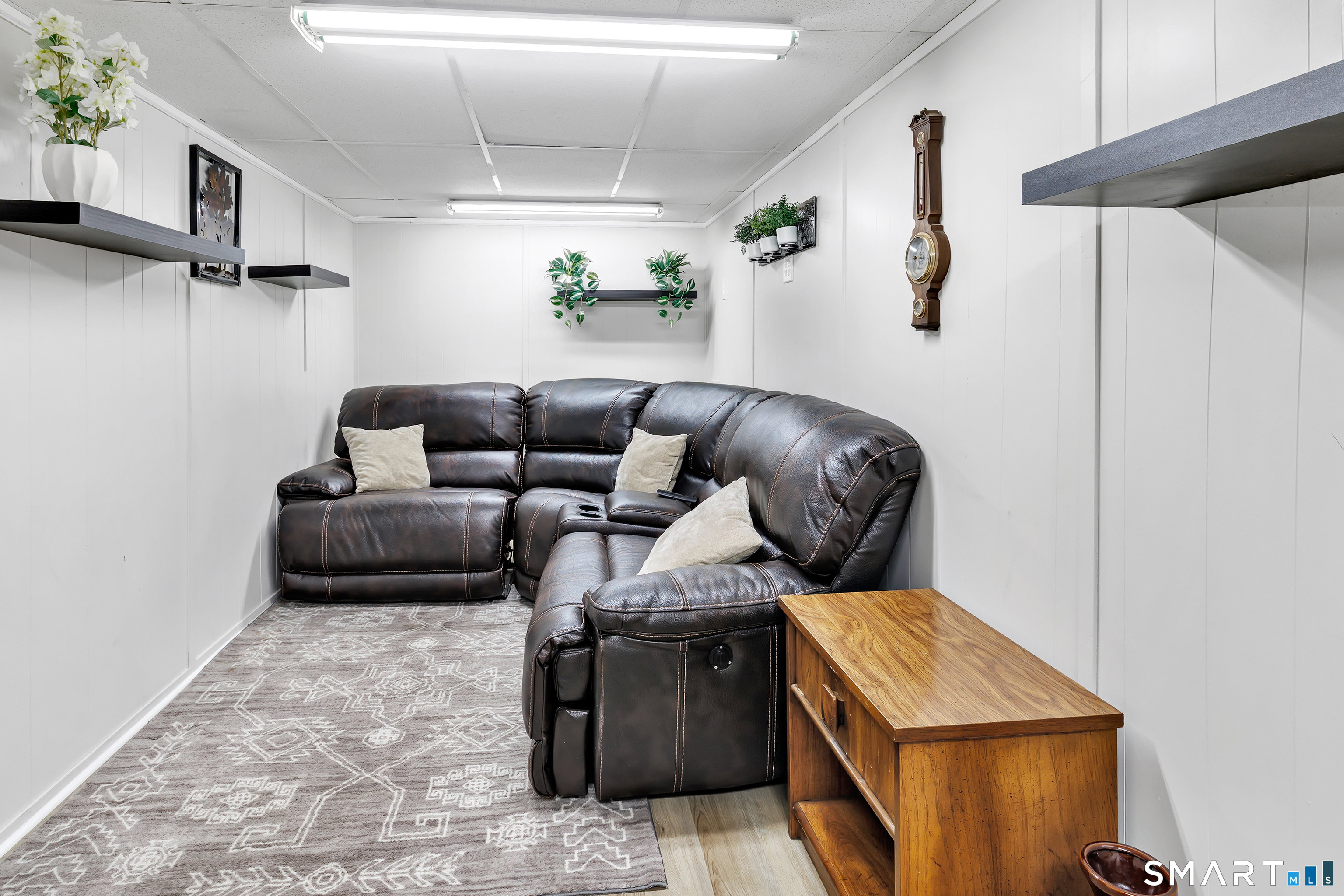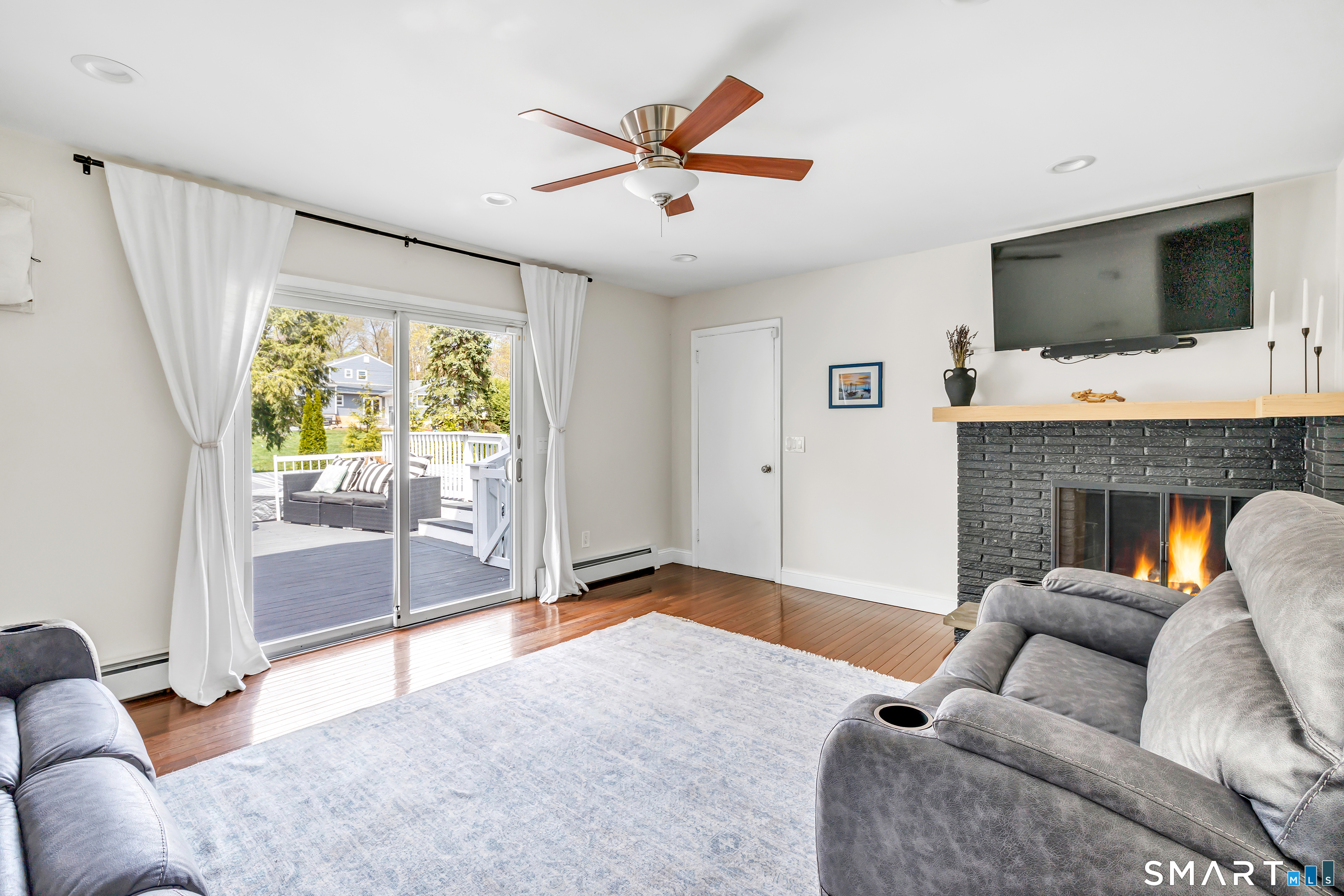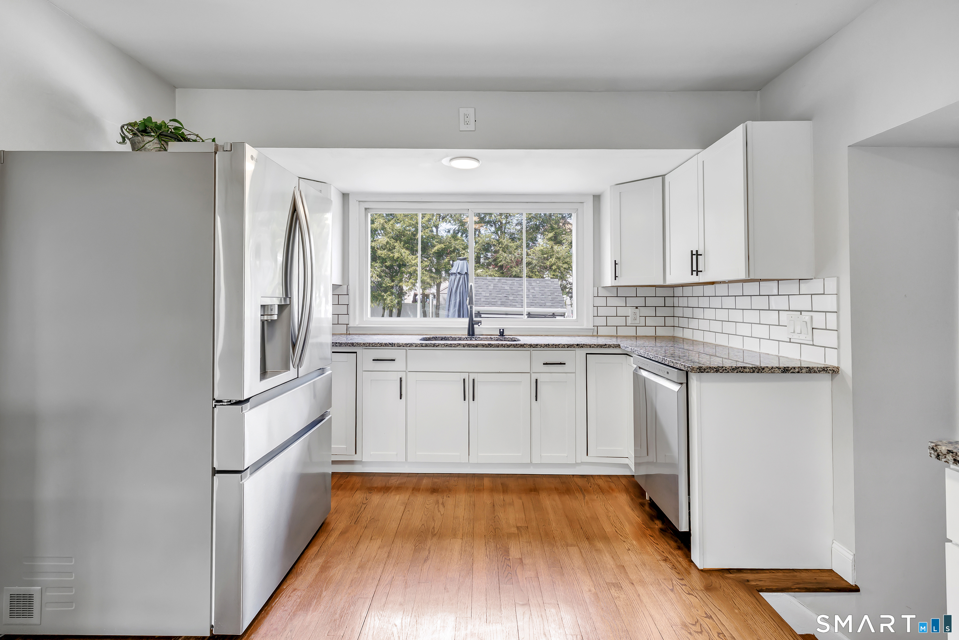 Welcome to this move in ready split level home located on a quiet cul de sac in Stratford's North End. Set back from the road, the property offers a spacious front yard ideal for play and everyday outdoor enjoyment. The main level features hardwood floors and recessed lighting throughout, along with an open floor plan and a remodeled kitchen complete with a butcher block island with seating for three, stainless steel appliances, and a seamless flow into the dining area and living room. A comfortable family room with a wood burning fireplace, along with a main level bedroom and powder room, complete this level. The upper floor includes a primary bedroom with a full bath, along with two additional bedrooms and a full hall bath with tub and shower. The partially finished lower level offers flexible space with a den, playroom area, laundry, and an additional bonus room. The fully fenced backyard is designed for entertaining, featuring an above ground pool surrounded by a deck, an outdoor cooking area, and a separate outbuilding converted into a man cave with a bar, complete with electricity, plumbing, and heat and air conditioning. Do not miss the opportunity to enjoy this home in a desirable neighborhood close to schools, shopping, and major highways. Best & Final by Tuesday 4/28/2026 at Noon.