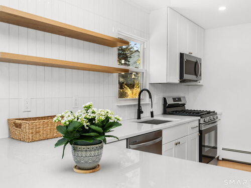 Special designer home in heart of the village of Springdale, perfectly renovated for today's everyday living and entertaining! Featuring a super stylish open kitchen-living-dining space with hardwood floors, you'll delight in function + flexibility in sun filled space! Two main floor bedrooms and a romantic top floor primary bedroom suite offer an ideal blend of dreamy comfort and storage! The level, private back lawn invites family fun or upscale enjoyment under the shade of the pergola! Two exquisitely updated full baths, a1 car garage and extensive attic storage add to the ease of living here! Move right into this special home and further delight in this sought after spot, where you can walk to popular restaurants, shops, schools and the train.