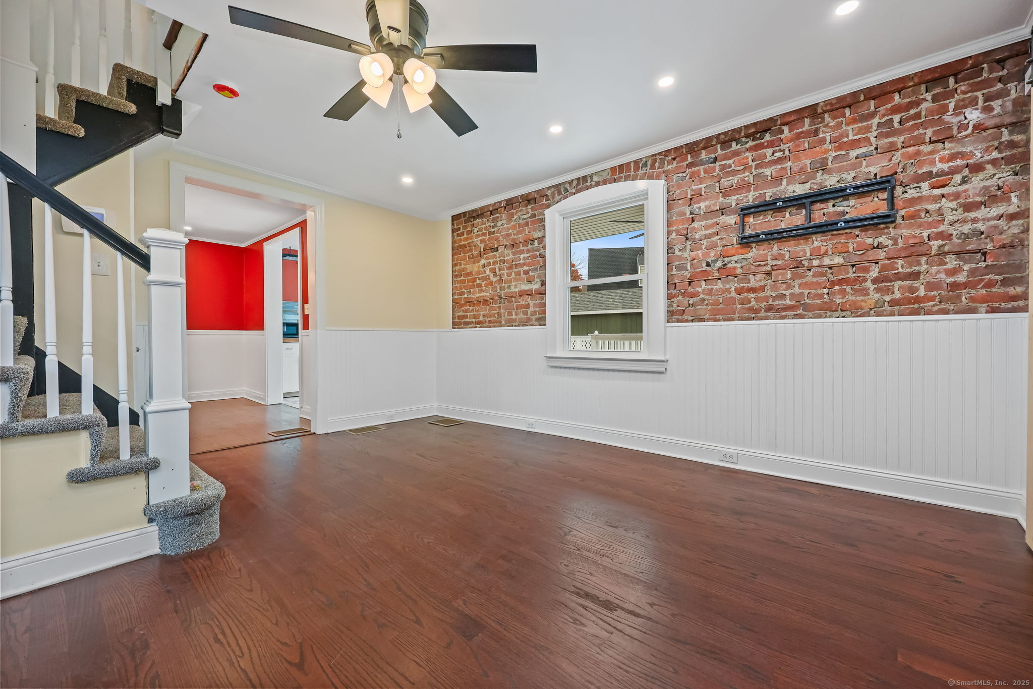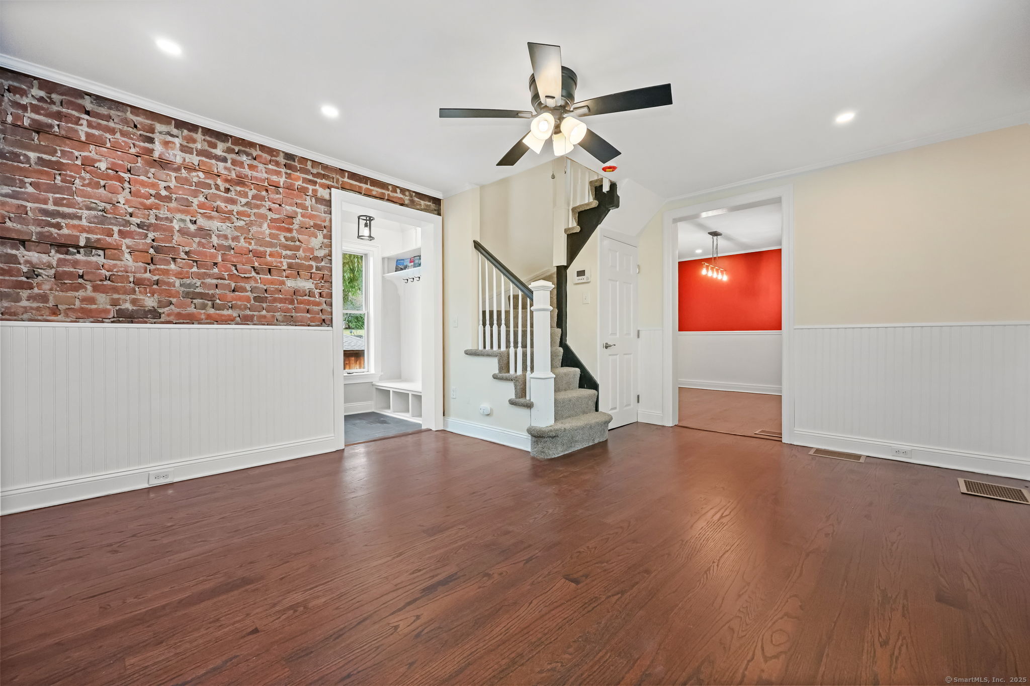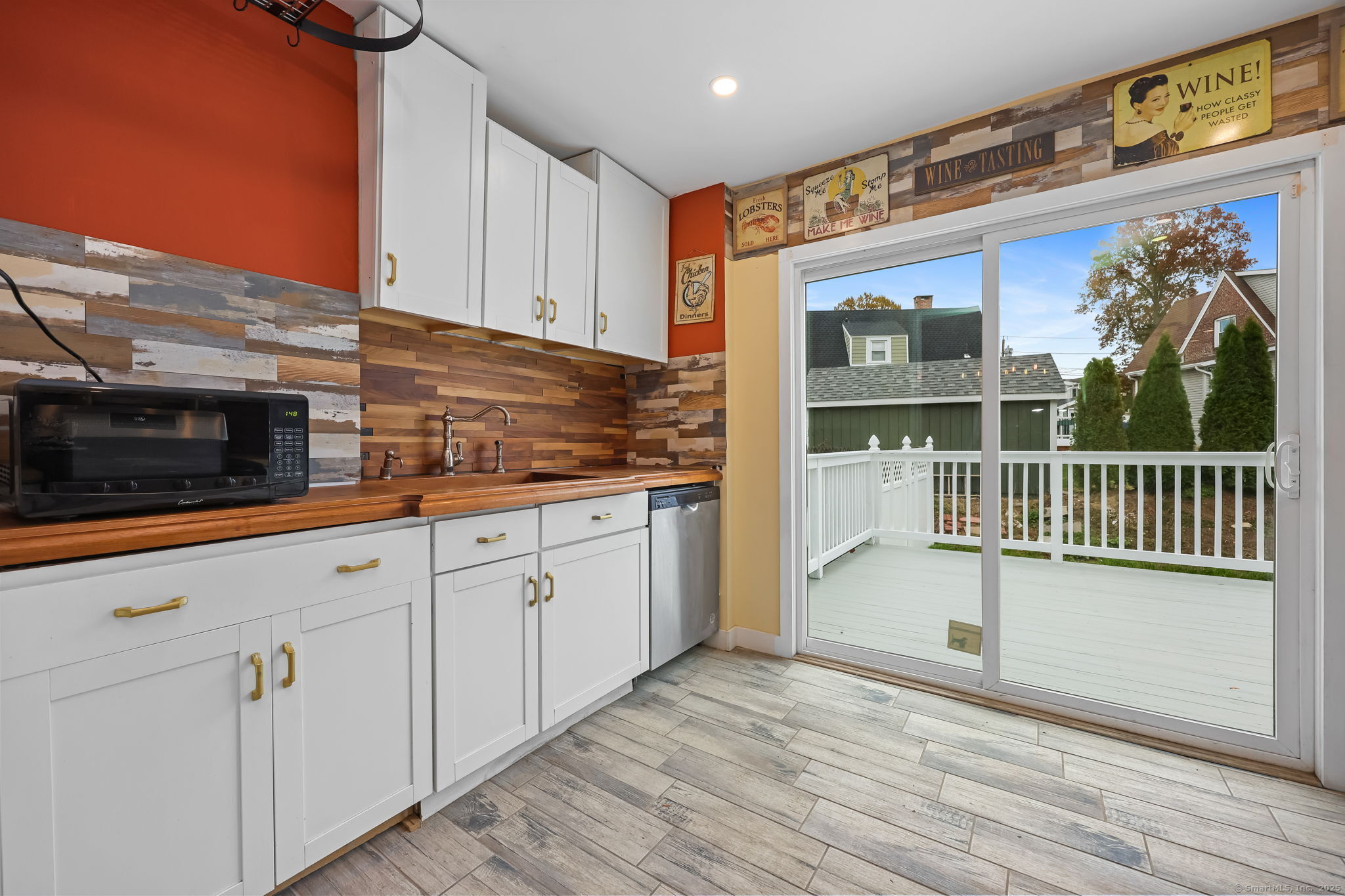 Lordship Newly expanded 1/2 duplex townhouse featuring covered front porch, entry hall, Living room with HW floors, Dining room with HW floor and recessed lights, Newer Kitchen with white cabinets, gas range & slider to private deck, New 20' Family room with recessed lights and glass door to deck and private yard, New Bath and Laundry room. Upper level with spacious primary Bedroom suite with 2 large closets and recessed lighting; adjacent Den/3rd BR with cathedral ceiling, Newer Bath and 2nd Bedroom with custom cathedral ceiling. Lower level with partially finished living spaces, newer Gas furnace & water heater! Hatchway to level yard in private yet convenient location!