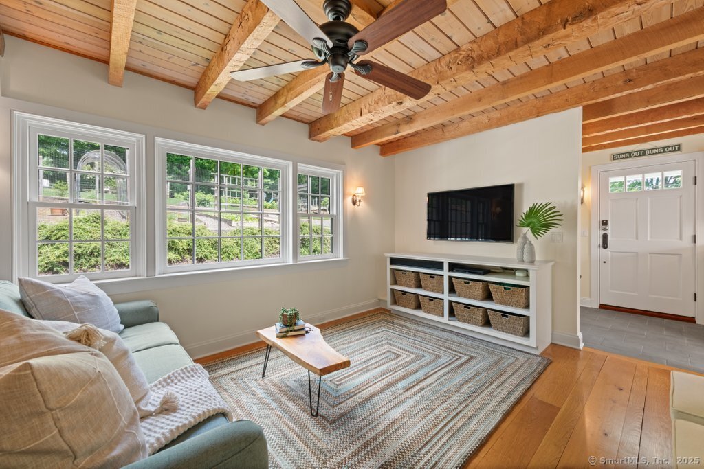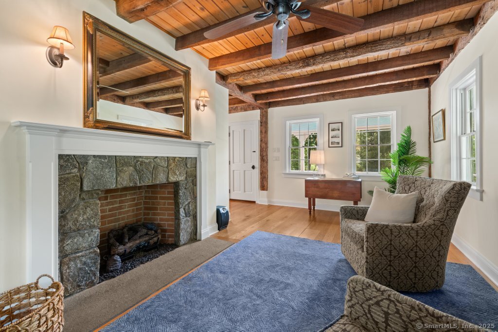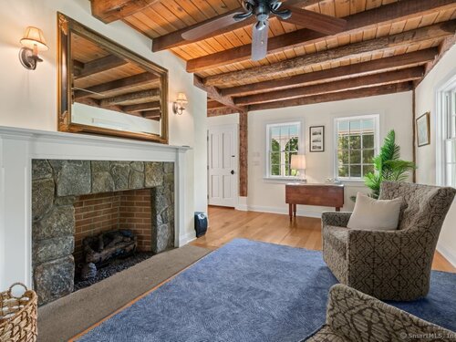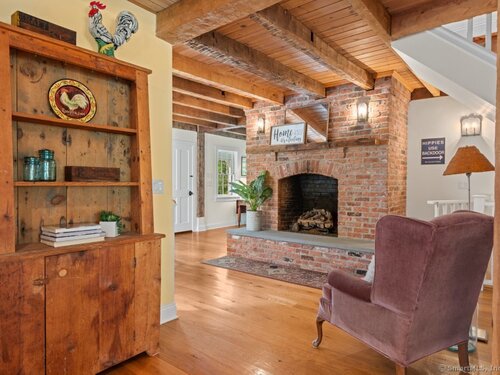 Welcome to an extraordinary opportunity to own a masterfully restored builder's own antique home with roots in the vibrant and historically significant Hattertown Historic District near a nature preserve and hiking trails. This three-bedroom, three-and-a-half-bathroom treasure blends the charm of early New England architecture with thoughtful, modern-day homestead living. Inside, every detail tells a story-from hand-hewn exposed beams and wide plank flooring to the gracious brick fireplace that anchors the heart of the home. Custom cabinetry and efficient radiant floor heat adds both functionality and artistry throughout, creating a warm and inviting space that feels both timeless and elevated. Step outside and you'll find the magic continues. View the beauty from the Ipe front porch, or walk the lush meandering pathways that come alive with thoughtfully arranged plantings. The property is framed by beautifully manicured gardens bursting with life-vegetables, including a thriving asparagus patch, a bee apiary for a dedicated bee keeper's site, and a fire pit perfect for evening gatherings. A sport court offers space for recreation, and the custom-built chicken coop is truly special. There are also drainage pipes and electrical conduit in place for a future barn/garage. Whether you're looking for a peaceful retreat, a working homestead, or a stunning blend of both-this is your chance to own a unique piece of history and live the lifestyle you've always dreamed of.