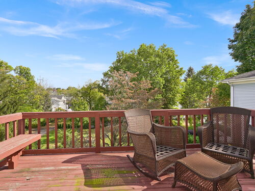 Balcony/Deck, Fireplace, Hardwood Floor