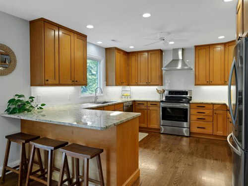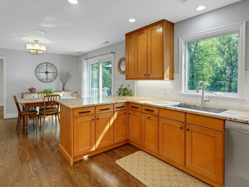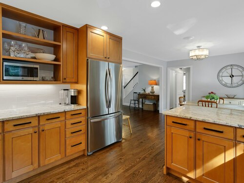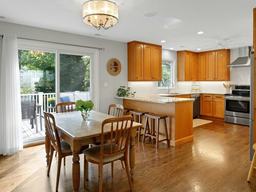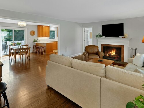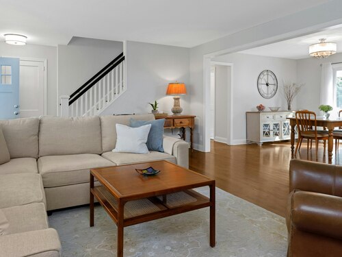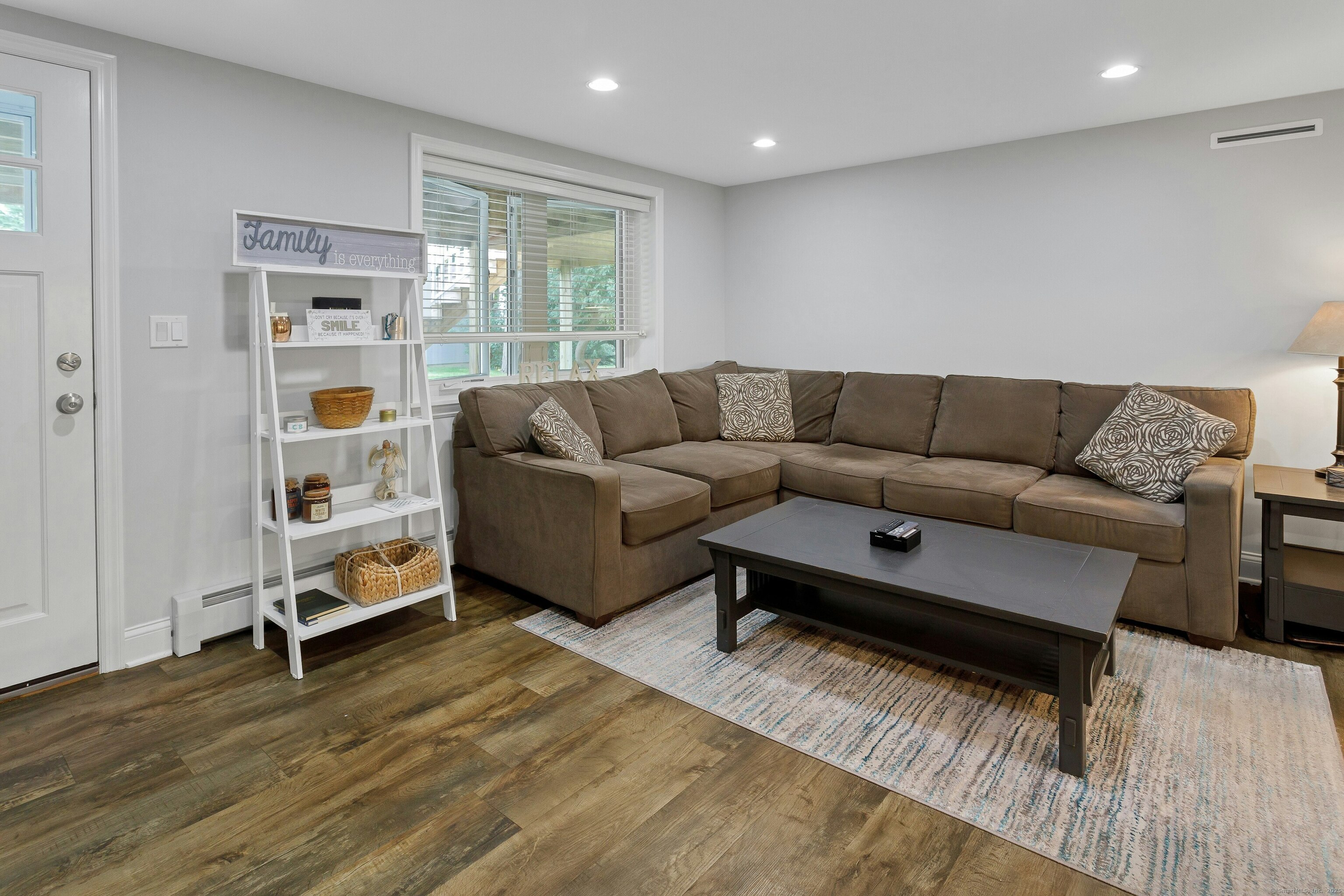 Better than new!! Totally remodeled Newfield area Cape, Hardwood floors throughout. Central air. Primary bedroom on first floor with full bath and heated floors. Beautiful eat in kitchen with sliders leading to deck. Also has walk- out lower level in-law. Can be bedroom and family room.. features include heated garage, new hydro-air heating, new shed, new driveway, Anderson insulated windows, sprinkler system, generator plug set up, natural gas hook up for outdoor grill, sound system in living room and kitchen 4 ceiling fans. An immaculate home you don't want to miss!.