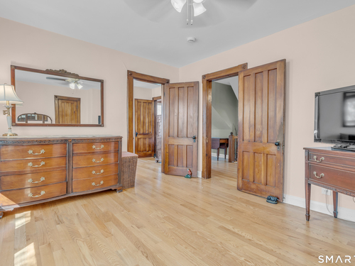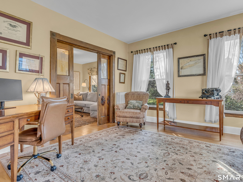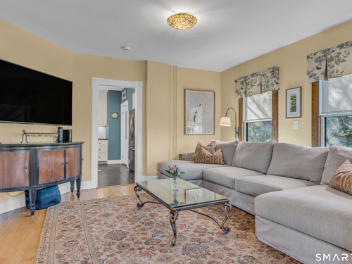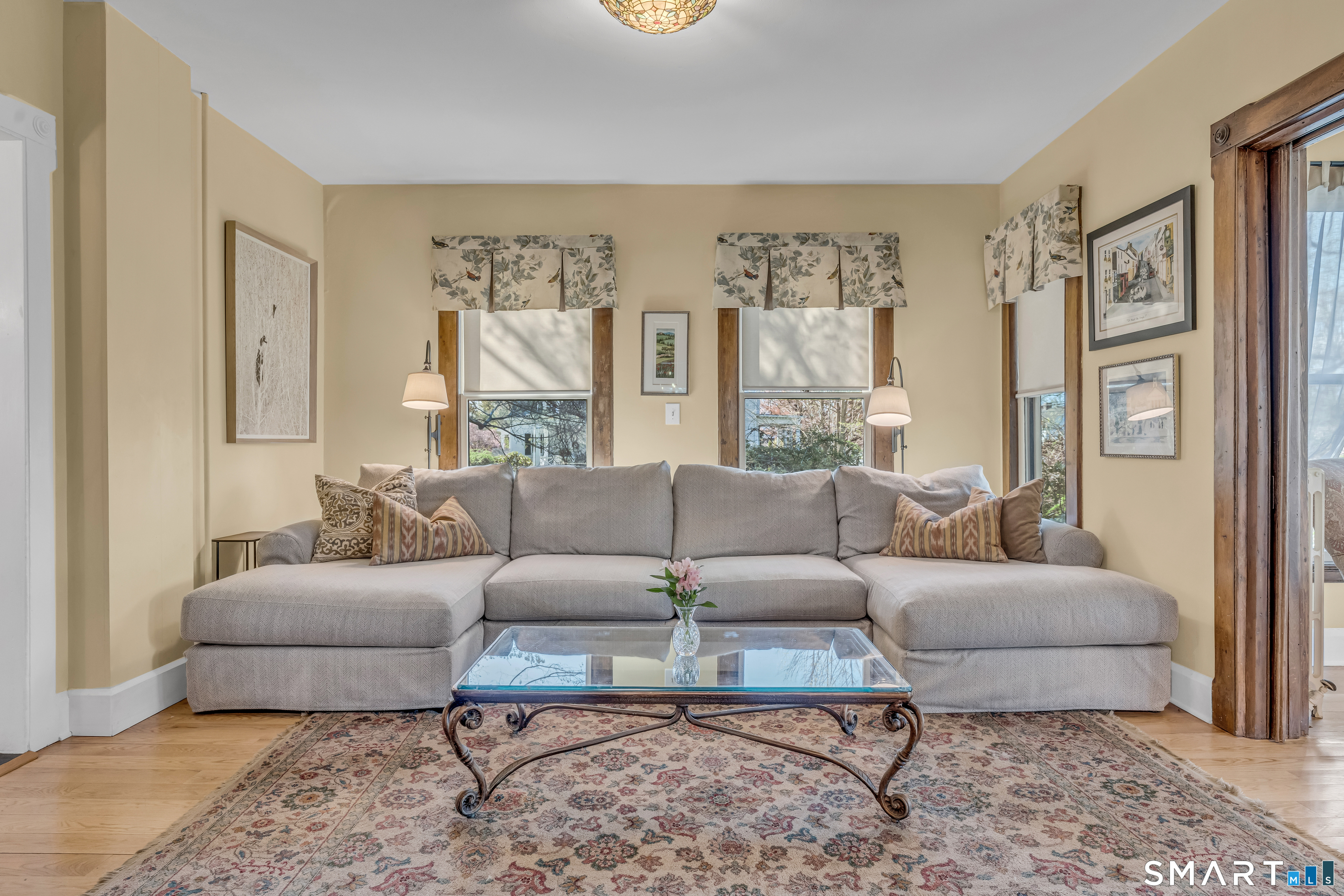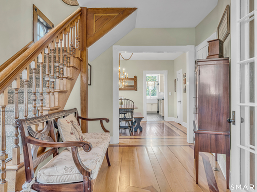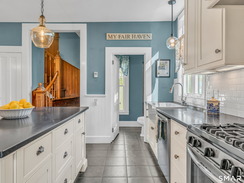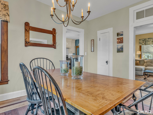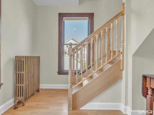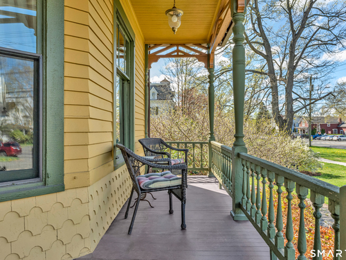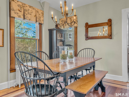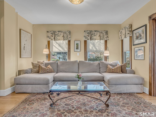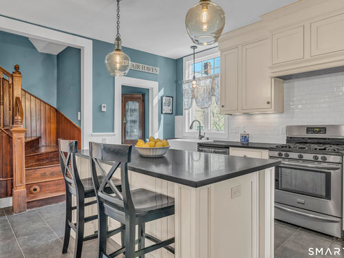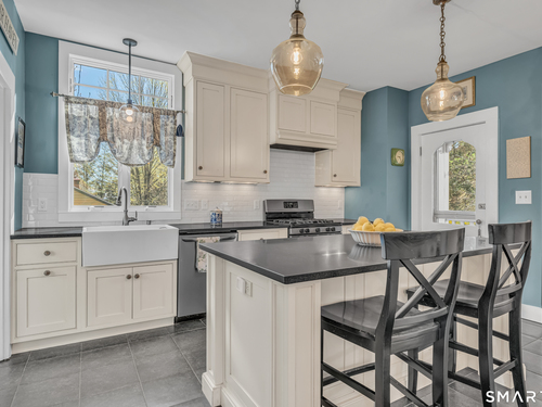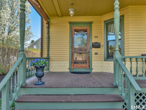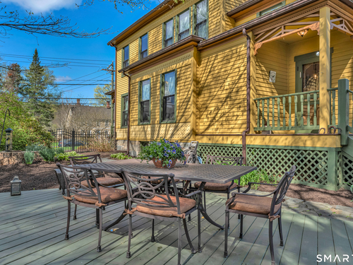 Homes on Main Street are rare. Homes that offer this level of charm, condition, and lifestyle are even rarer. 54 Main Street blends historic character with thoughtful modern updates in the heart of Newtown. Enjoy the Labor Day Parade, Halloween evenings, and holiday lights from the covered front porch. Inside, a gracious foyer sets the tone for the craftsmanship found throughout. The main level flows from a front living room into a family room, dining room, and a chef's kitchen with a large granite island, custom cabinetry, stainless appliances, gas range, and radiant heated tile floors. A powder room with soapstone vanity completes the level. Upstairs, three well-sized bedrooms and a beautifully updated full bath with double vanity, Carrera marble countertop, and radiant heat. The third floor offers a tucked-away retreat with a full bath, perfect for a bedroom, office, or play space. Since 2021, notable updates include energy-efficiency insulation, high-velocity central A/C, new driveway, fencing, deck, fire pit, and fresh paint throughout. City water, city sewer, and natural gas round it out. Walk to shops, restaurants, the library, and Edmond Town Hall. Main Street living at its finest.