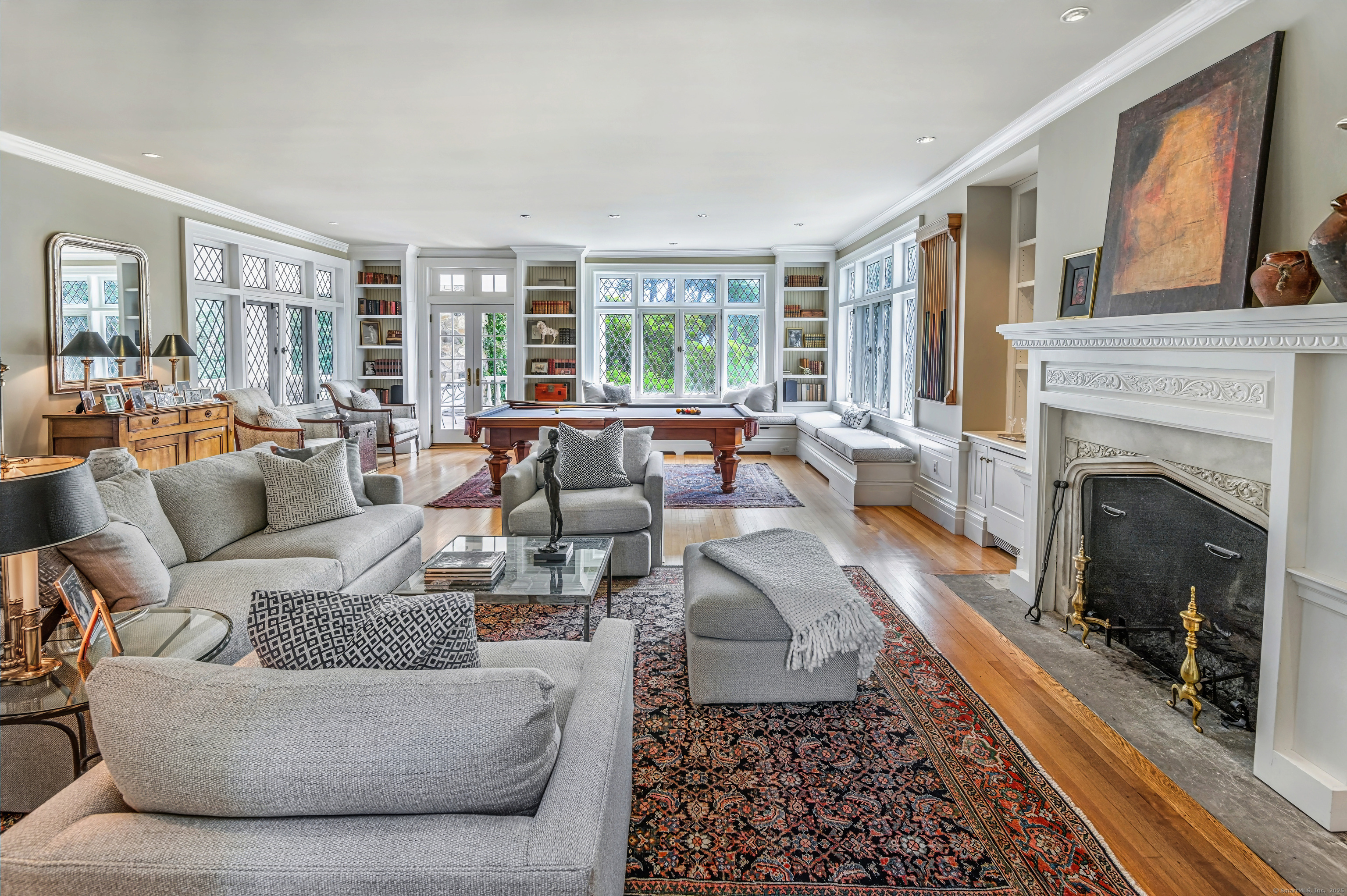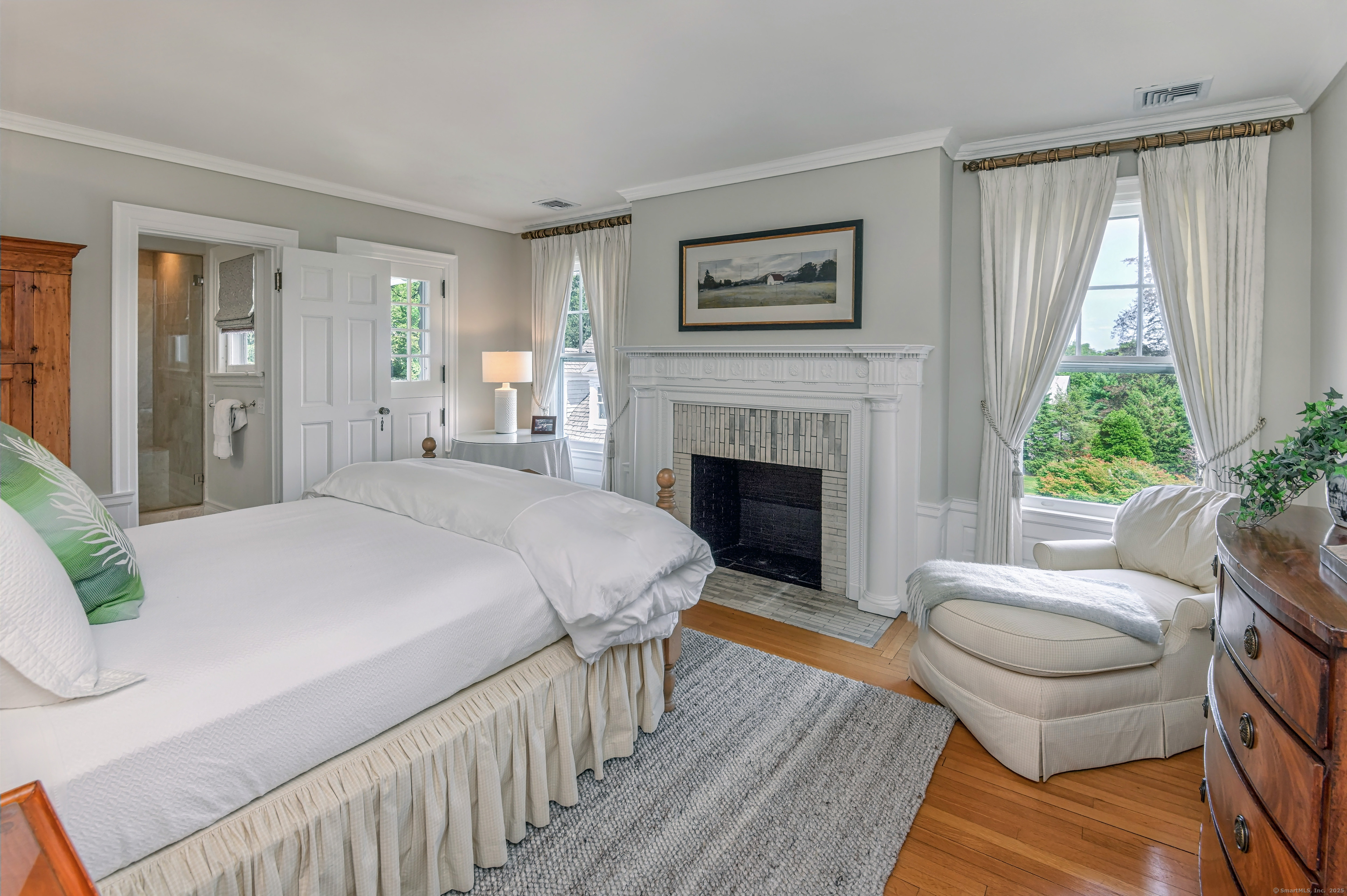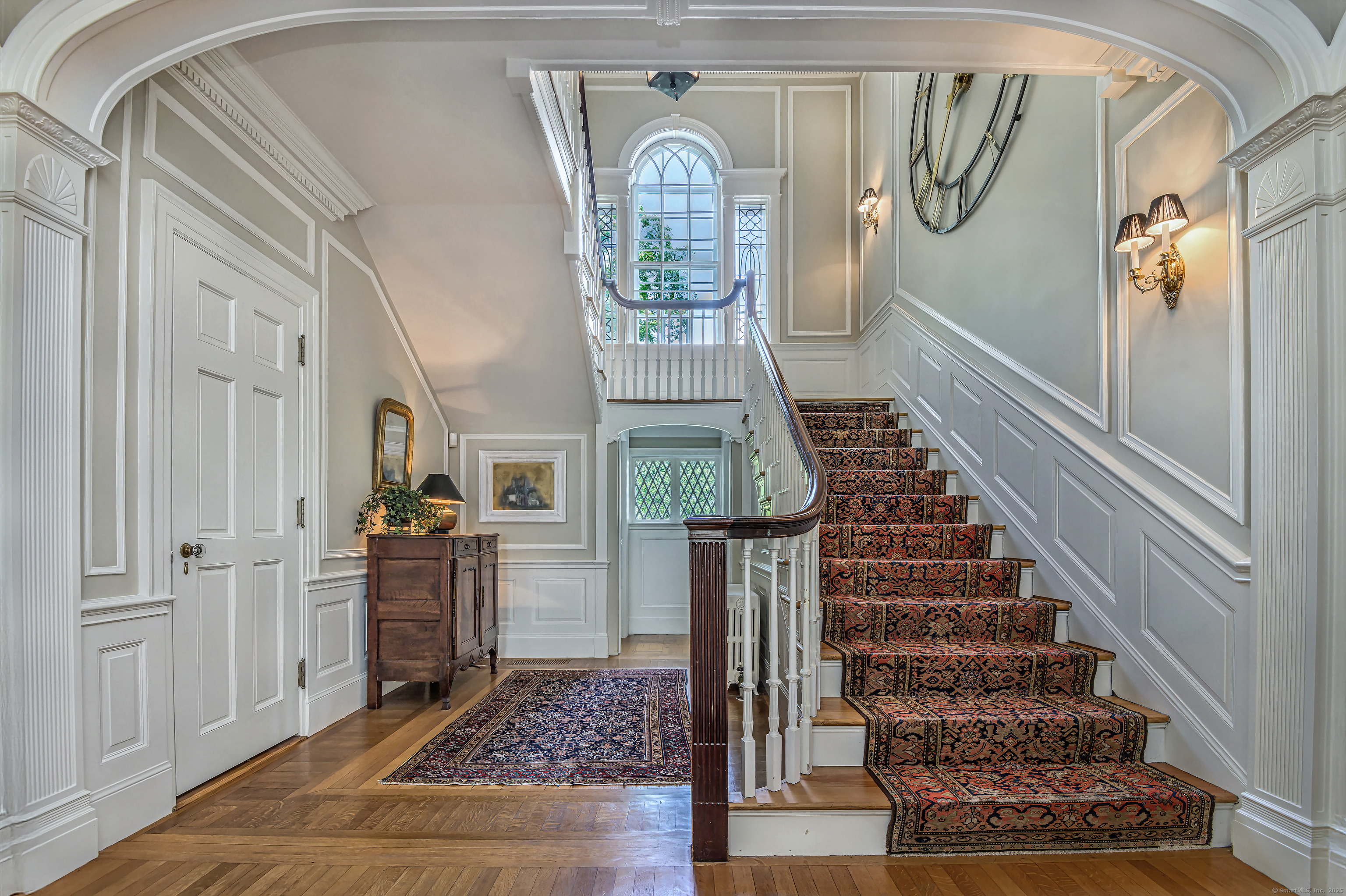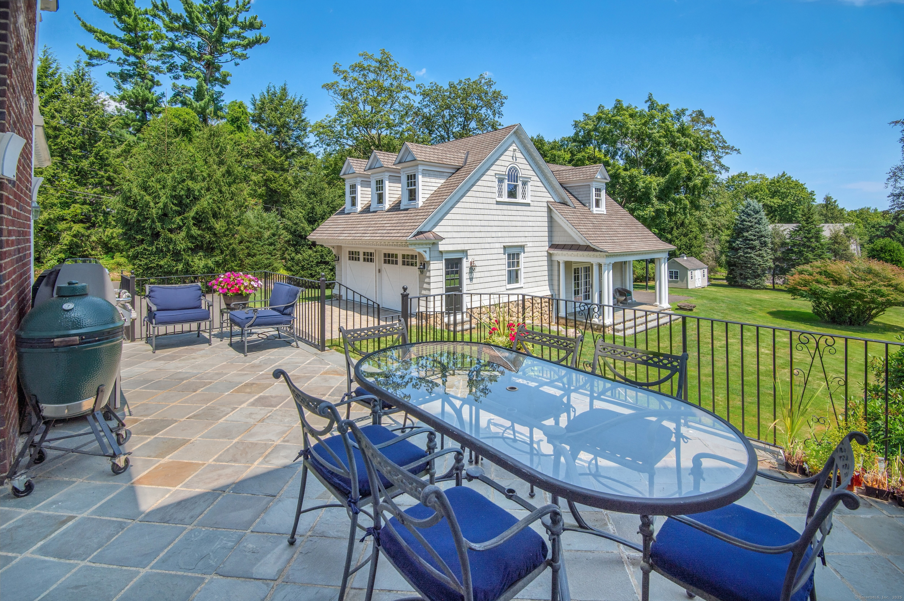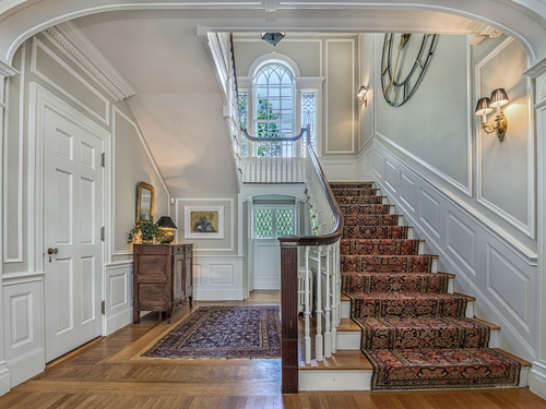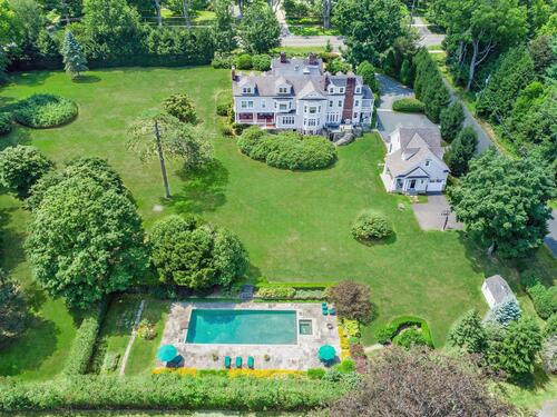 Truly one of Main Street's most admired Estate properties, this distinguished residence offers a rare combination of timeless architecture and curated luxury. Perfectly positioned within walking distance to desirable Downtown Ridgefield, the home is framed by an extraordinary setting that enhances its stately presence. Expertly restored by the current owners, every element has been elevated to incorporate modern amenities while preserving the artistry of its original design. Inside, a refined floor plan showcases generous rooms, soaring ceilings, and an abundance of natural light. Exquisite millwork, bespoke finishes, and tailored appointments are found throughout, creating an atmosphere of understated sophistication. The Chef's KIT is a showpiece-crafted w/custom cabinetry, professional-grade appliances, exceptional detailing-designed for both culinary excellence & elevated entertaining. Each living space flows effortlessly, balancing elegance & comfort with architectural precision. The Primary Suite offers a serene retreat with spa-inspired bath, his/her closets + spacious bedroom w/fireplace. Additional Ensuite Bedrooms reflect the same attention to design & proportion. Outdoors, landscaped grounds, expansive lawns provide a setting of rare beauty. Resort style amenities include a 50' Heated, Gunite Saltwater Pool & Spa. A separate 3/4 car garage/carriage house has been added to allow for additional living space above..options are endless. Truly One of a Kind.