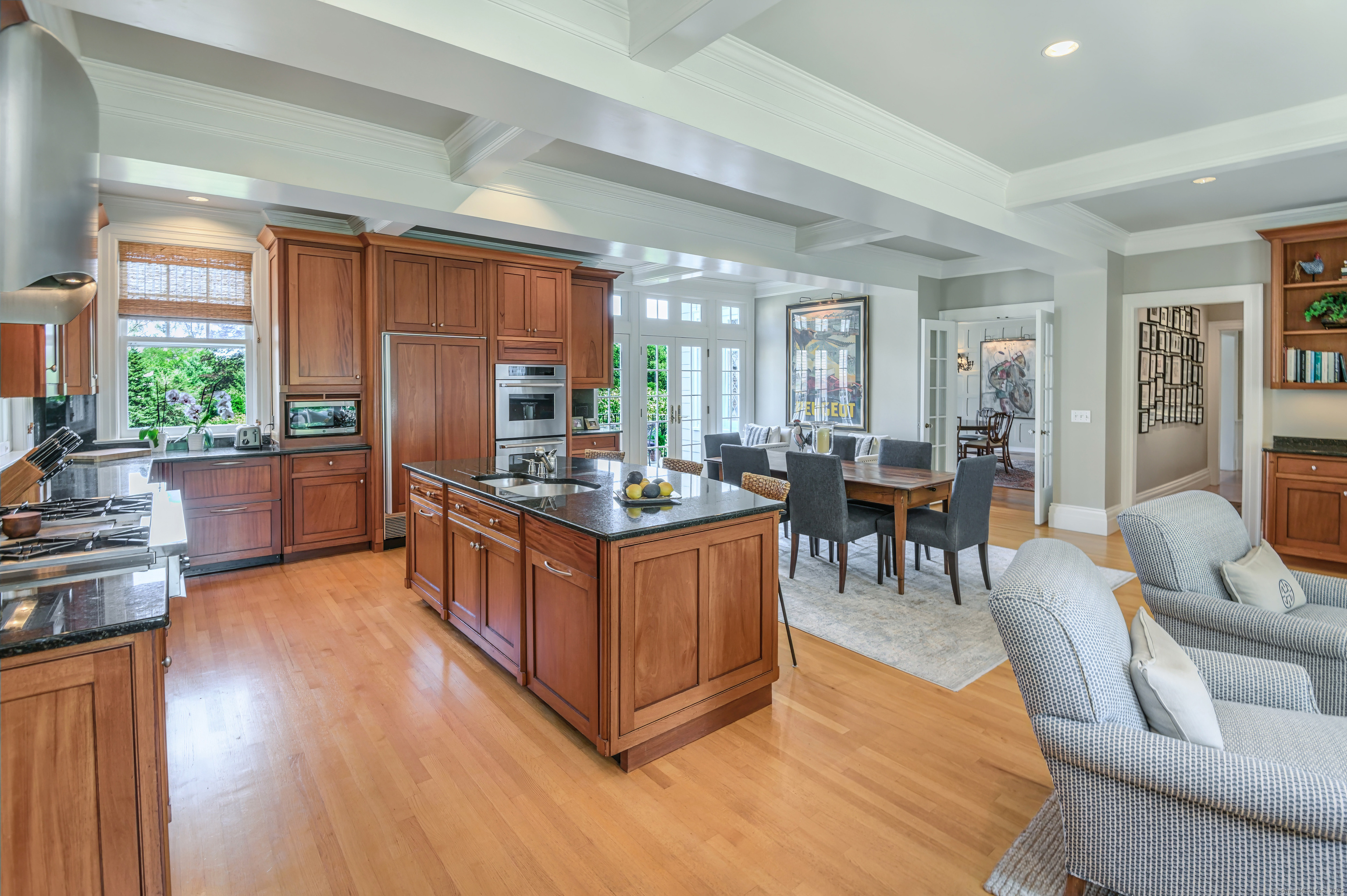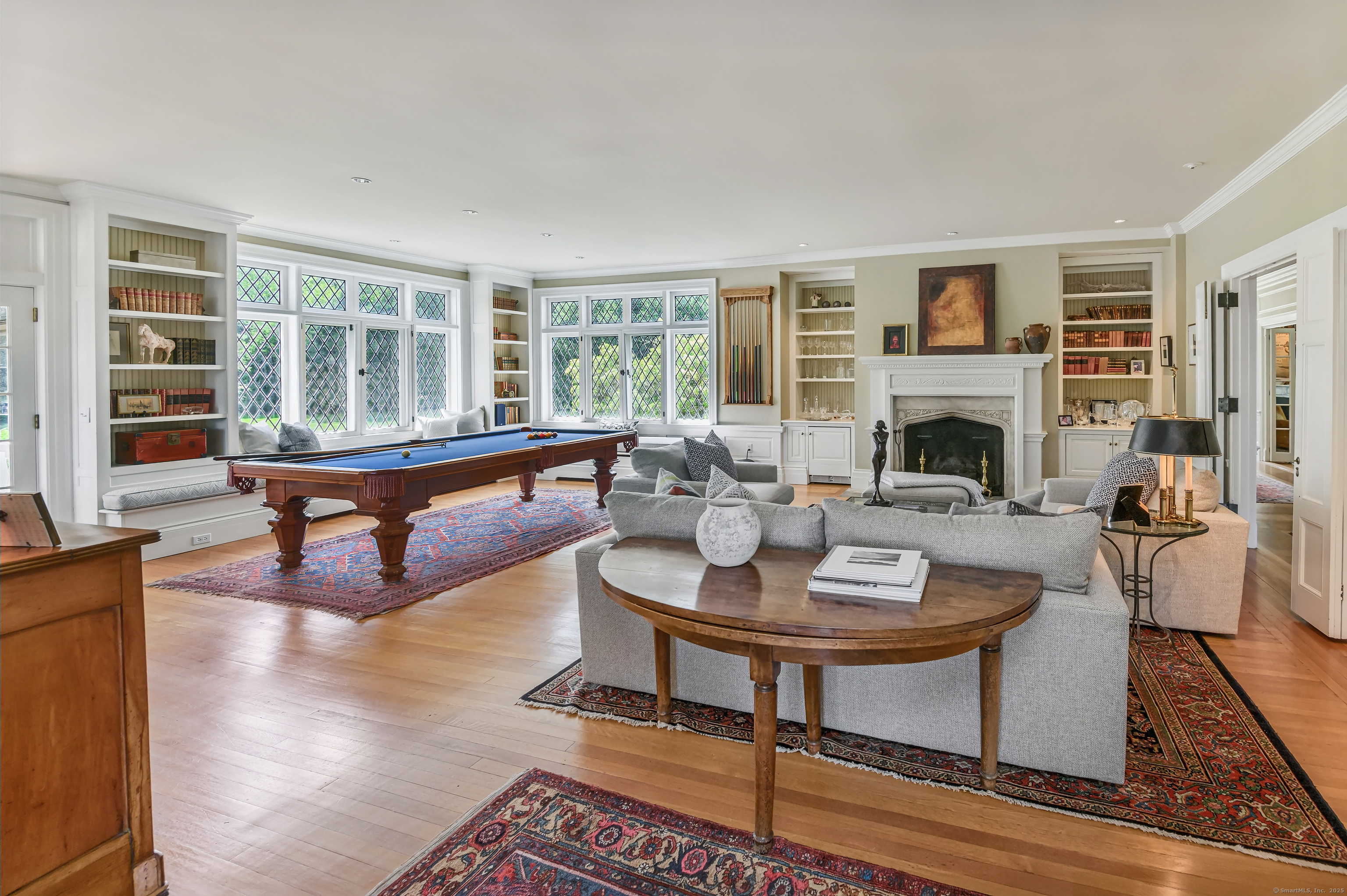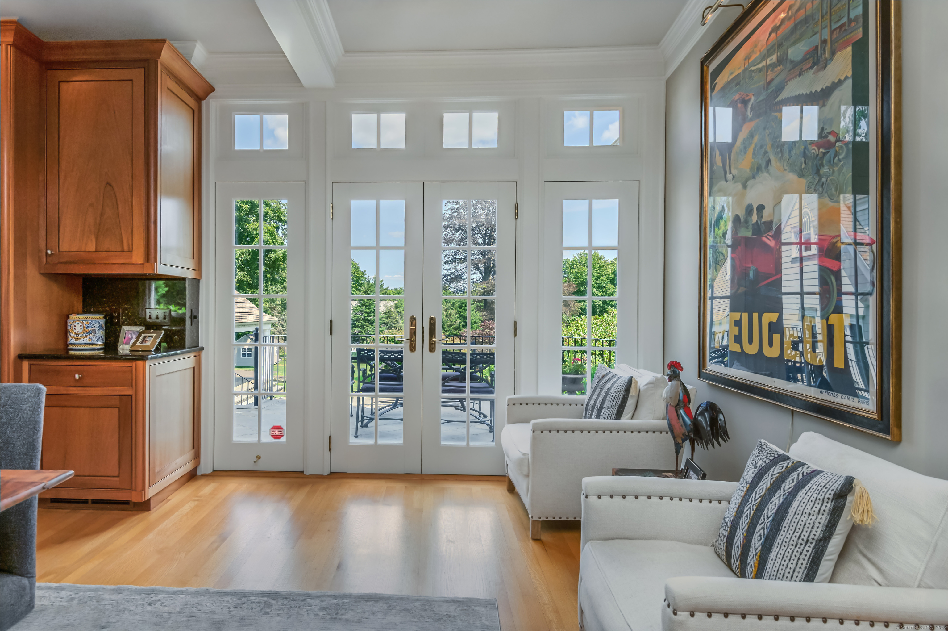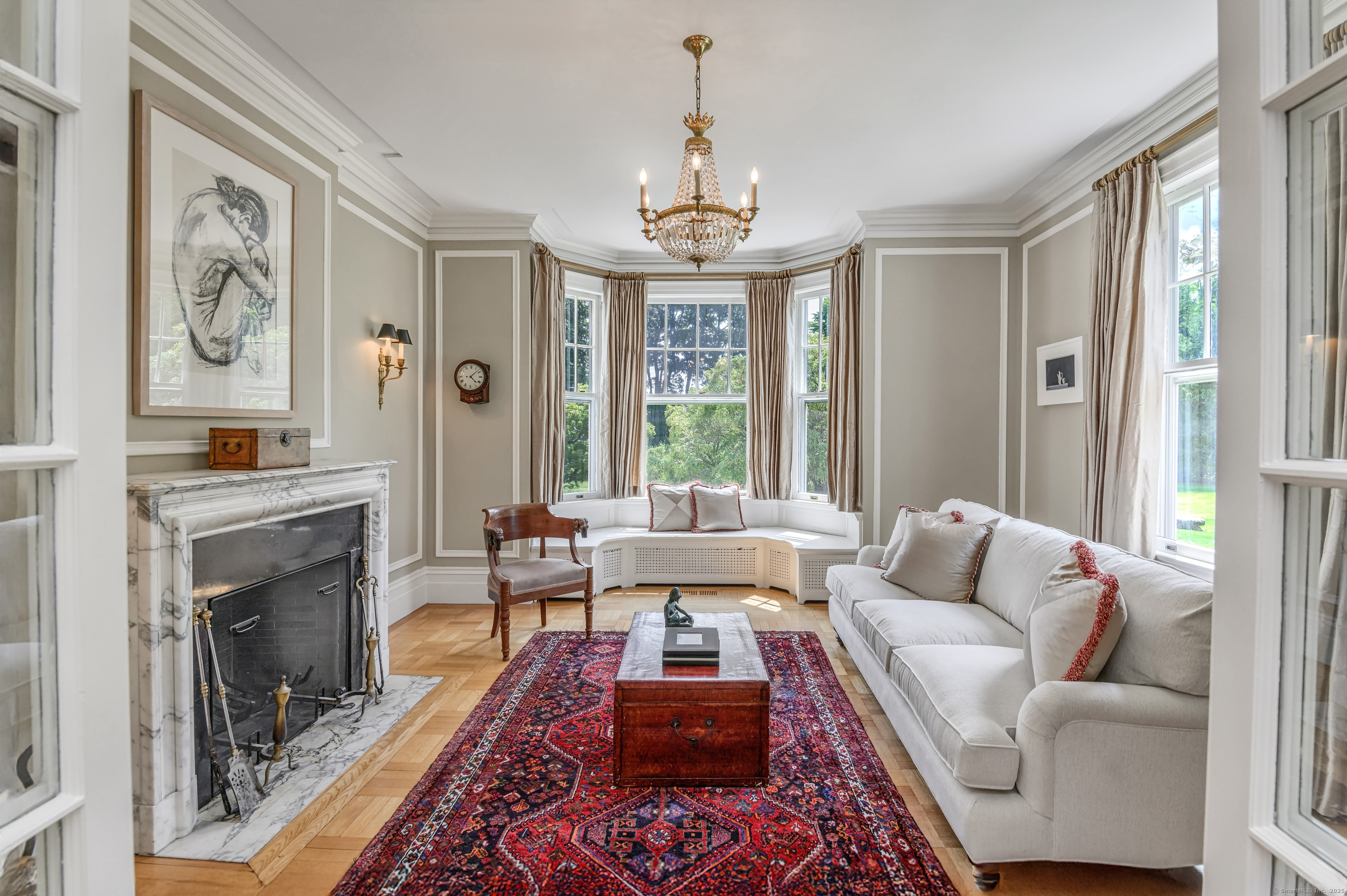 Truly one of Main Street's most admired Estate properties, this distinguished residence offers a rare combination of timeless architecture and curated luxury. Perfectly positioned within walking distance to desirable Downtown Ridgefield, the home is framed by an extraordinary setting that enhances its stately presence. Expertly restored by the current owners, every element has been elevated to incorporate modern amenities while preserving the artistry of its original design. Inside, a refined floor plan showcases generous rooms, soaring ceilings, and an abundance of natural light. Exquisite millwork, bespoke finishes, and tailored appointments are found throughout, creating an atmosphere of understated sophistication. The Chef's KIT is a showpiece-crafted w/custom cabinetry, professional-grade appliances, exceptional detailing-designed for both culinary excellence & elevated entertaining. Each living space flows effortlessly, balancing elegance & comfort with architectural precision. The Primary Suite offers a serene retreat with spa-inspired bath, his/her closets + spacious bedroom w/fireplace. Additional Ensuite Bedrooms reflect the same attention to design & proportion. Outdoors, landscaped grounds, expansive lawns provide a setting of rare beauty. Resort style amenities include a 50' Heated, Gunite Saltwater Pool & Spa. A separate 3/4 car garage/carriage house has been added to allow for additional living space above..options are endless. Truly One of a Kind.