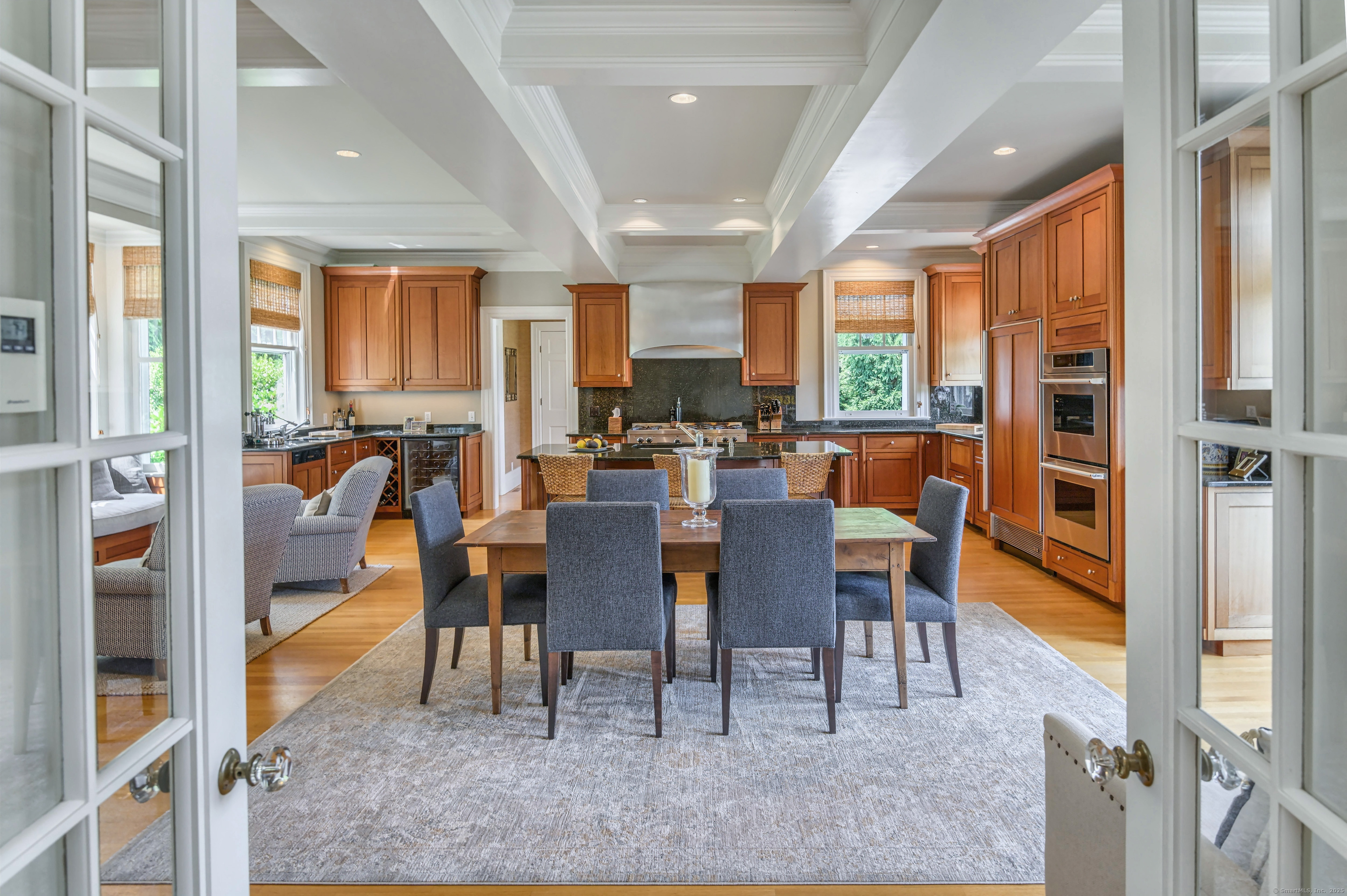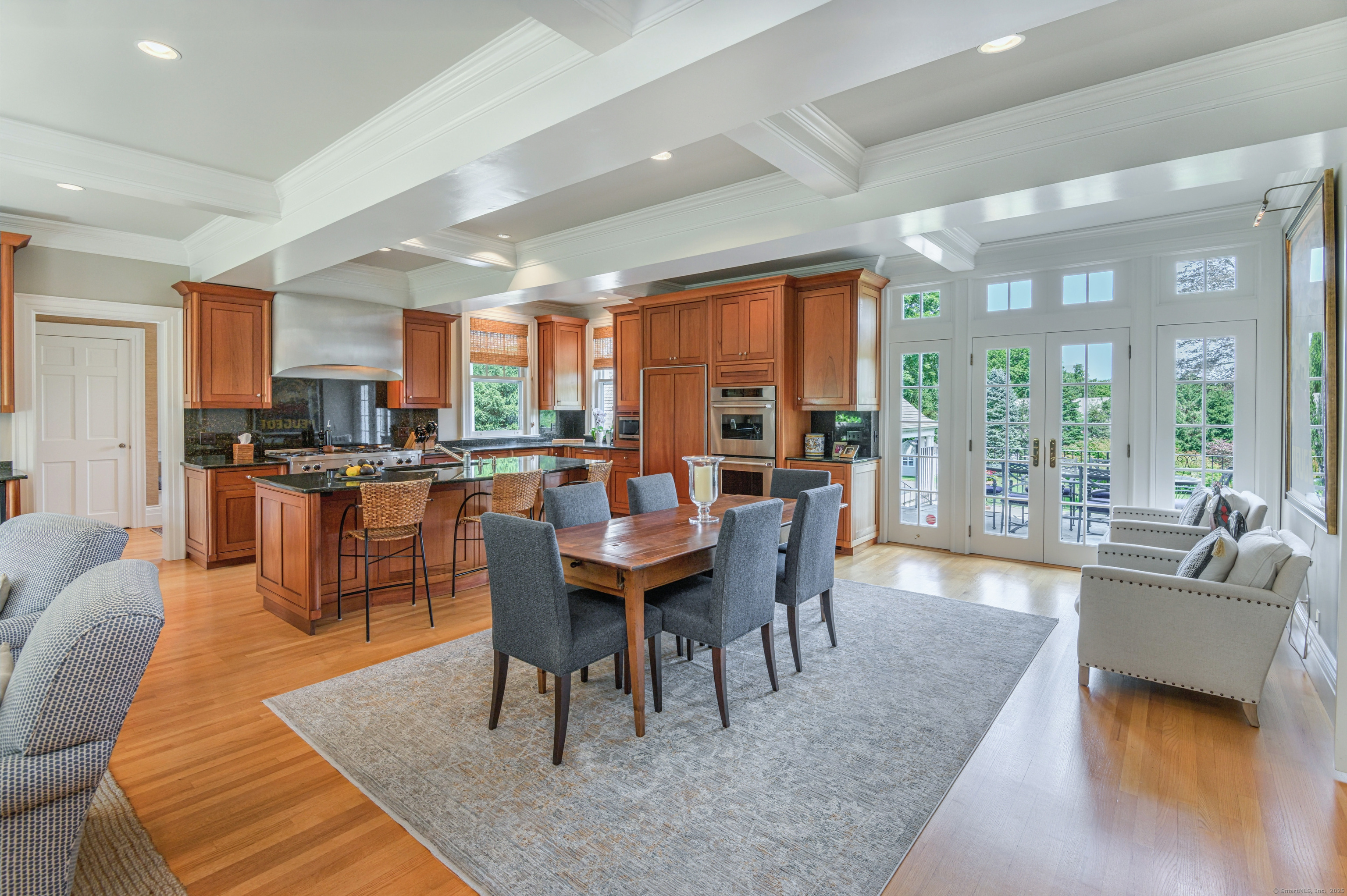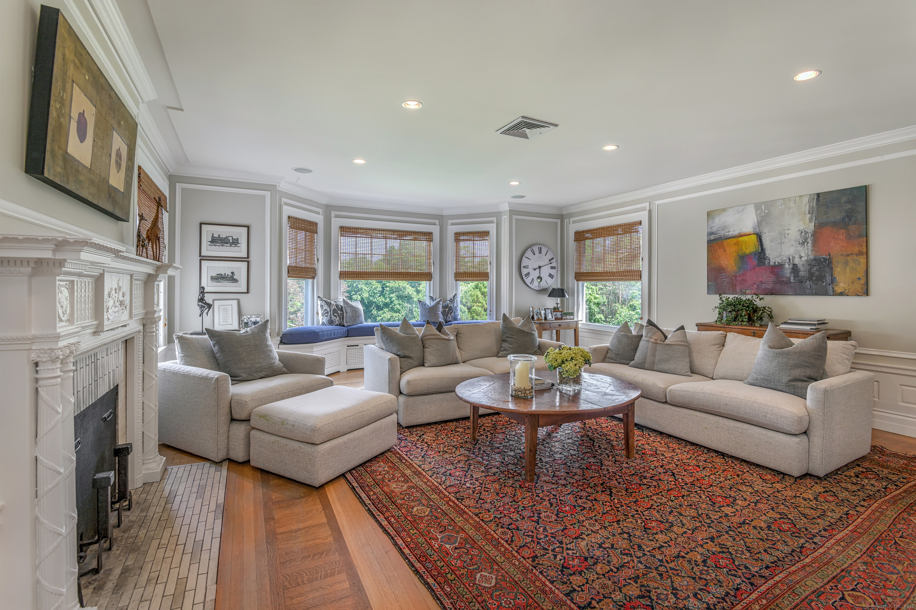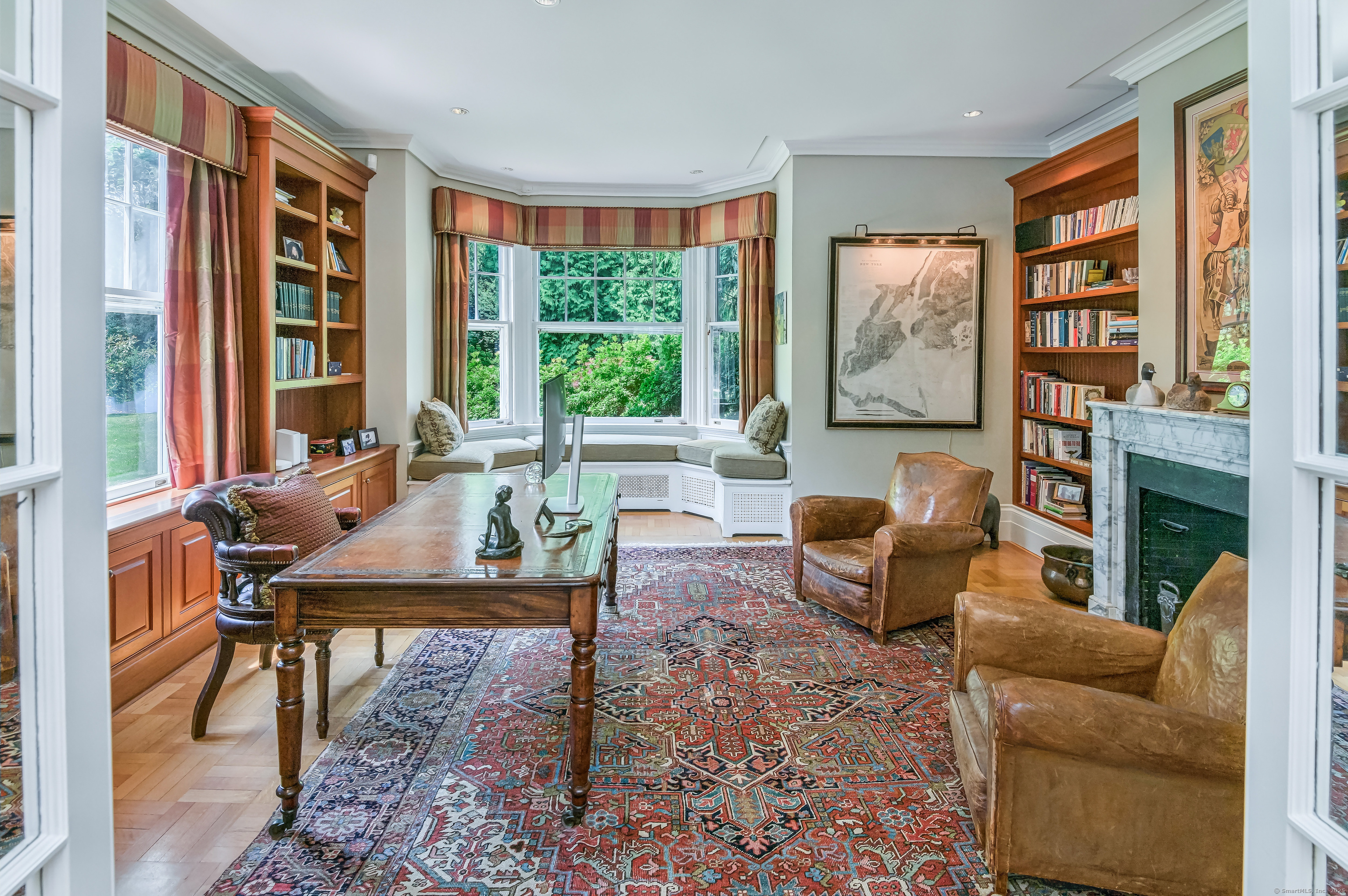 Truly one of Main Street's most admired Estate properties, this distinguished residence offers a rare combination of timeless architecture and curated luxury. Perfectly positioned within walking distance to desirable Downtown Ridgefield, the home is framed by an extraordinary setting that enhances its stately presence. Expertly restored by the current owners, every element has been elevated to incorporate modern amenities while preserving the artistry of its original design. Inside, a refined floor plan showcases generous rooms, soaring ceilings, and an abundance of natural light. Exquisite millwork, bespoke finishes, and tailored appointments are found throughout, creating an atmosphere of understated sophistication. The Chef's KIT is a showpiece-crafted w/custom cabinetry, professional-grade appliances, exceptional detailing-designed for both culinary excellence & elevated entertaining. Each living space flows effortlessly, balancing elegance & comfort with architectural precision. The Primary Suite offers a serene retreat with spa-inspired bath, his/her closets + spacious bedroom w/fireplace. Additional Ensuite Bedrooms reflect the same attention to design & proportion. Outdoors, landscaped grounds, expansive lawns provide a setting of rare beauty. Resort style amenities include a 50' Heated, Gunite Saltwater Pool & Spa. A separate 3/4 car garage/carriage house has been added to allow for additional living space above..options are endless. Truly One of a Kind.