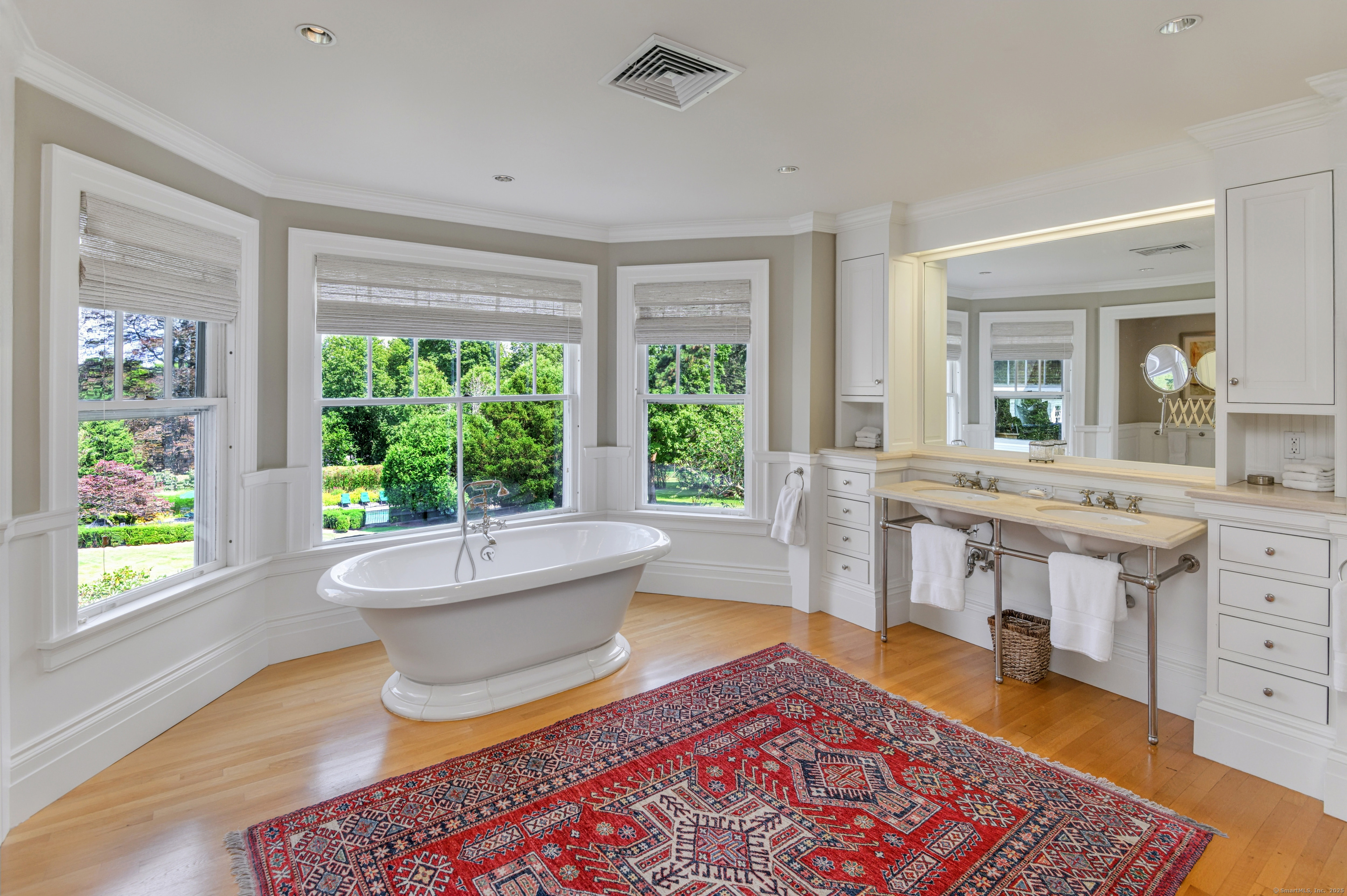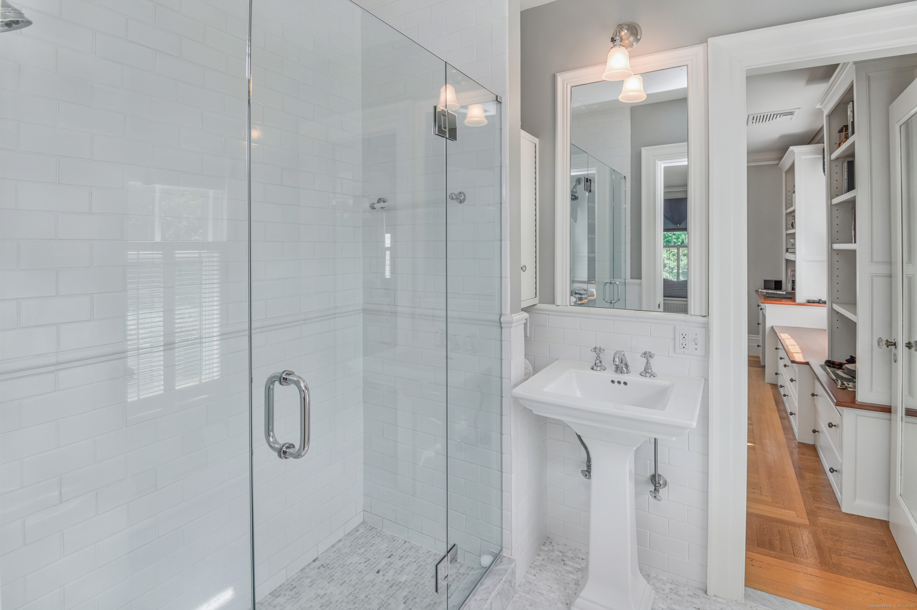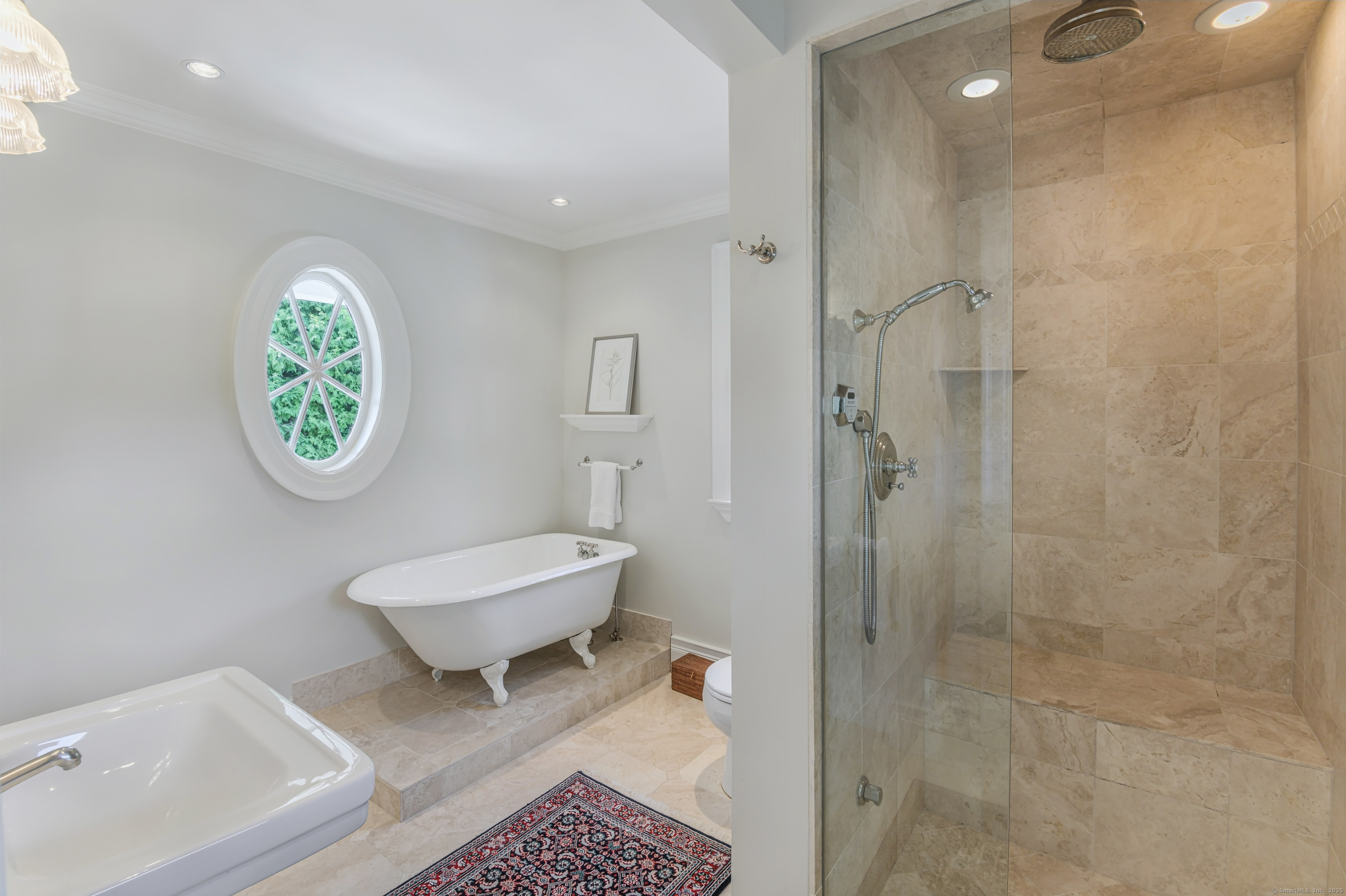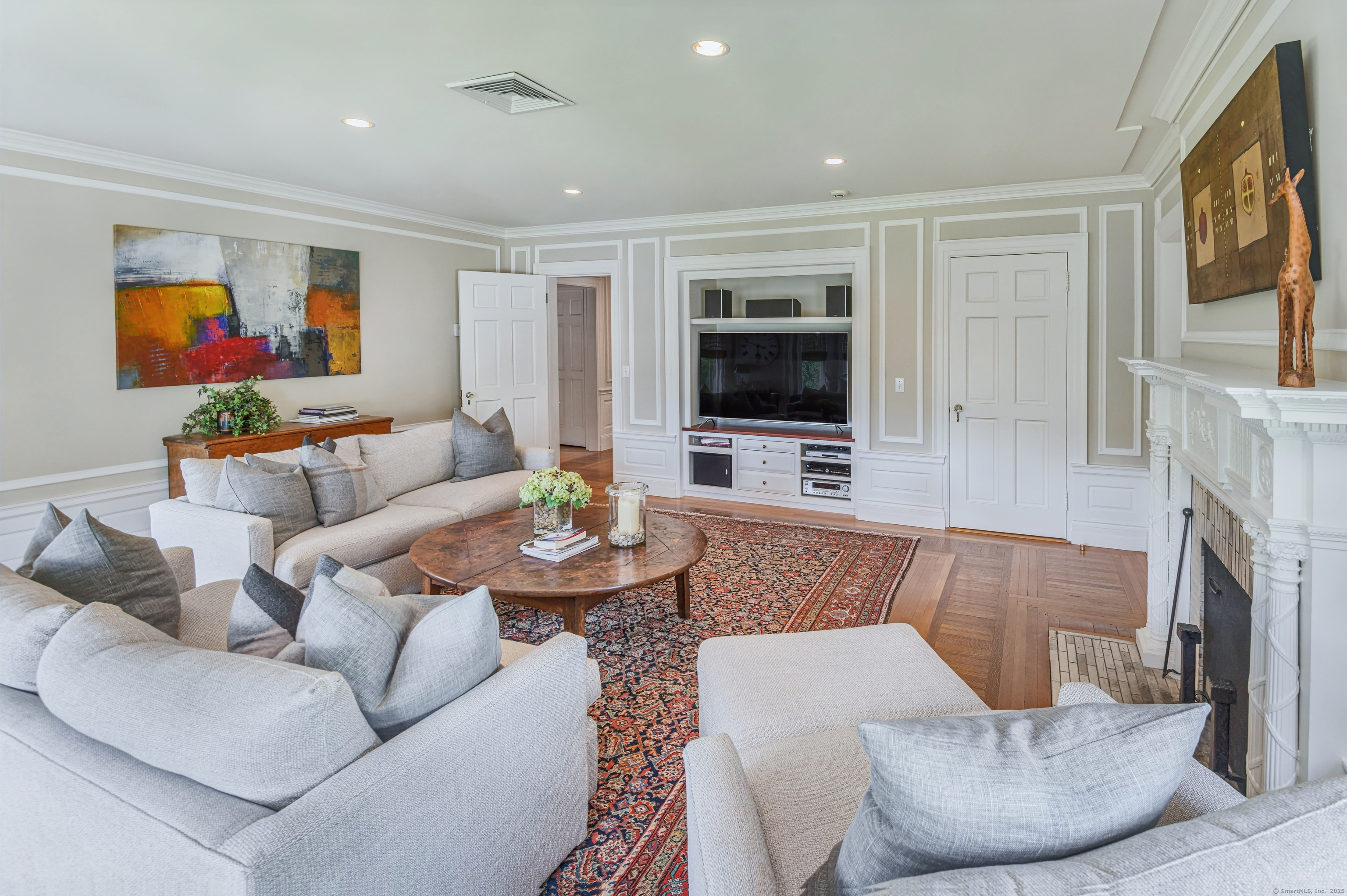 Truly one of Main Street's most admired Estate properties, this distinguished residence offers a rare combination of timeless architecture and curated luxury. Perfectly positioned within walking distance to desirable Downtown Ridgefield, the home is framed by an extraordinary setting that enhances its stately presence. Expertly restored by the current owners, every element has been elevated to incorporate modern amenities while preserving the artistry of its original design. Inside, a refined floor plan showcases generous rooms, soaring ceilings, and an abundance of natural light. Exquisite millwork, bespoke finishes, and tailored appointments are found throughout, creating an atmosphere of understated sophistication. The Chef's KIT is a showpiece-crafted w/custom cabinetry, professional-grade appliances, exceptional detailing-designed for both culinary excellence & elevated entertaining. Each living space flows effortlessly, balancing elegance & comfort with architectural precision. The Primary Suite offers a serene retreat with spa-inspired bath, his/her closets + spacious bedroom w/fireplace. Additional Ensuite Bedrooms reflect the same attention to design & proportion. Outdoors, landscaped grounds, expansive lawns provide a setting of rare beauty. Resort style amenities include a 50' Heated, Gunite Saltwater Pool & Spa. A separate 3/4 car garage/carriage house has been added to allow for additional living space above..options are endless. Truly One of a Kind.