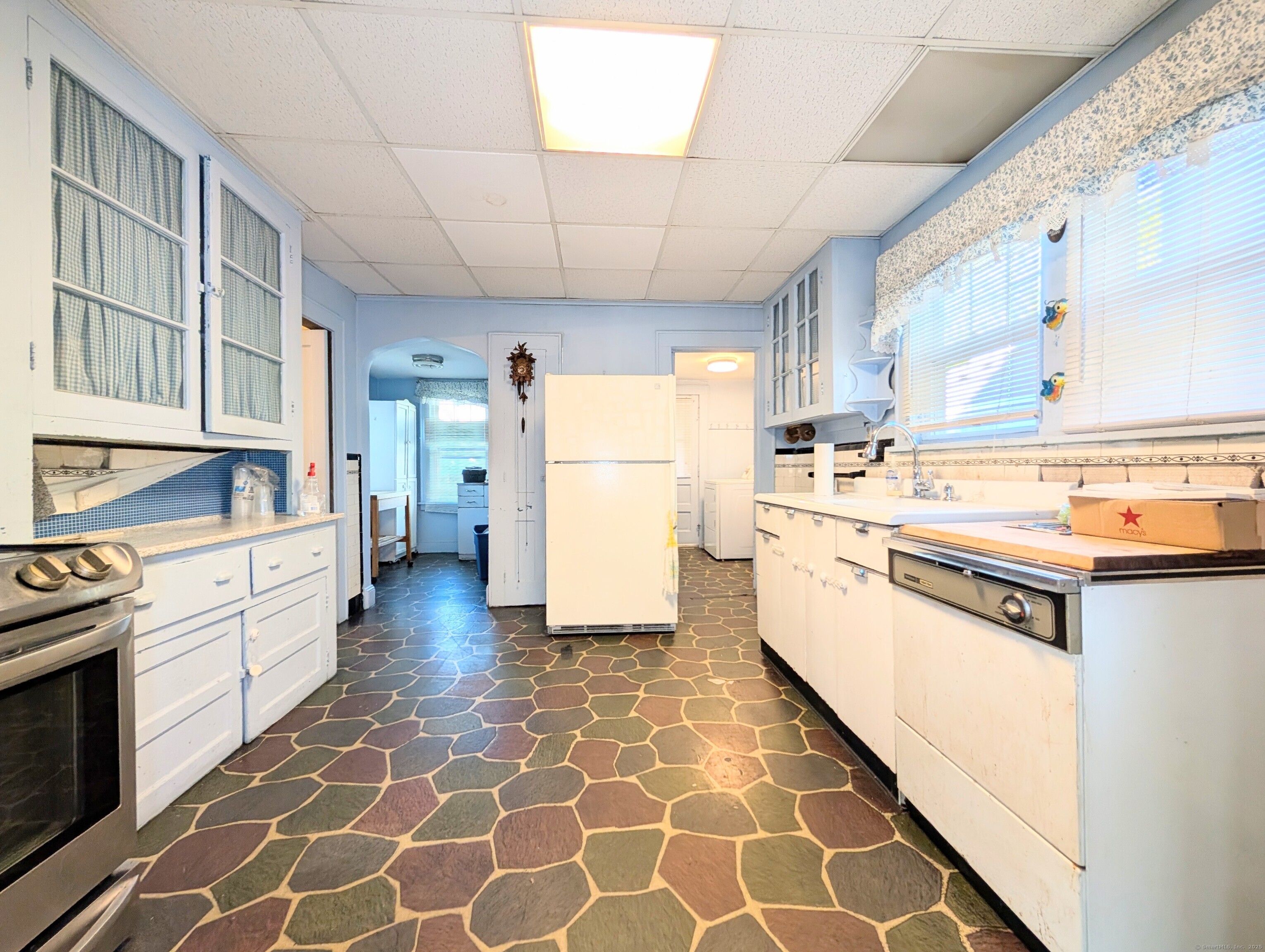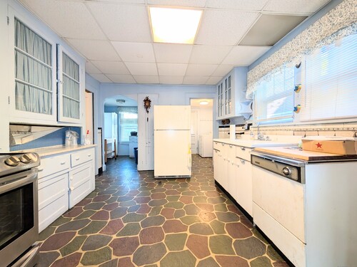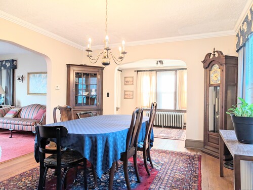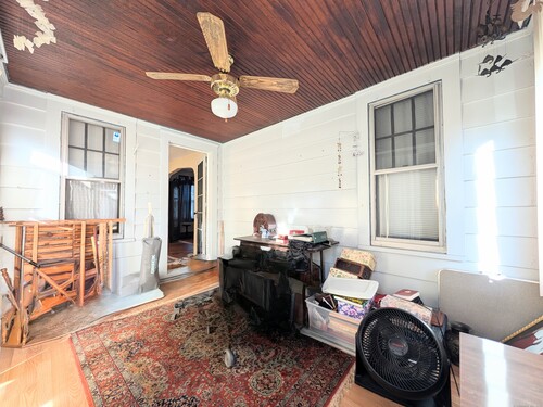 This solid and spacious Colonial-style home is built to last, offering incredible value and endless potential. Major updates have already been completed, including a newer roof, windows, furnace, plumbing, water heater, conversion from oil to gas heating. Located steps away from Pleasure Beach in a truly up-and-coming neighborhood with exciting new developments already in the works. Step into a welcoming foyer that opens to a extra large living room with a cozy brick fireplace and beautiful hardwood flooring underneath the carpeting. The formal dining room is perfect for family gatherings, while the functional kitchen with custom stone tile awaits your personal touch. The main level also features a family room, laundry room, half bath, and a four-season porch for year-round enjoyment. Upstairs, you'll find three bedrooms, a full bath, two linen closets, and a walk-up attic on a 3rd level offering abundant storage or the possibility for future expansion. The full, dry basement has high ceilings and a separate walkout, perfect for finishing. Outside, a long paved driveway leads to a fully fenced, private, and extra large backyard with a concrete patio and shed, ideal for summer BBQs or peaceful evenings. Conveniently close to highways, shopping, and restaurants. This home combines affordability and durability with a solid foundation and timeless natural wood features that add warmth and charm throughout. Sale is subject to probate court approval. Won't Last!