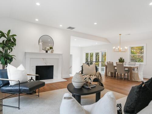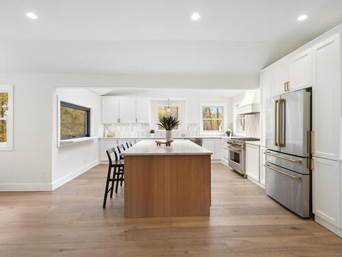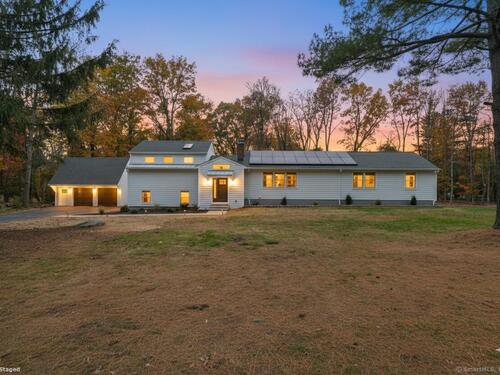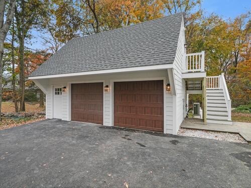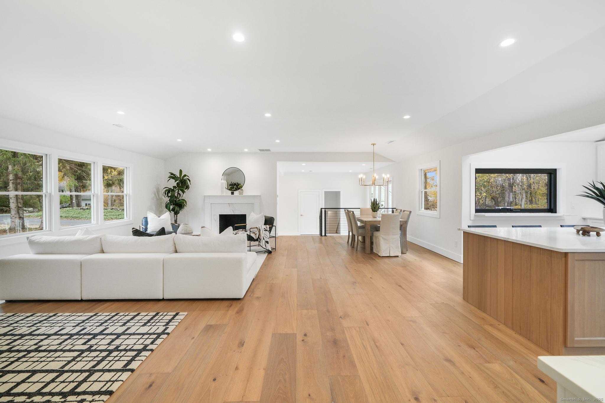 Welcome to 55 Liberty St. Unparalleled modern luxury in this meticulously rebuilt 5-bedroom, 4.5-bath Wilton residence. Set on 1.8 private acres, the home delivers seamless, sun-drenched living across 4,300+ square feet, following a comprehensive 2025 renovation that saw the property rebuilt from the studs up. Step inside to discover European wire-brushed hardwood floors and an effortless, open layout. The heart of the home is a vaulted-ceiling kitchen, featuring contemporary white cabinetry and a full suite of CAFETM smart appliances. Upstairs, the spa-like primary suite is finished with Natural Marble and luxurious gold Kohler fixtures, offering a perfect sanctuary. The lower level is designed for wellness and flexibility, hosting a brand-new sauna and a spacious recreation room. Further enhancing the property is a new detached two-car garage with second-story potential for guest quarters or a private office. Engineered for efficiency, the residence features a Bosch Hyper Heat HVAC system and a new Solar Array. Positioned moments from the Wilton Metro-North Station, this move-in-ready offering combines sophisticated, sustainable design with exceptional convenience. A rare opportunity for a turnkey luxury lifestyle.