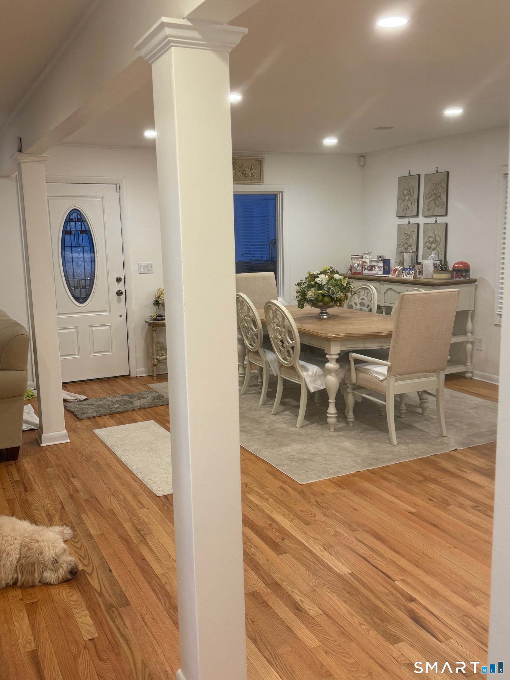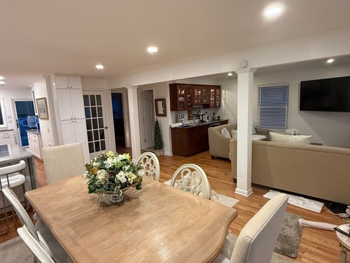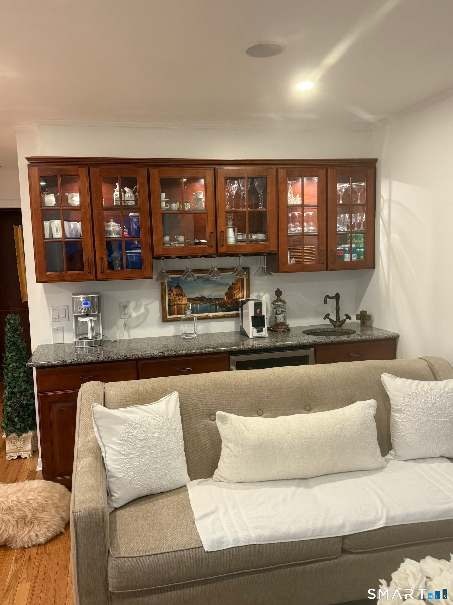 Totally Renovated. Over looking the Greenwich golf course and minutes away from the train station. Currently rented for $6,500 a month. This house is a 4-5 BR 3 Bath Colonial with great open floor plan. Hardwood floors, Central Air, Sound System, Alarm System and Generator. Living Room opens to Dining area with wet bar. Granite Eat-in Kitchen with sliders to deck and private backyard with shed. Recessed lighting. Primary Bedroom with double closets and 3 additional Bedrooms plus hall Bath. Finished walkout In-Law on the lower level has a full bath and and second bar.