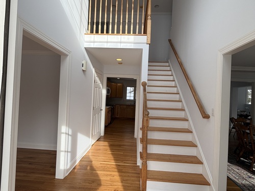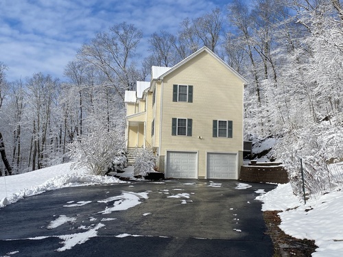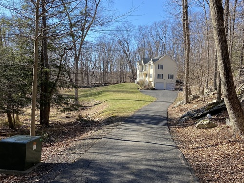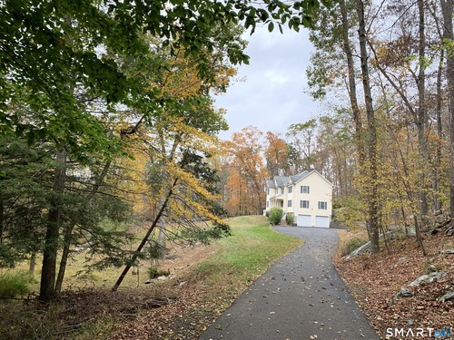 This sun-filled, freshly painted Colonial offers a tranquil setting on a picturesque lot, surrounded by flower gardens, fruit trees, and natural scenery. This 4bedroom, 2.5bath home offers 2,638 square feet of living space and a functional layout ideal for everyday living and entertaining. Conveniently located just minutes from I84 and close to Costco, Stew Leonard's, Target, and Danbury Mall. The main level features a living room, kitchen with eat-in area, formal dining room, family room with fireplace and garden views, office, and half bath. For improved security, the primary doorway features a Ring doorbell along with a Schlage electronic lock. The upper level includes a spacious primary suite with an en-suite bath, spa tub, separate shower, and two-side walk-in closet, plus three additional bedrooms with pretty country views, a full bath, laundry room, and ample closet space. Brand-new luxury carpeting in all bedrooms adds warmth, cozy, and elegant. The lower level is a walk-out basement and a spacious two-car garage with remote openers, entry keypads, and security camera for convenience and security.
