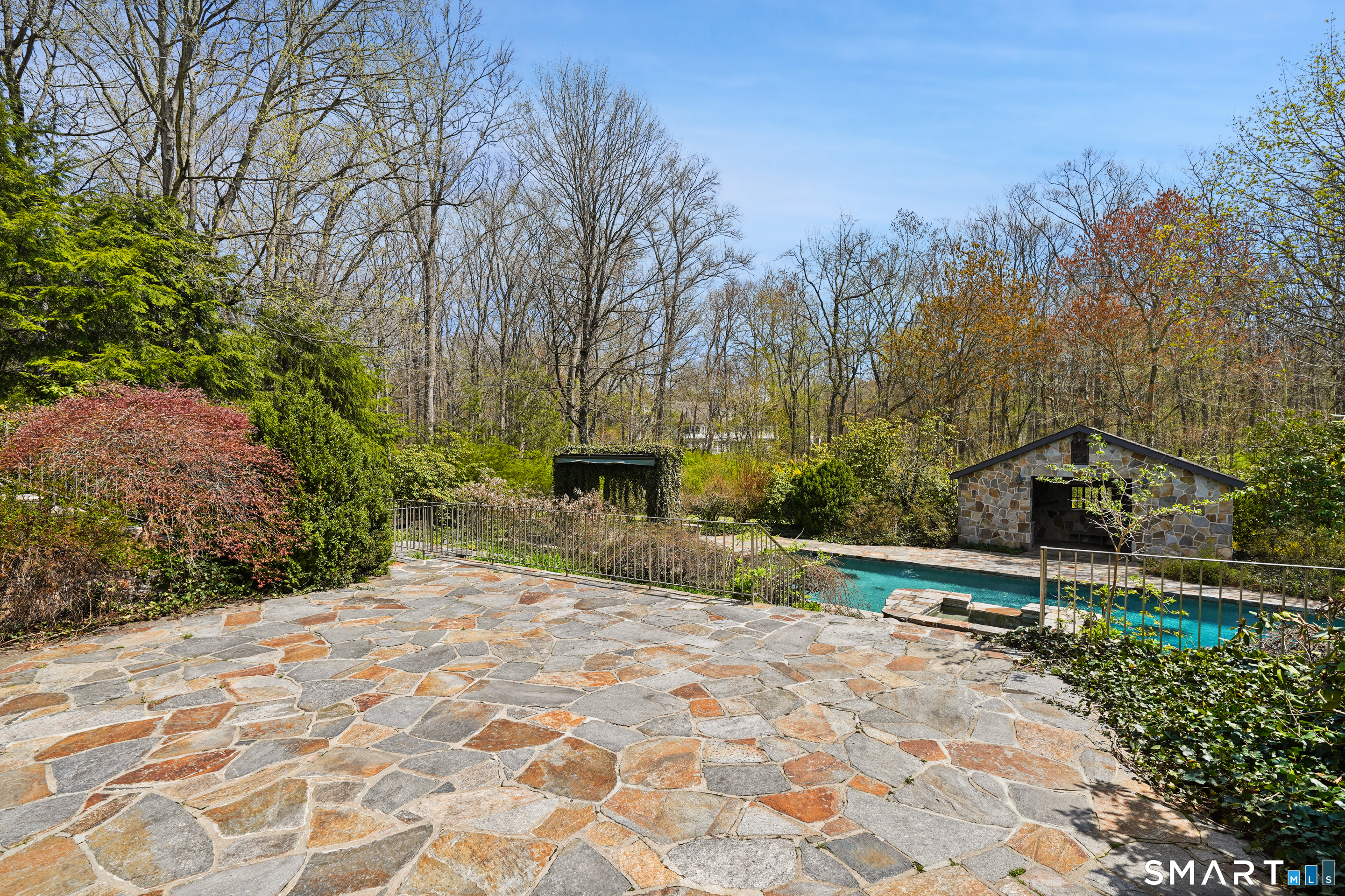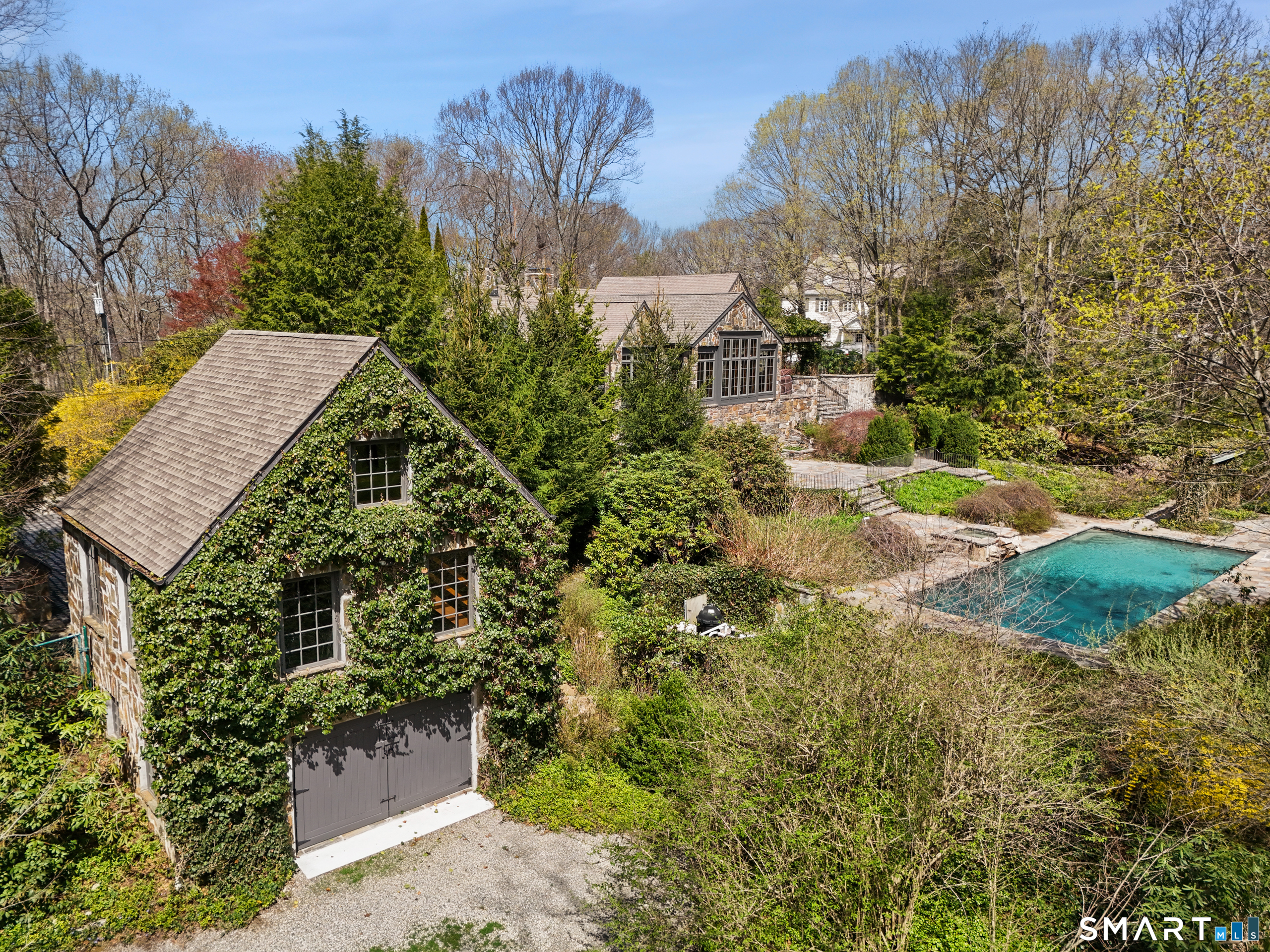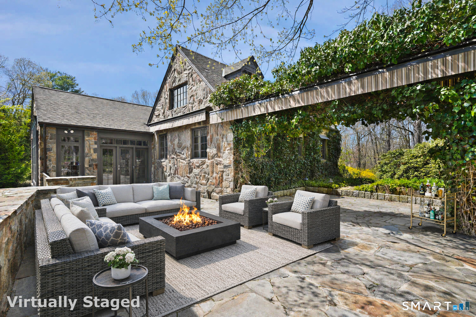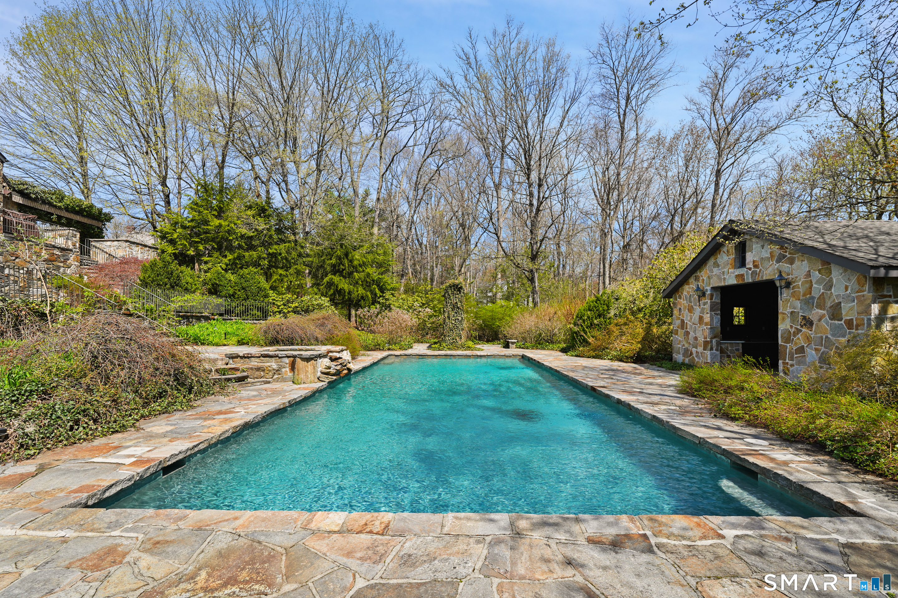 A rare opportunity to own one of Charcoal Hill's signature properties, this exceptional Frazier Peters stone home pairs historic craftsmanship with a level of care and refinement that is increasingly hard to find. Set atop 2.3 +/- gated acres and introduced through a stunning circular drive, the residence showcases Peters' hallmark use of native stone, warm wood tones, and artisan detail, creating a home that feels both enduring and deeply inviting. More recent expansion and remodeling have sensitively enhanced the home. Sunfilled rooms with vaulted ceilings and handhewn finishes offer a balance of scale, with multiple living spaces that transition seamlessly to the outdoors. The grounds unfold in a series of thoughtfully designed moments including lush perennial gardens, winding paths, quiet terraces, and vibrant seasonal color. At the center is a sparkling, oversized pool with a waterfall spa and a fully outfitted stone pool house, which is an ideal retreat for summer living. A heated 4car stone garage with a finished upper level provides flexible space for a studio, office, or possible guest space. Every corner of the property reveals another place to gather, from sunny patios to shaded areas beneath large awnings, all wrapped in exceptional privacy yet minutes to the energy and amenities of downtown Westport. A home where history, beauty, and modern comfort come together with uncommon harmony.