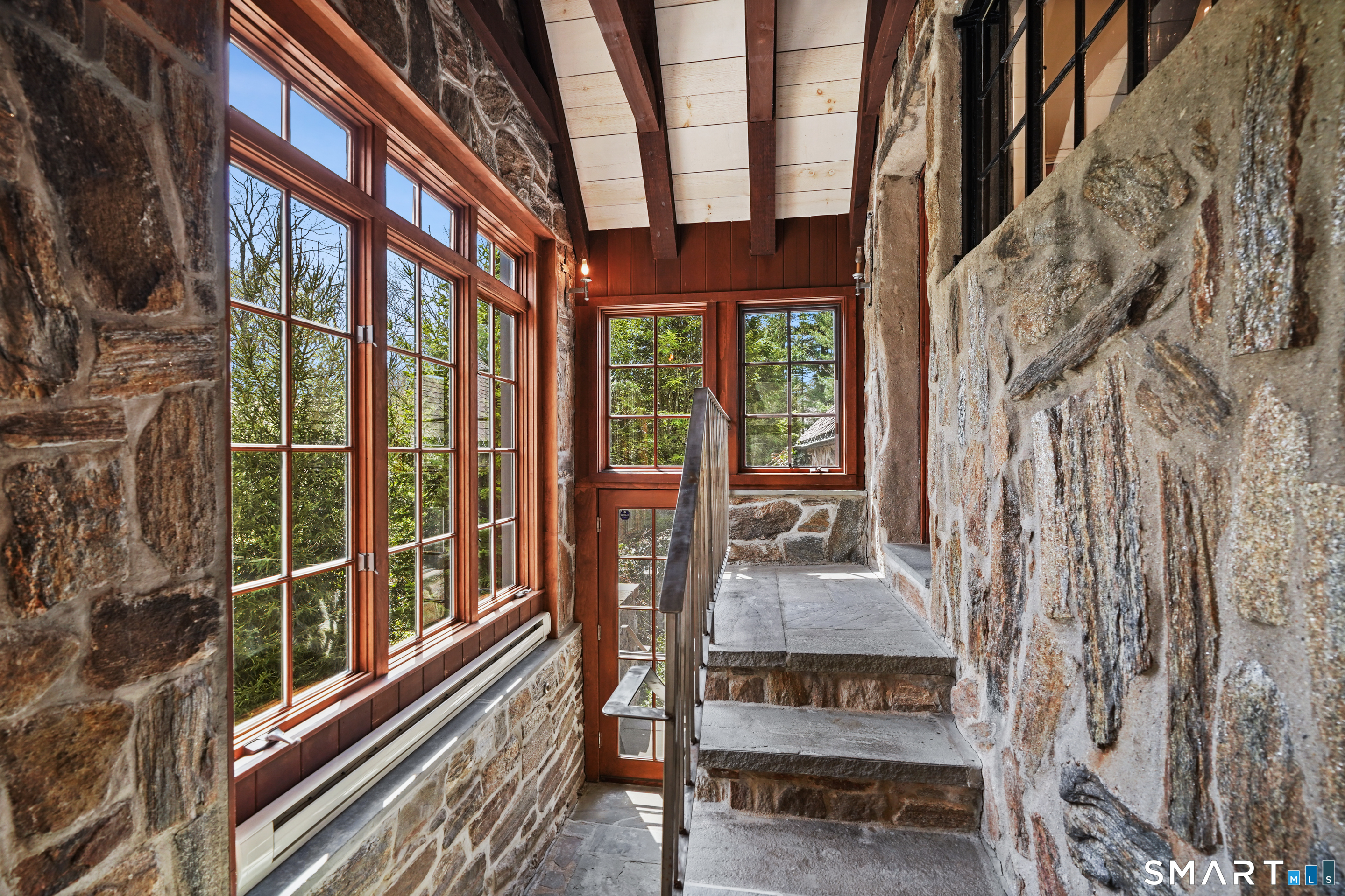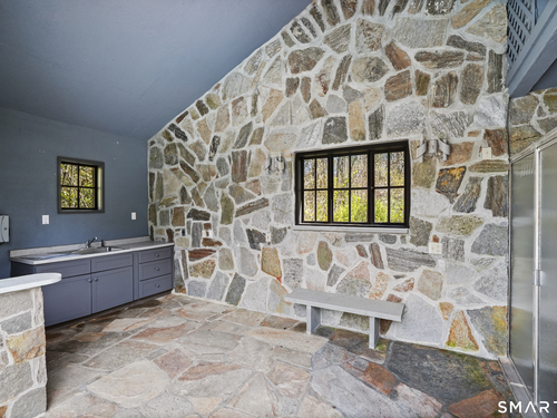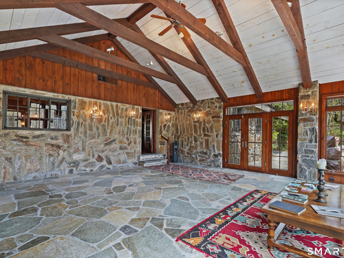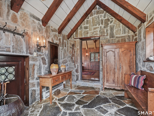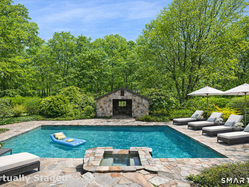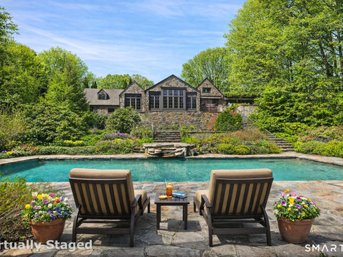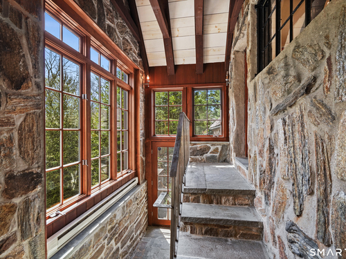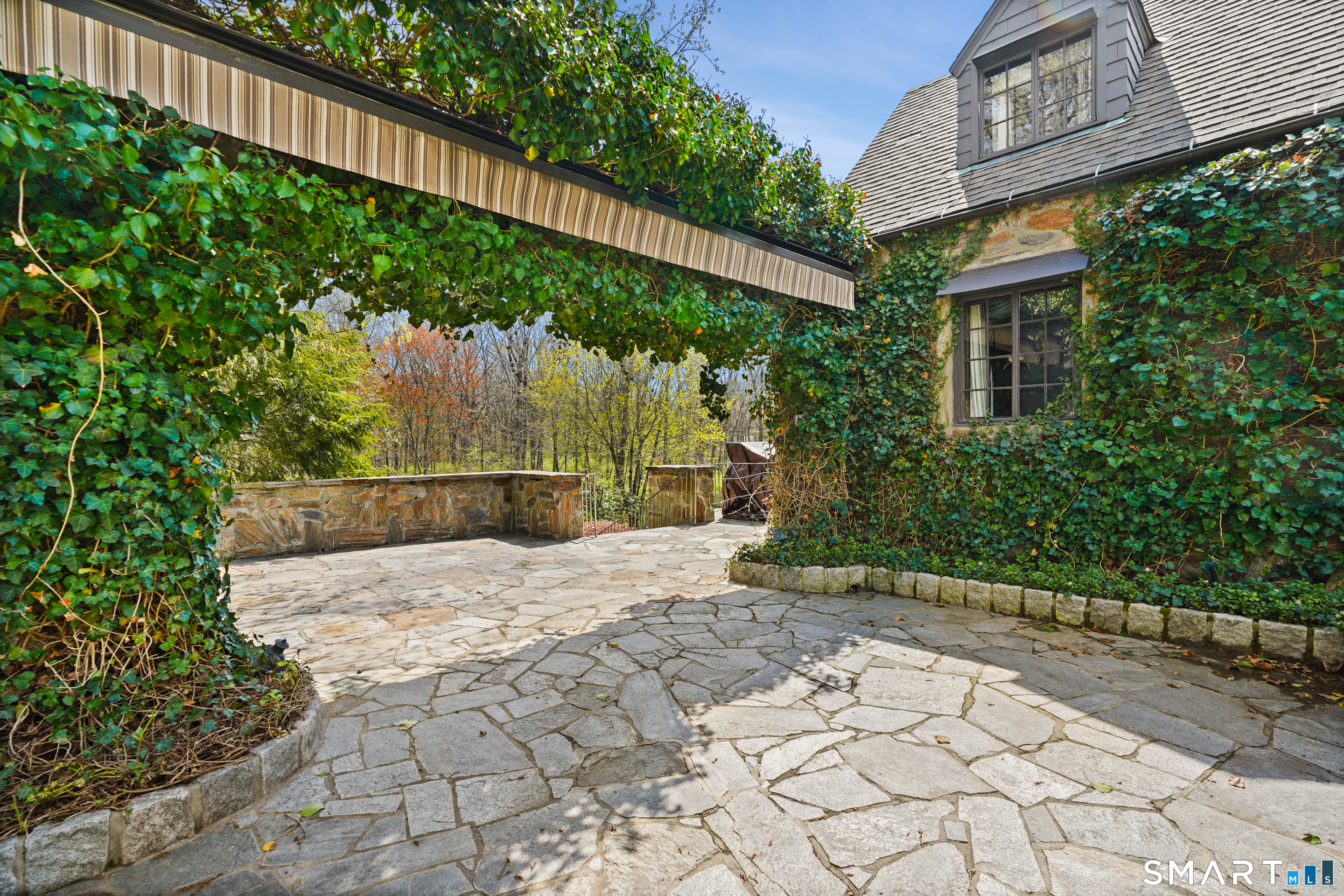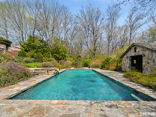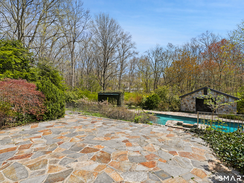 A rare opportunity to own one of Charcoal Hill's signature properties, this exceptional Frazier Peters stone home pairs historic craftsmanship with a level of care and refinement that is increasingly hard to find. Set atop 2.3 +/- gated acres and introduced through a stunning circular drive, the residence showcases Peters' hallmark use of native stone, warm wood tones, and artisan detail, creating a home that feels both enduring and deeply inviting. More recent expansion and remodeling have sensitively enhanced the home. Sunfilled rooms with vaulted ceilings and handhewn finishes offer a balance of scale, with multiple living spaces that transition seamlessly to the outdoors. The grounds unfold in a series of thoughtfully designed moments including lush perennial gardens, winding paths, quiet terraces, and vibrant seasonal color. At the center is a sparkling, oversized pool with a waterfall spa and a fully outfitted stone pool house, which is an ideal retreat for summer living. A heated 4car stone garage with a finished upper level provides flexible space for a studio, office, or possible guest space. Every corner of the property reveals another place to gather, from sunny patios to shaded areas beneath large awnings, all wrapped in exceptional privacy yet minutes to the energy and amenities of downtown Westport. A home where history, beauty, and modern comfort come together with uncommon harmony.