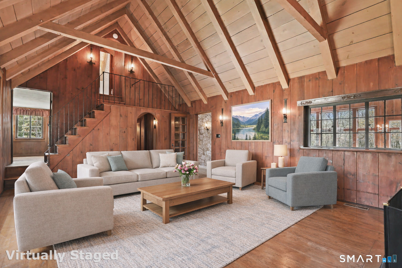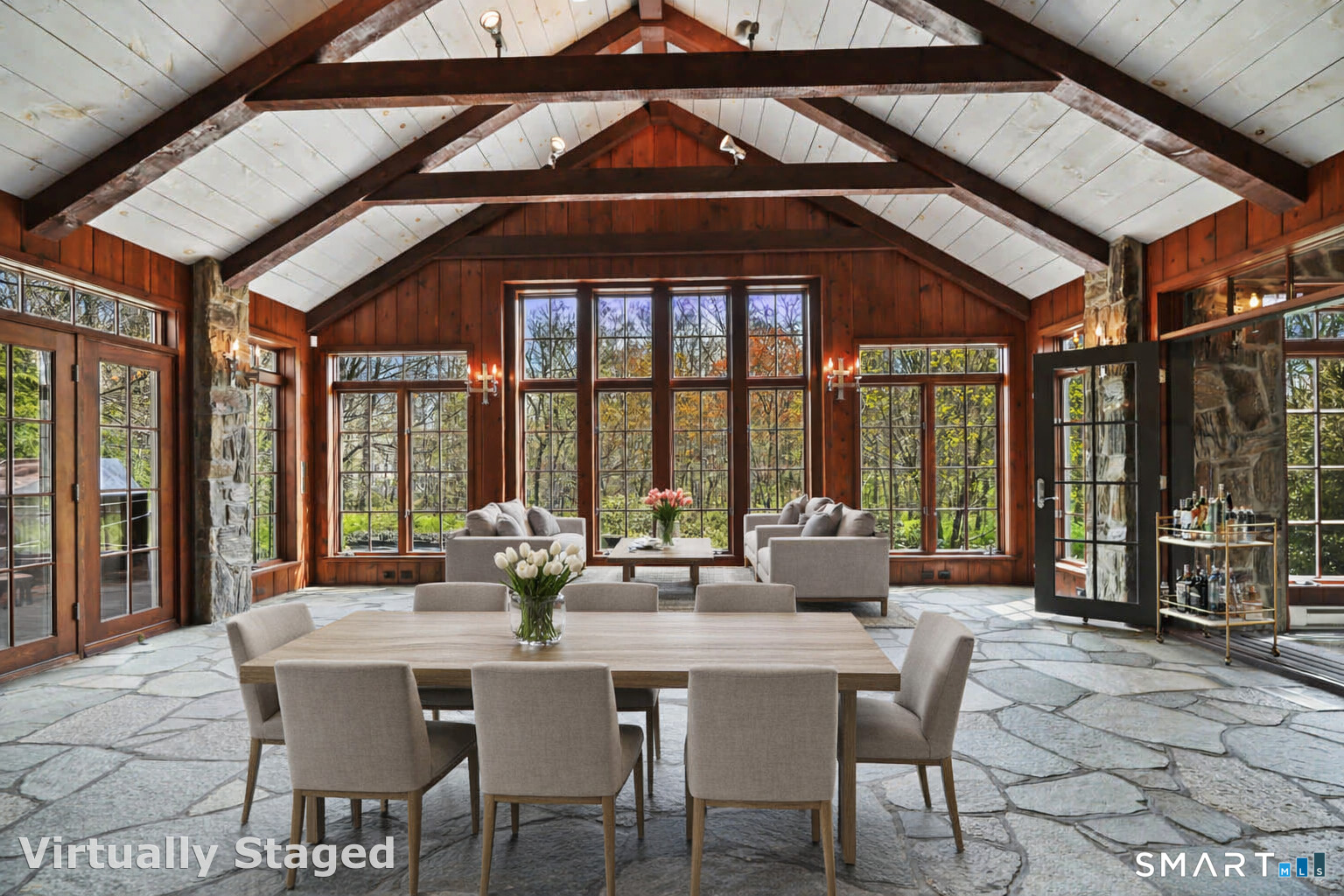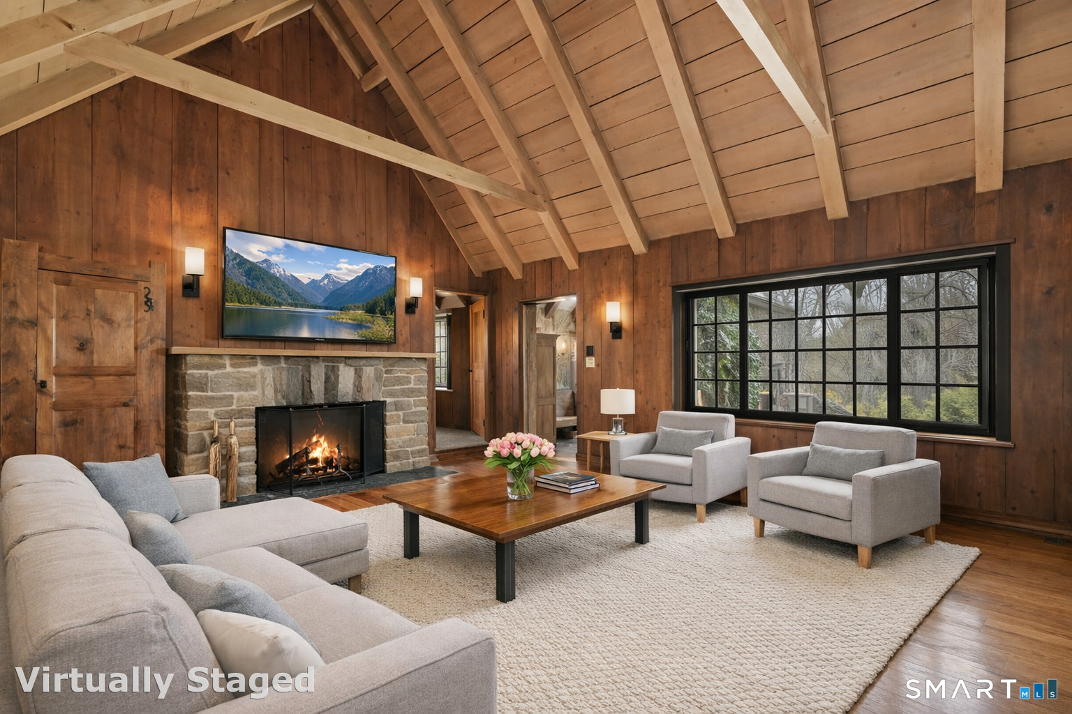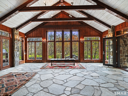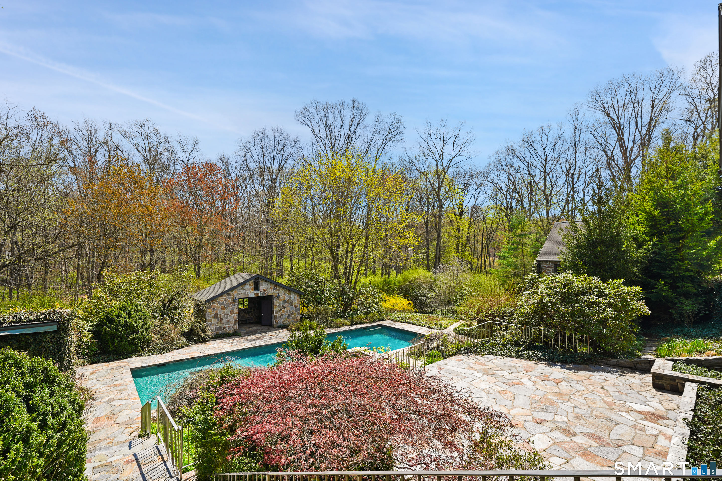 A rare opportunity to own one of Charcoal Hill's signature properties, this exceptional Frazier Peters stone home pairs historic craftsmanship with a level of care and refinement that is increasingly hard to find. Set atop 2.3 +/- gated acres and introduced through a stunning circular drive, the residence showcases Peters' hallmark use of native stone, warm wood tones, and artisan detail, creating a home that feels both enduring and deeply inviting. More recent expansion and remodeling have sensitively enhanced the home. Sunfilled rooms with vaulted ceilings and handhewn finishes offer a balance of scale, with multiple living spaces that transition seamlessly to the outdoors. The grounds unfold in a series of thoughtfully designed moments including lush perennial gardens, winding paths, quiet terraces, and vibrant seasonal color. At the center is a sparkling, oversized pool with a waterfall spa and a fully outfitted stone pool house, which is an ideal retreat for summer living. A heated 4car stone garage with a finished upper level provides flexible space for a studio, office, or possible guest space. Every corner of the property reveals another place to gather, from sunny patios to shaded areas beneath large awnings, all wrapped in exceptional privacy yet minutes to the energy and amenities of downtown Westport. A home where history, beauty, and modern comfort come together with uncommon harmony.