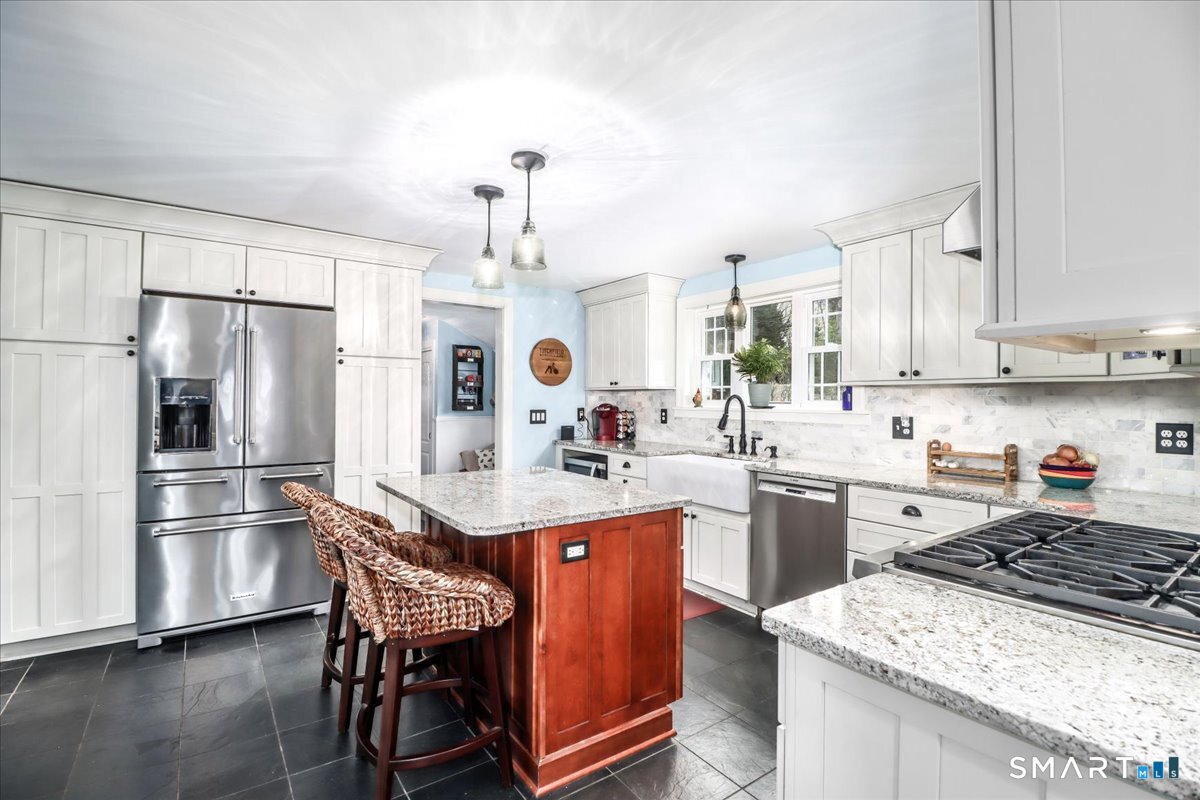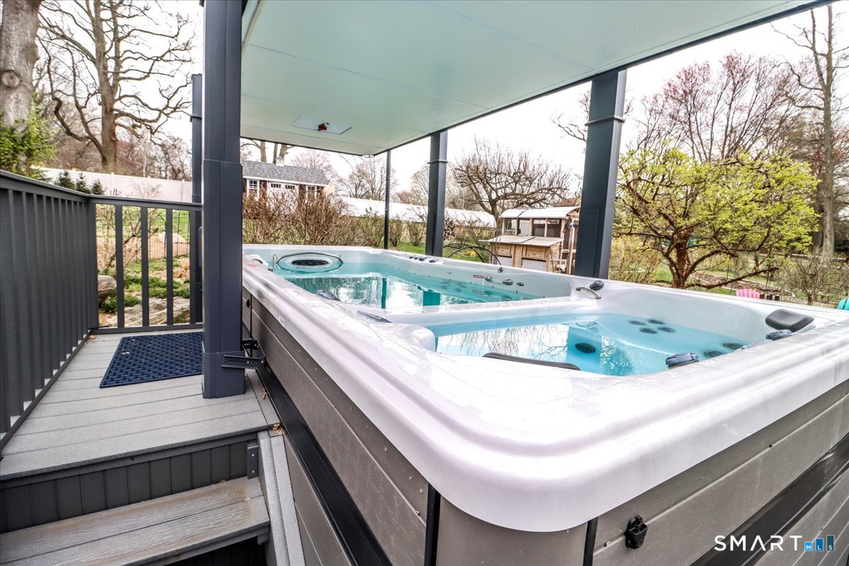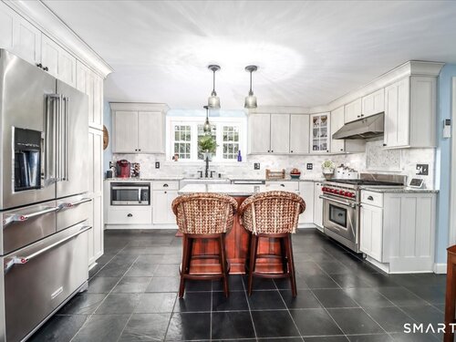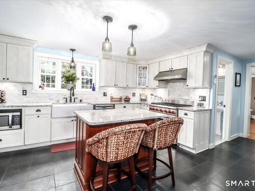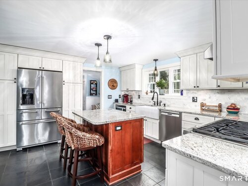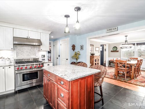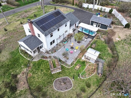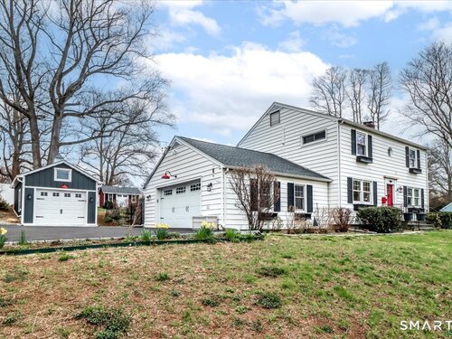 Set on expansive 1 acre lot in a desirable West Rocks/Cranbury neighborhood, this beautifully updated 4-bedroom, 2 full bath home offers the perfect blend of space, comfort, and refined living. The main level showcases a welcoming living room with a cozy gas log fireplace, Crown lighting and hardwood floor, a spacious dining room, and a stunning remodeled kitchen featuring granite countertops, center island, an abundance of white cabinetry and top-of-the-line appliances. The main level includes a fully renovated bath with a modern stall shower and a 3-season sunroom with stone flooring and large windows creating the perfect space to enjoy your morning coffee, read a book, or enjoy nature. Upstairs you will discover, four generously sized bedrooms, a beautifully updated full bath with tub and a convenient laundry area. The semi-finished lower level offers space for recreation or use your imagination! Designed for both comfort and efficiency, the home features central AC with newer ductless mini-splits, and the fully paid solar panels transfer to the new owner, delivering long-term energy savings and added value. Outdoors, you will enjoy a beautifully maintained yard, private hot tub and swim spa, gardening areas and open space across the oversized lot. A 2-car attached garage plus a newly constructed 1-car detached garage offer ample storage and versatility This home is convenient to shopping, great restaurants, RT15, I-95 and Metro North making it a commuters dream!