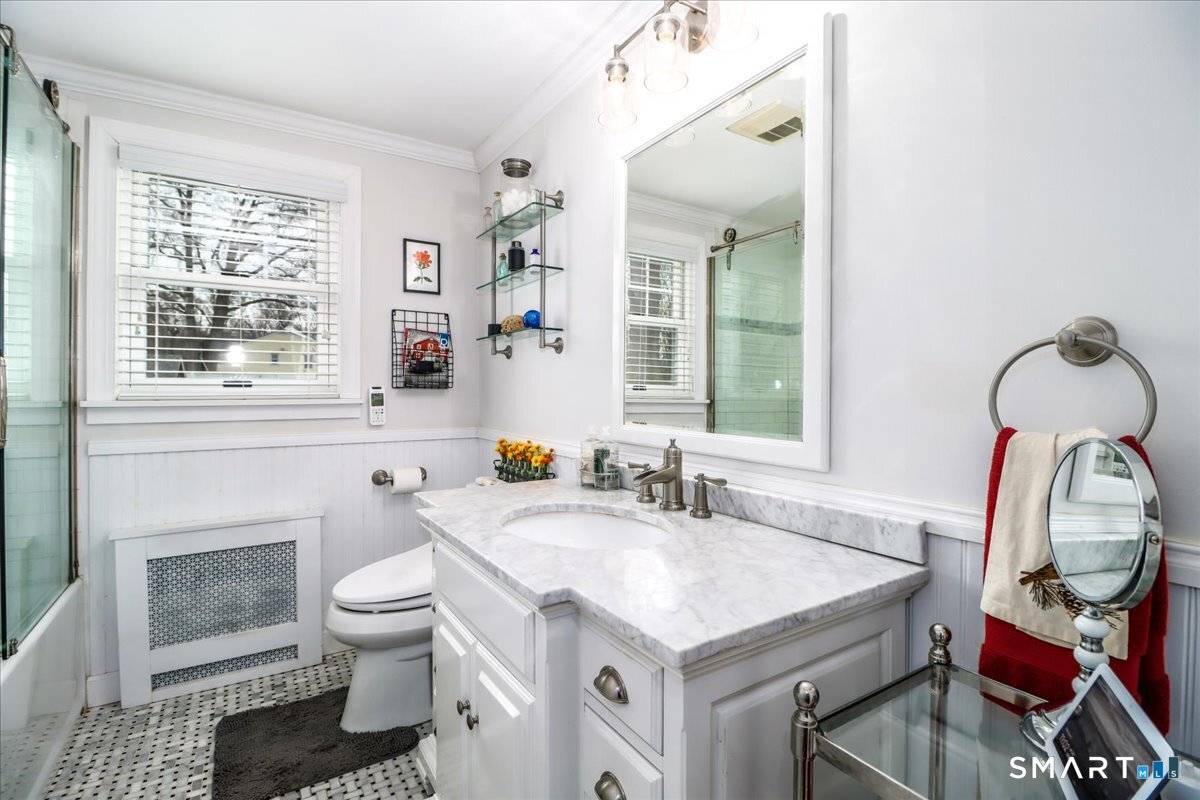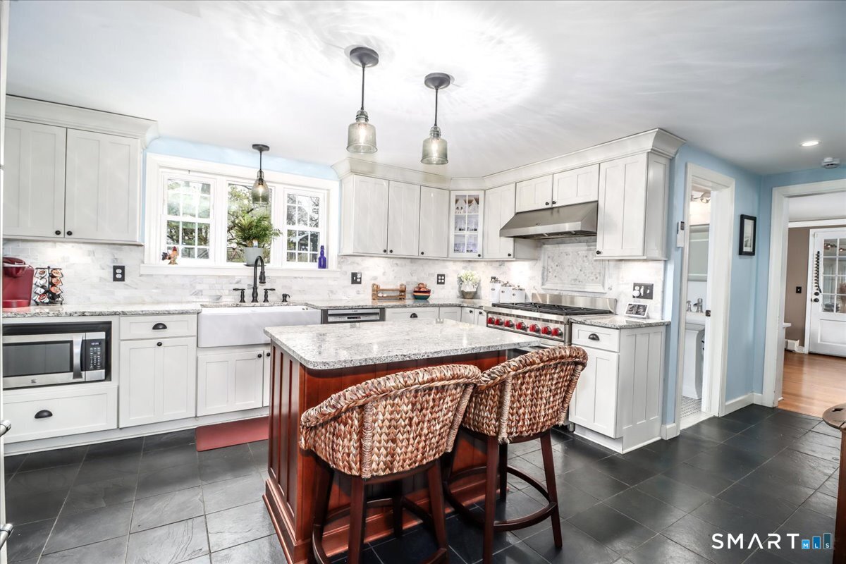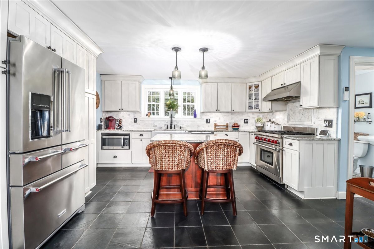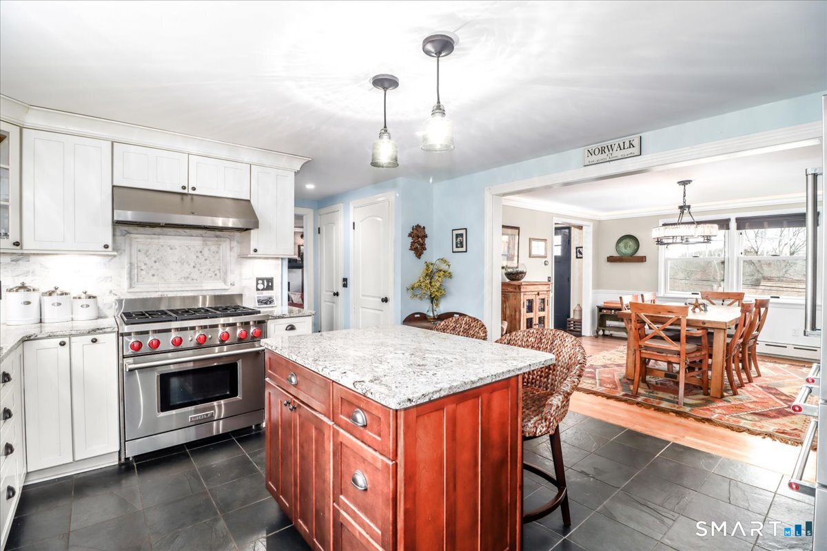 Set on expansive 1 acre lot in a desirable West Rocks/Cranbury neighborhood, this beautifully updated 4-bedroom, 2 full bath home offers the perfect blend of space, comfort, and refined living. The main level showcases a welcoming living room with a cozy gas log fireplace, Crown lighting and hardwood floor, a spacious dining room, and a stunning remodeled kitchen featuring granite countertops, center island, an abundance of white cabinetry and top-of-the-line appliances. The main level includes a fully renovated bath with a modern stall shower and a 3-season sunroom with stone flooring and large windows creating the perfect space to enjoy your morning coffee, read a book, or enjoy nature. Upstairs you will discover, four generously sized bedrooms, a beautifully updated full bath with tub and a convenient laundry area. The semi-finished lower level offers space for recreation or use your imagination! Designed for both comfort and efficiency, the home features central AC with newer ductless mini-splits, and the fully paid solar panels transfer to the new owner, delivering long-term energy savings and added value. Outdoors, you will enjoy a beautifully maintained yard, private hot tub and swim spa, gardening areas and open space across the oversized lot. A 2-car attached garage plus a newly constructed 1-car detached garage offer ample storage and versatility This home is convenient to shopping, great restaurants, RT15, I-95 and Metro North making it a commuters dream!