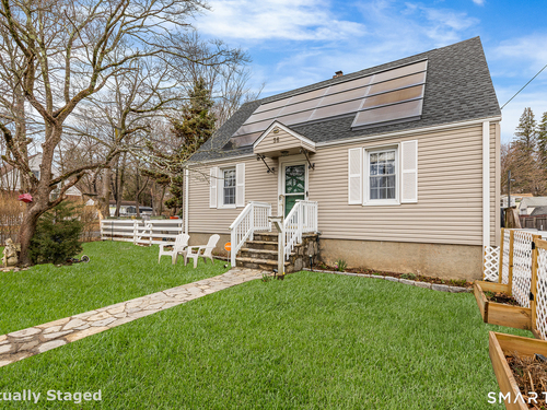 This move in ready Cape offers a versatile layout with a spacious living room, kitchen, dining room, bedroom and full bath on the main level with two additional bedrooms on the 2nd floor. The finished lower level expands your living space with a spacious family room featuring cherry Pergo flooring, a full bath, and a flexible room ideal for a home office, guest suite, or potential in-law setup. This home is highlighted by hardwood floors, energy efficient solar panels, and central air for year-round comfort. Set on a beautiful corner lot, the fully fenced yard provides privacy and room to enjoy outdoor living. Conveniently located close to shopping, dining, and major routes, this home blends comfort, functionality, and location. Recent Updates include: NEW Central Air Condenser & Furnace Systems (2025), New Roof w/ Solar Panels (2021), Updated 1st floor Bathroom (2024), and recently updated kitchen, as well.