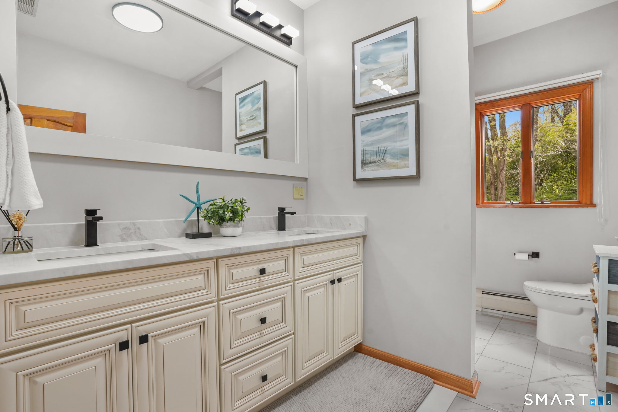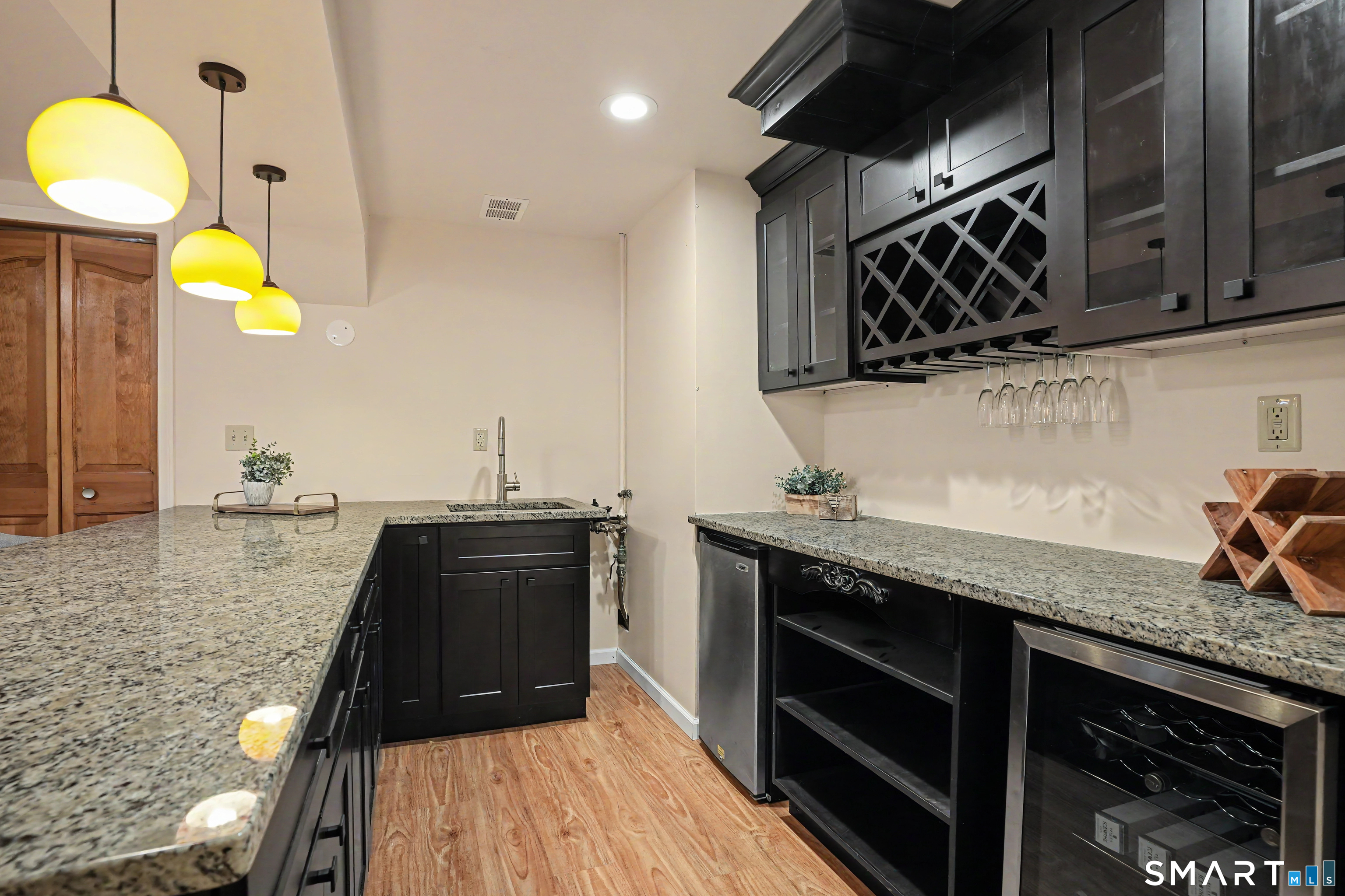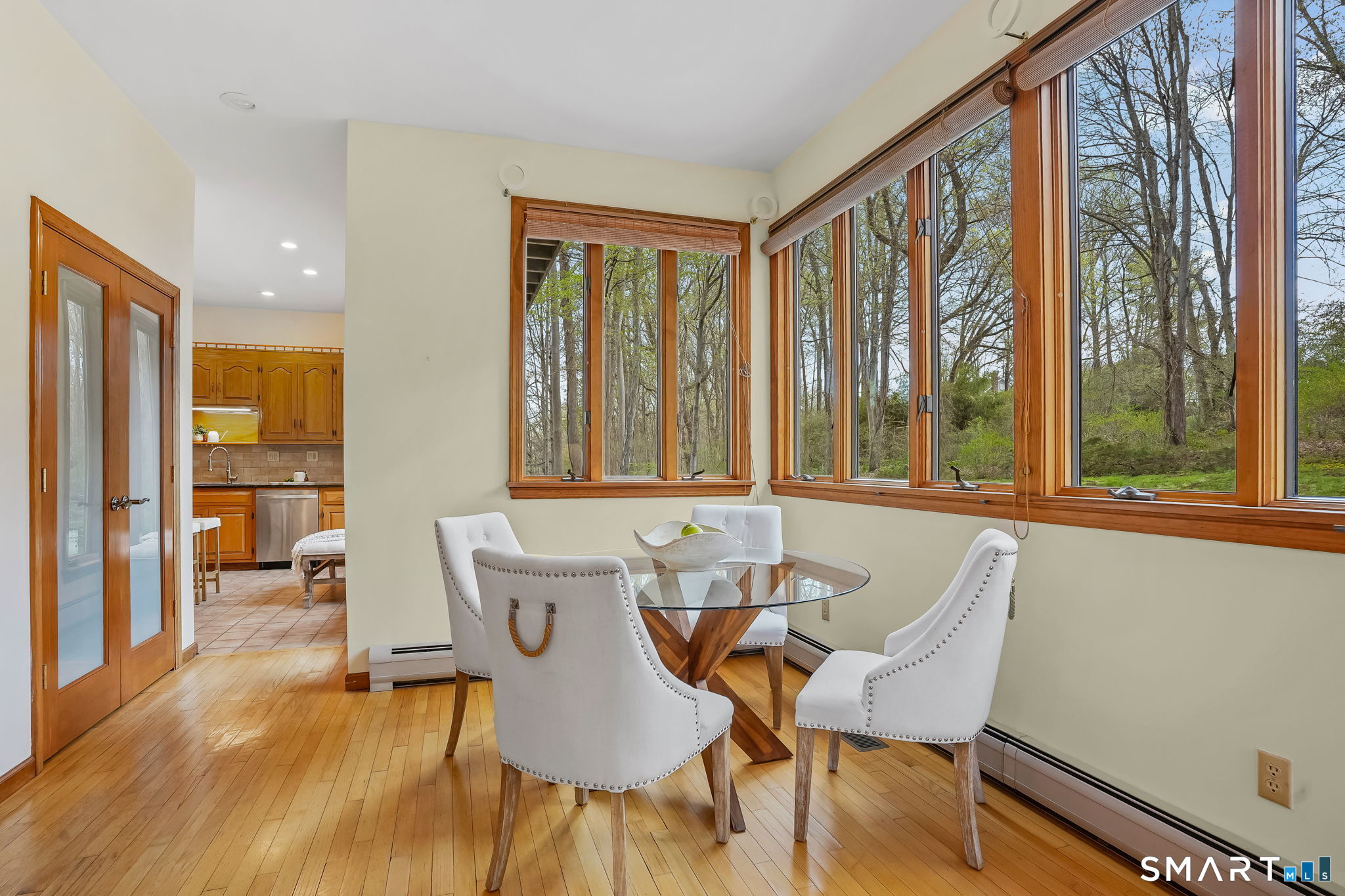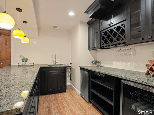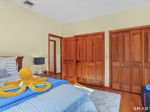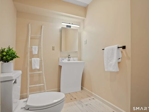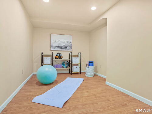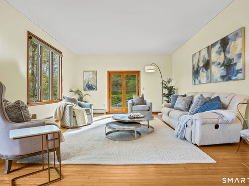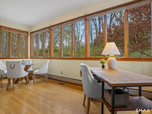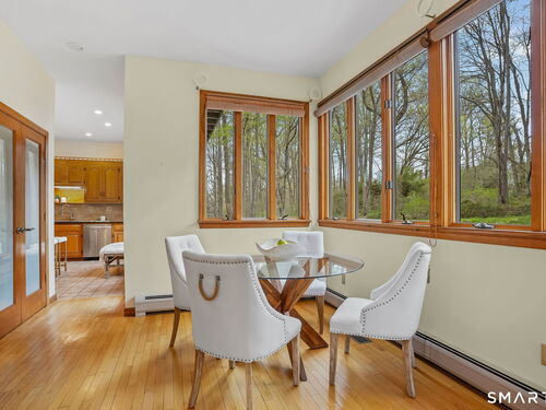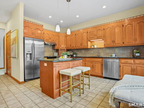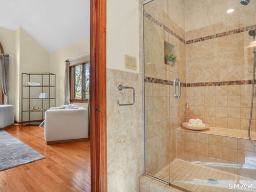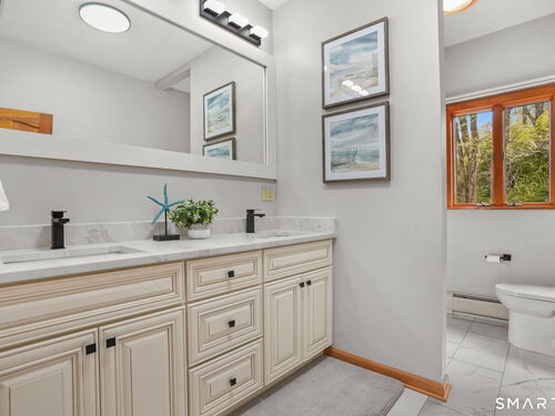 Set gracefully back from the road on an oversized 2.17 acre lot, this pristine 4-bedroom colonial offers tons of privacy and tranquility while being in an excellent commuting location. The freshly painted Mediterranean-inspired facade greets you with a timeless sense of warmth and welcome. Inside, 9 foot ceilings on the main and 2nd levels create an airy, open feel while sun-drenched rooms and gleaming hardwood floors highlight the home's impeccable condition and thoughtful design. The main level boasts an expansive front to back living room with sliders to the elegant back yard, spacious dining room with Palladian windows, inviting family room with stone fireplace, eat-in kitchen overlooking the beautiful back paver patio, and half bath. Retreat upstairs to the fabulous primary suite with vaulted ceiling, huge walk-in closet, and spa bath with door to outdoor balcony. 3 more good sized bedrooms share recently updated full bath - and 2 of the bedrooms have their own balcony. The upstairs landing, also with balcony access, is a flexible space that makes a great office or kids area. The sprawling finished basement with half bath, wet bar, and pantry offers tons of possibilities as well. The 3 car garage and ample storage is icing on the cake. All this just minutes from the Merritt, metro-north, shopping, restaurants, hiking trails, farm stands, and pickleball courts.