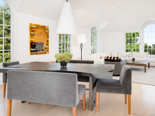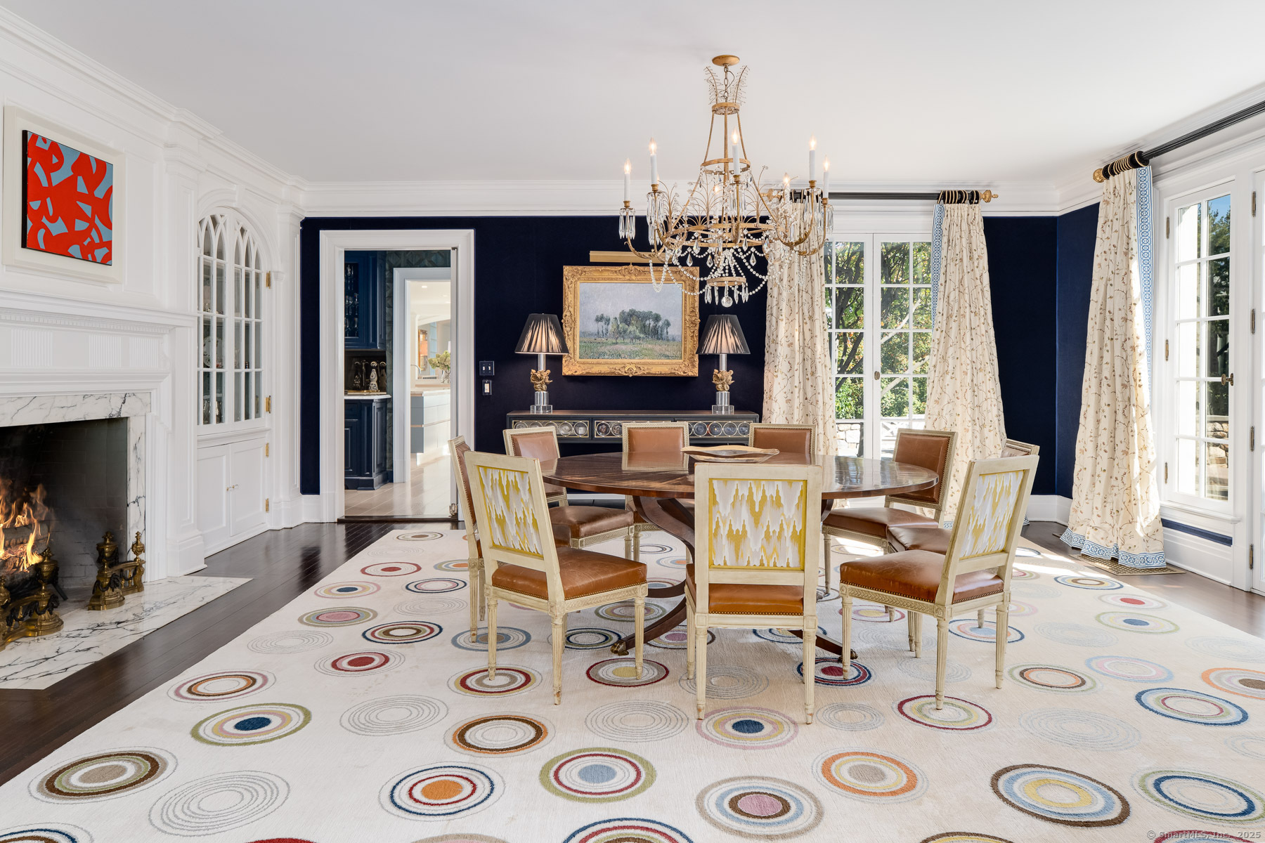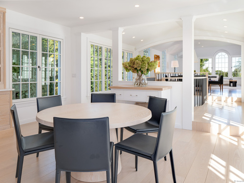 Palladian Window(s), Dining Area, Fireplace, Hardwood Floor