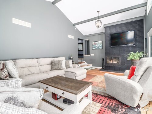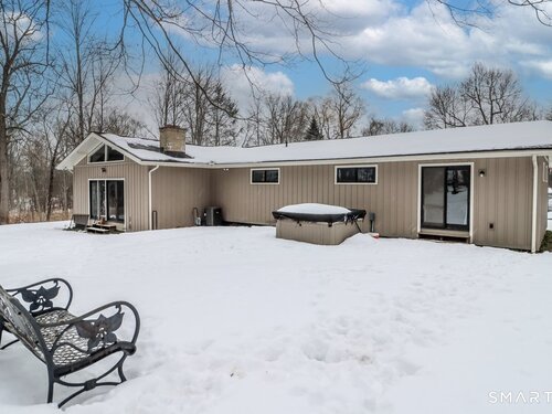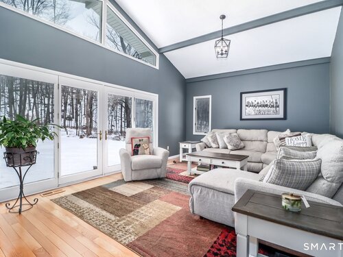 Welcome home, to this beautiful, bright and sprawling Ranch!! Just one hour to the city, conveniently located near anything you could ever need, yet nestled quietly in a peaceful neighborhood. 1.2 acres surrounded by woods, for easy upkeep and privacy. Plenty of entertaining space inside and out. Kitchen with skylight, granite counters, stainless appliances and tile flooring. Hardwood floors throughout. Step down vaulted family room with fireplace and French doors out to the backyard. Oversized living room. Primary bedroom with full bath, generous closets and access to the yard. Electric dog fence with collars for your little fur family if you desire. Unfinished basement off the 2 car attached garage that is perfect for your future plans of entertaining and fun. Newer siding and boiler. Central air. Portable generator hookup. This house is well maintained and a true gem!!! Come see for yourself.