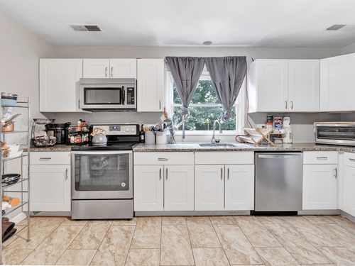 Welcome to 574 Thorme Street! This charming and updated ranch-style home is nestled on a level, partially fenced-in .17-acre lot in the highly sought-after North End. Step inside to find a spacious living room with a cozy wood-burning fireplace and beautiful hardwood floors that flow throughout the main level. The bright, tiled kitchen features white cabinetry, granite countertops, and stainless-steel appliances, with a formal dining room conveniently located just off the kitchen-perfect for everyday meals and entertaining. The main level also offers 2-3 comfortable bedrooms and a full bath. The 3rd bedroom has a vaulted ceiling and is currently being used as an office. Downstairs, the partially finished lower level provides additional living space, a laundry area, and direct access to the one-car attached garage. Cute as a button and move-in ready, this home is waiting for its next owner to make it their own. Conveniently located a hop, skip and a jump from Blackham School a pre-k through 8th grade school, near major highways, shopping, and all that the area has to offer-don't miss this fantastic opportunity!