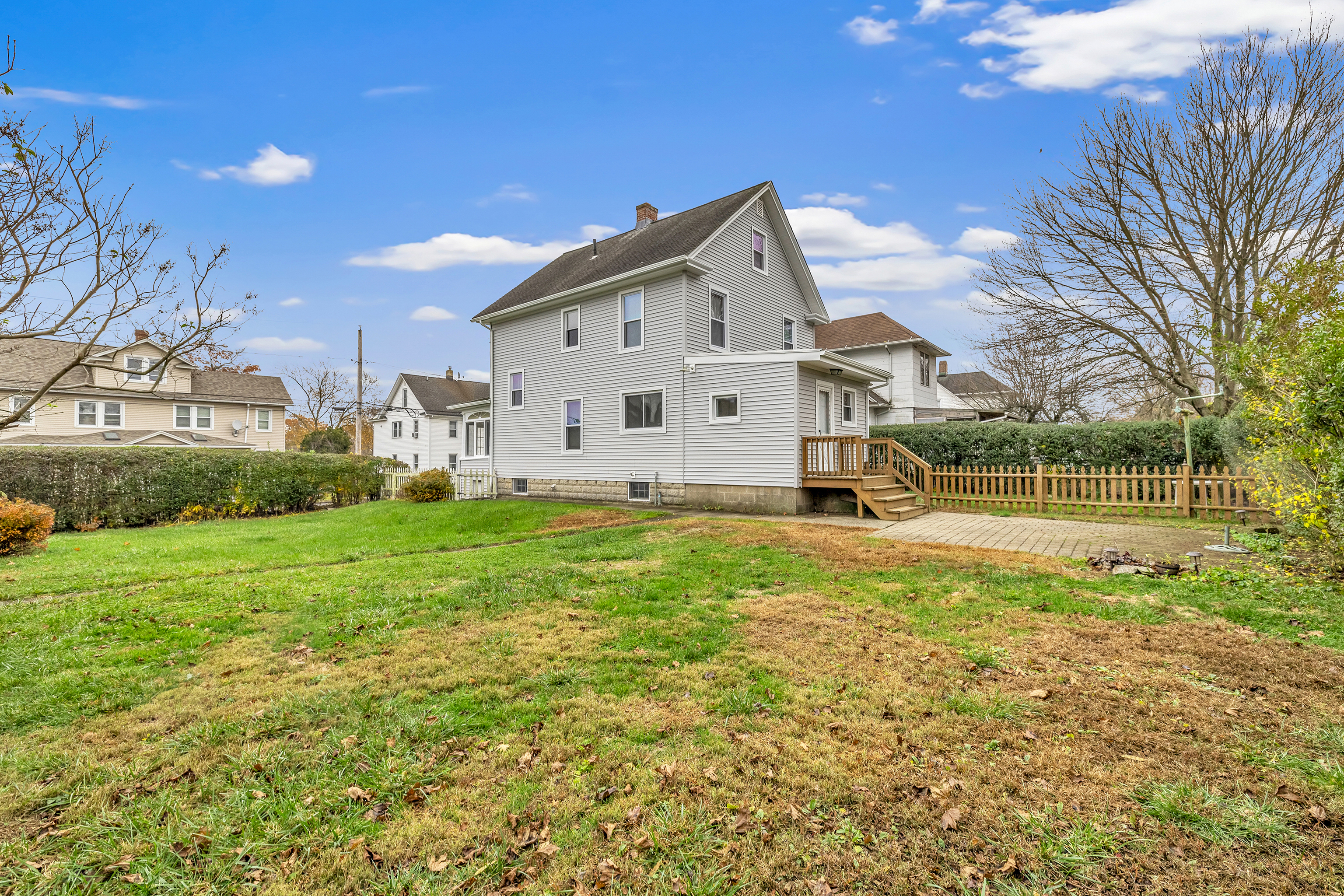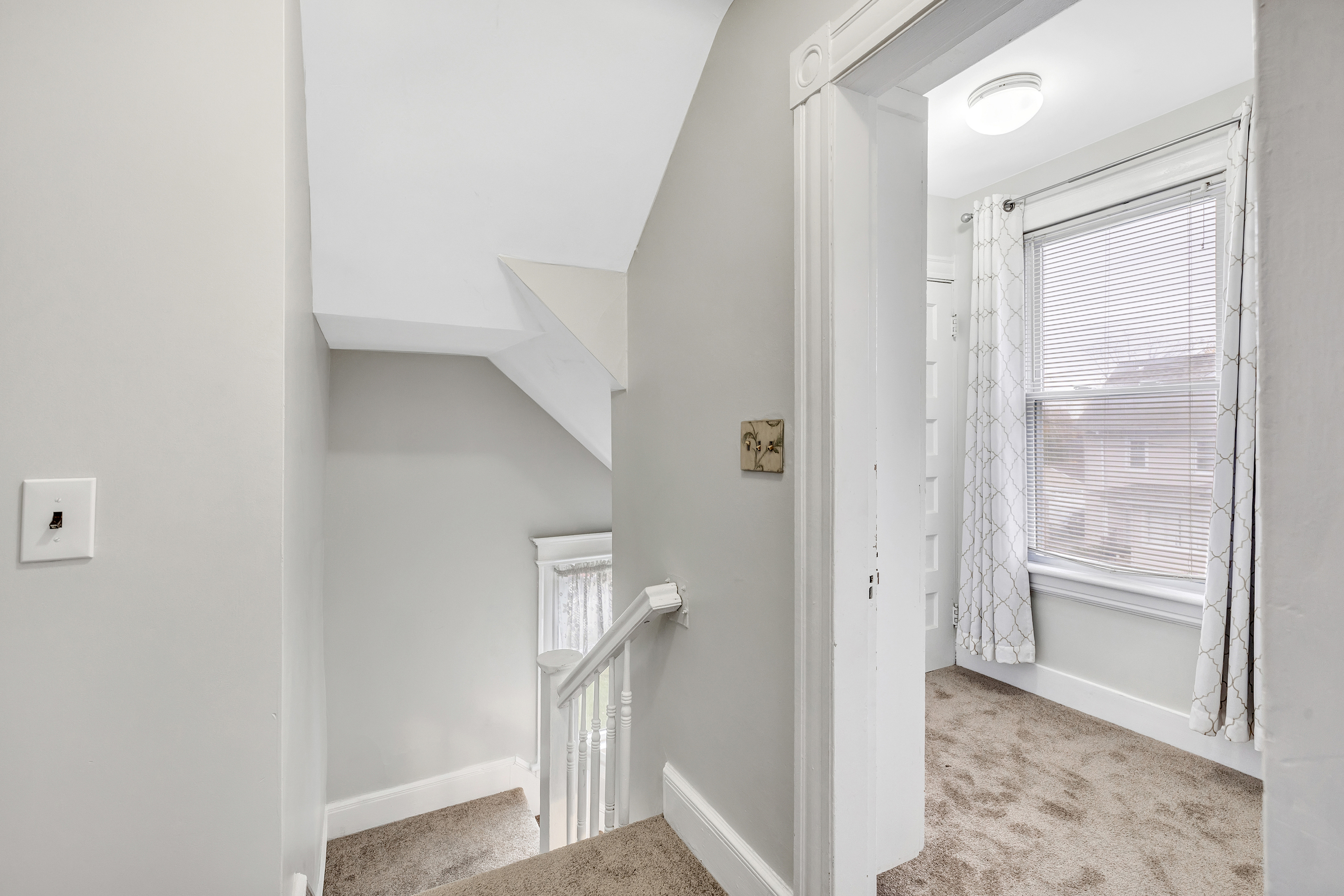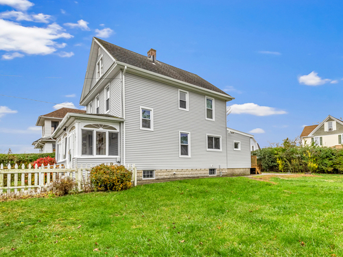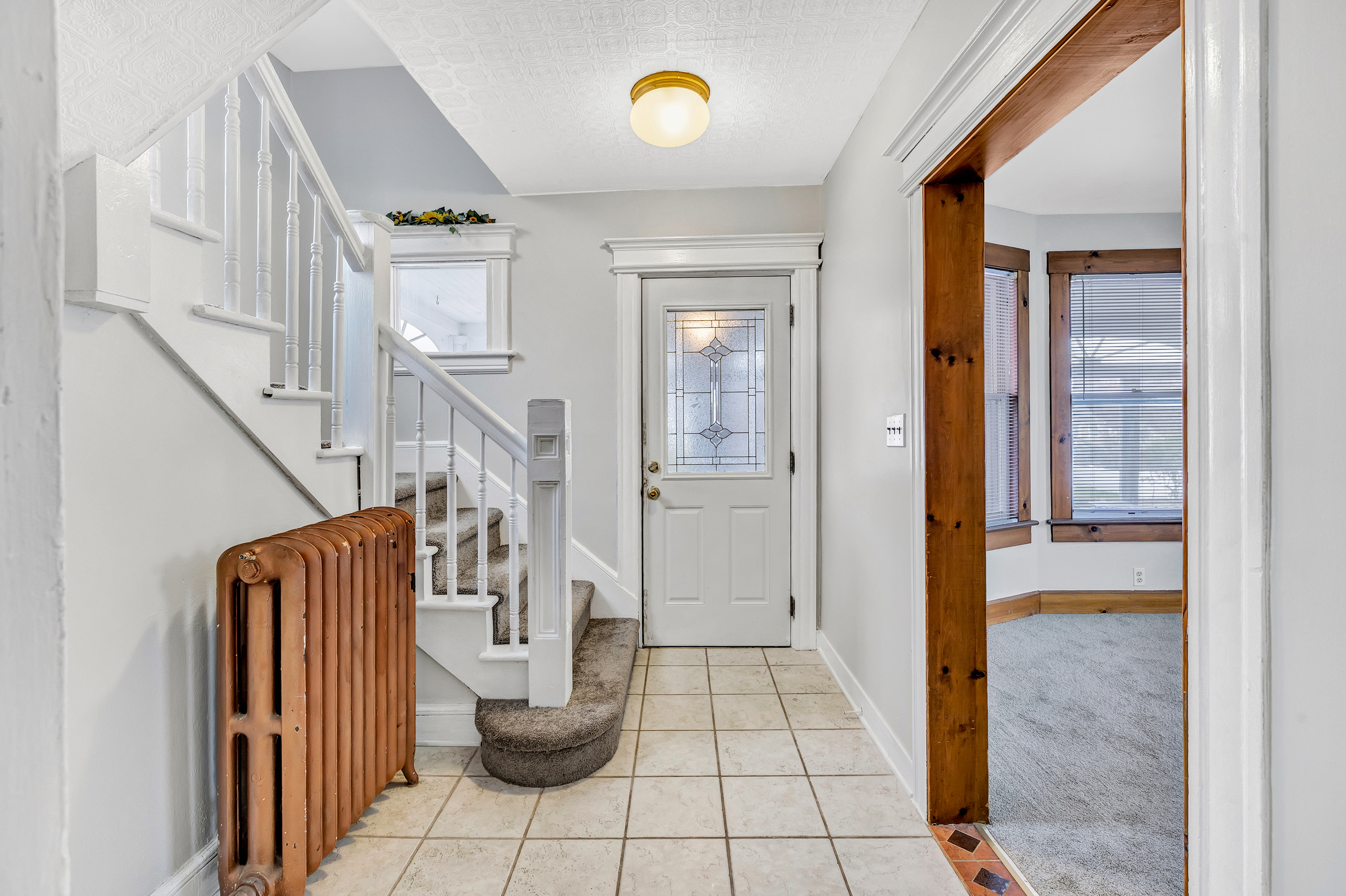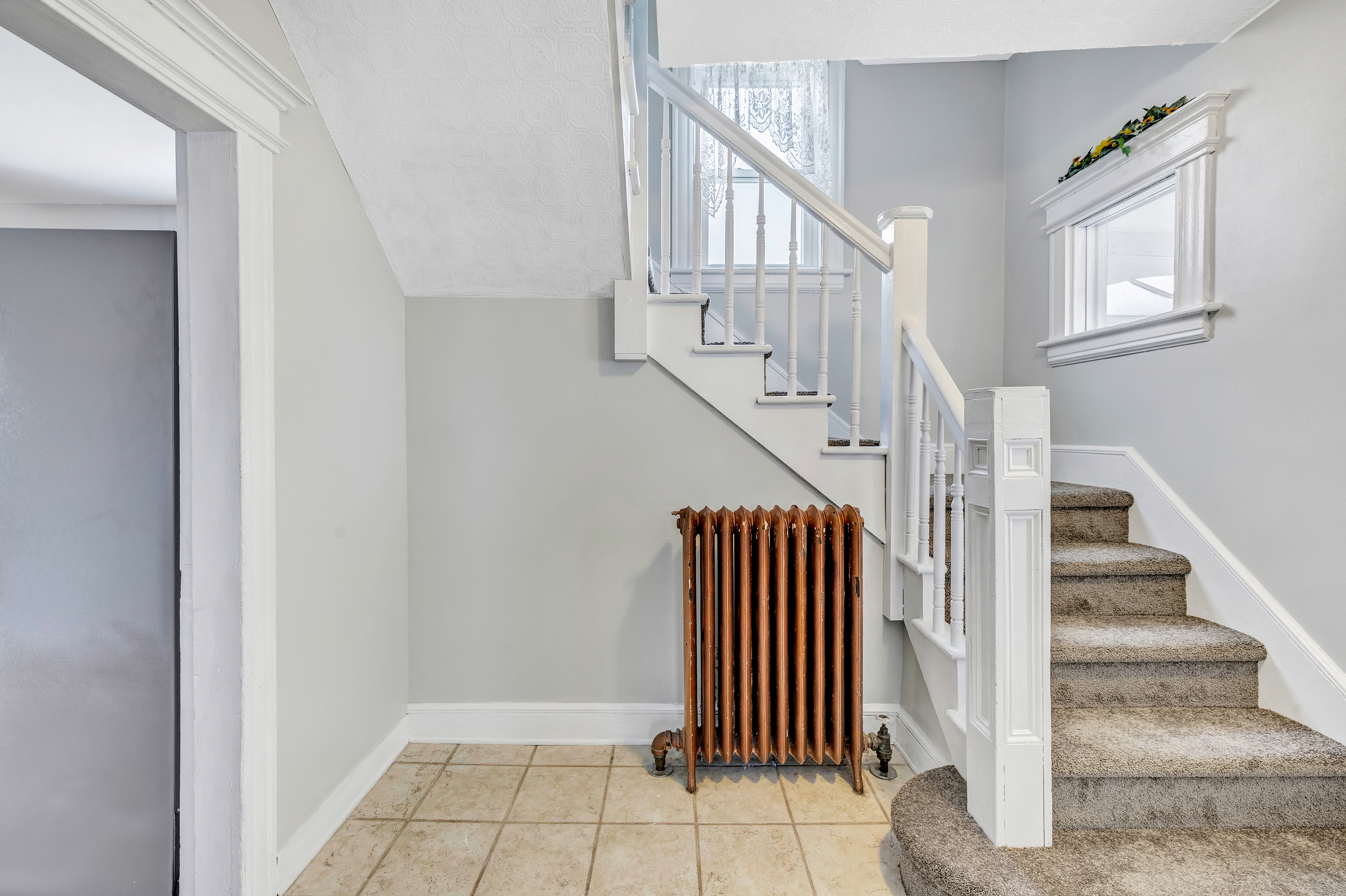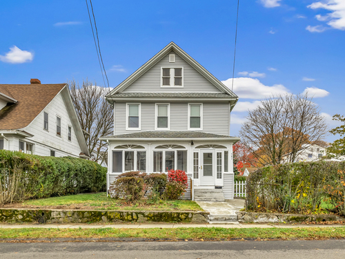 Ideally sited less than a mile from the train and a hop skip and a jump to the schools, this charming home makes life easy! The enclosed front porch is a lovely introduction in to the warm and welcoming entryway that opens into a cozy living room with wall to wall carpet and a bowed wall of windows. The formal dining room is ideal for entertaining with a bowed wall of windows and a ceiling fan. The eat in kitchen is the perfect place for gatherings and leads to a mudroom and a full bathroom on the main level! The 2nd floor has 2 bedrooms and a third flex space perfect for4 a reading nook or yoga space with stairs to a 3rd floor with 2 flex rooms that could serve as bedrooms, office space, craft rooms....your imagination is the only limitation! Brand new natural gas hot water heater. Gas stove. Oil heat.