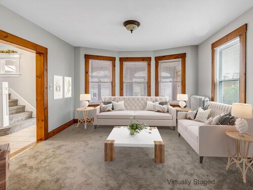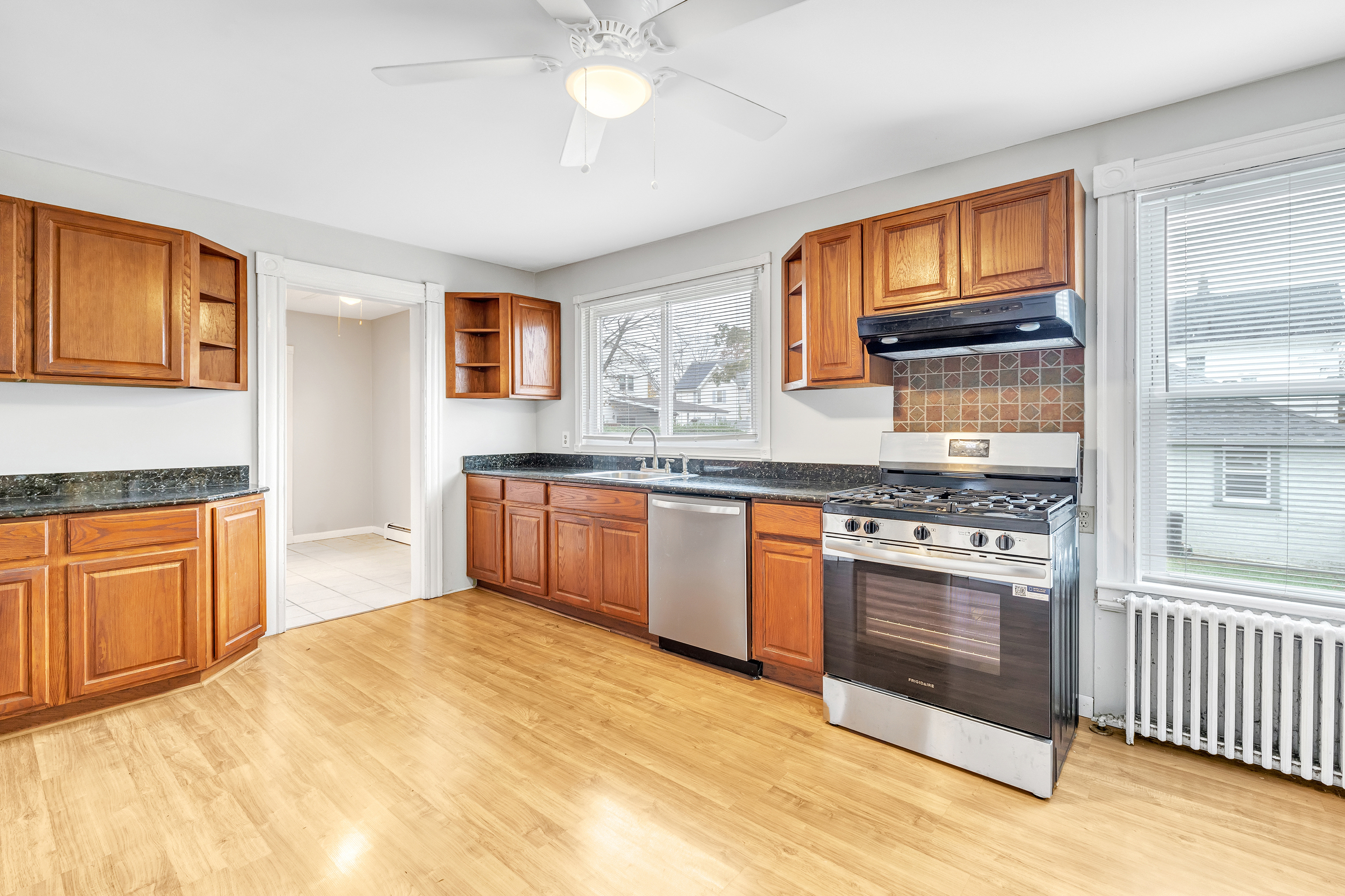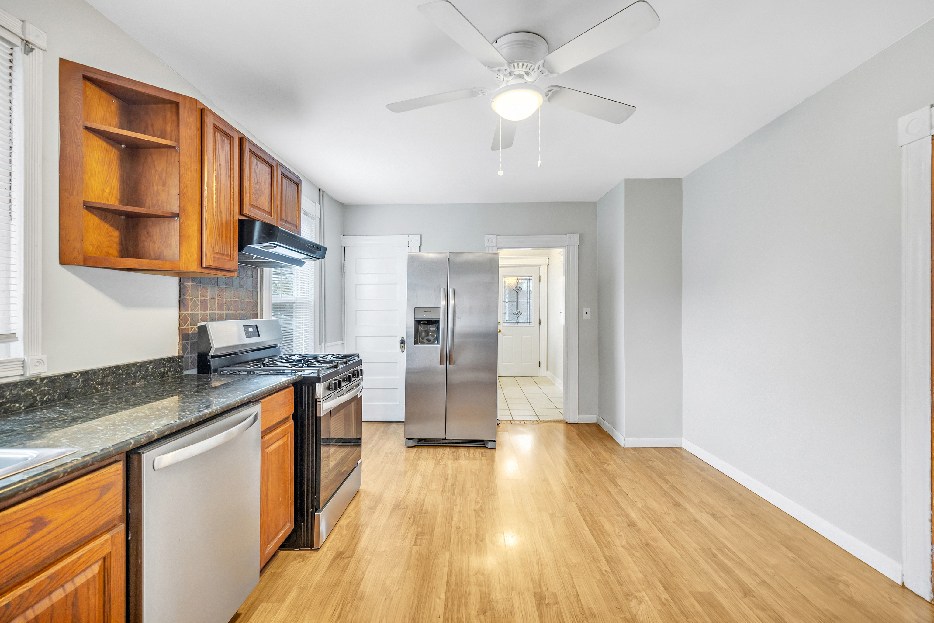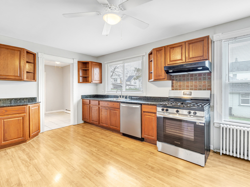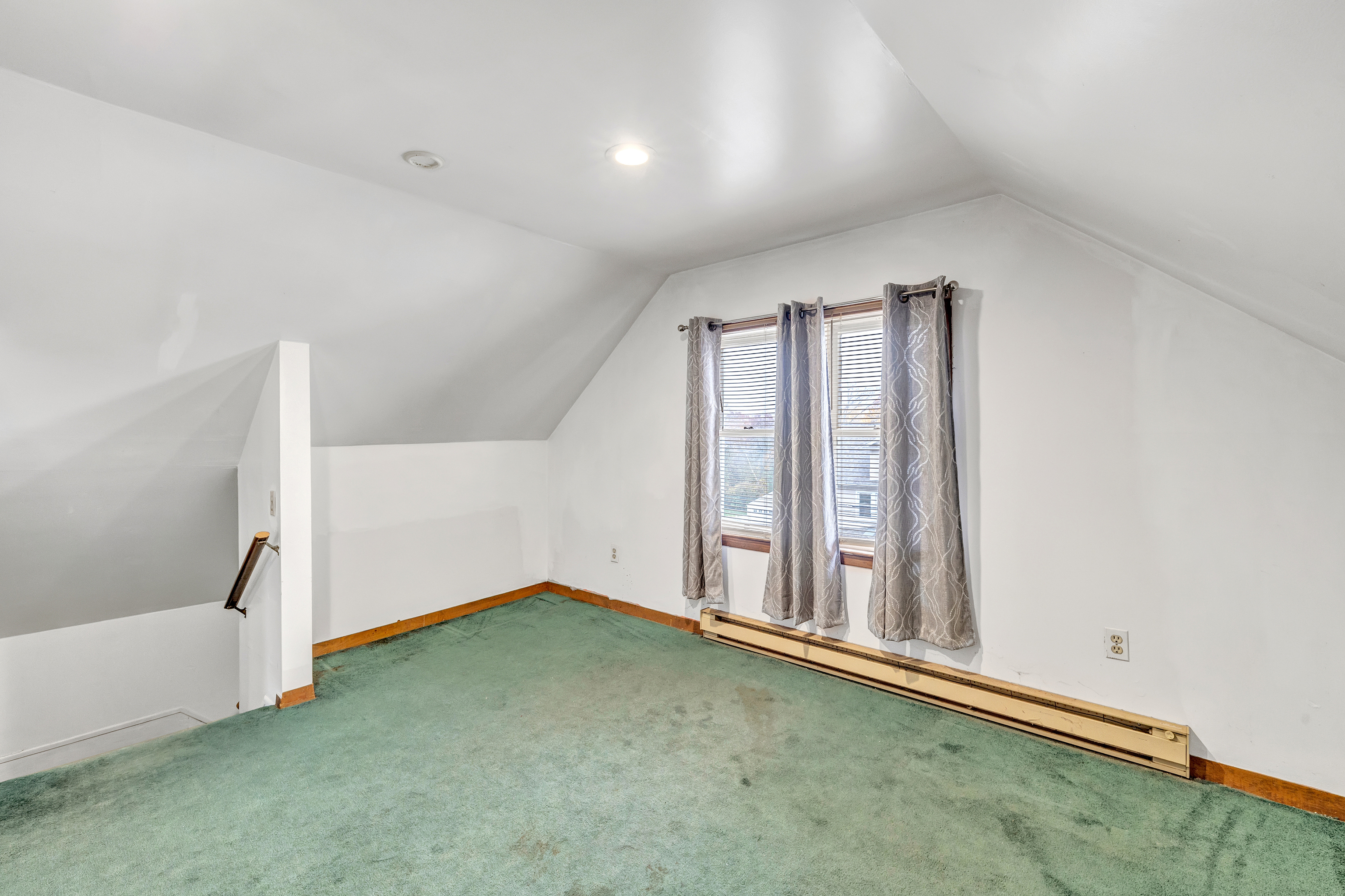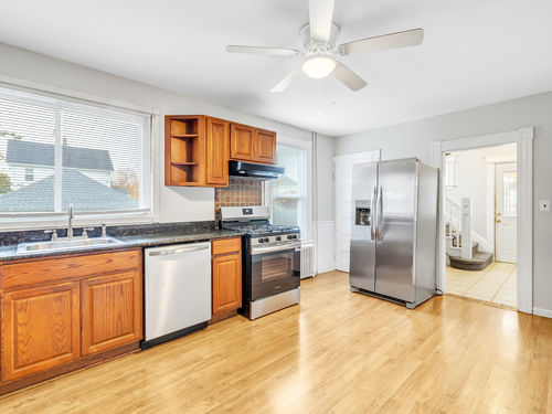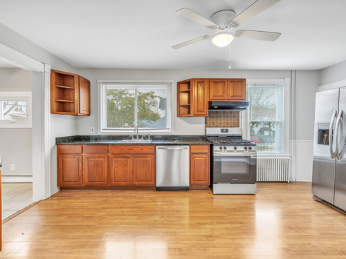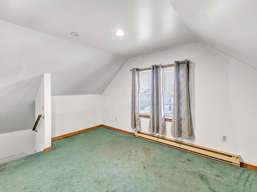 Ideally sited less than a mile from the train and a hop skip and a jump to the schools, this charming home makes life easy! The enclosed front porch is a lovely introduction in to the warm and welcoming entryway that opens into a cozy living room with wall to wall carpet and a bowed wall of windows. The formal dining room is ideal for entertaining with a bowed wall of windows and a ceiling fan. The eat in kitchen is the perfect place for gatherings and leads to a mudroom and a full bathroom on the main level! The 2nd floor has 2 bedrooms and a third flex space perfect for4 a reading nook or yoga space with stairs to a 3rd floor with 2 flex rooms that could serve as bedrooms, office space, craft rooms....your imagination is the only limitation! Brand new natural gas hot water heater. Gas stove. Oil heat.