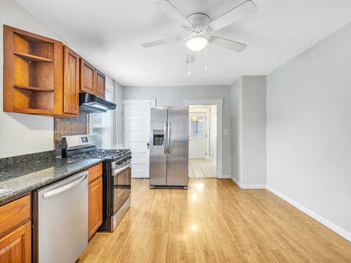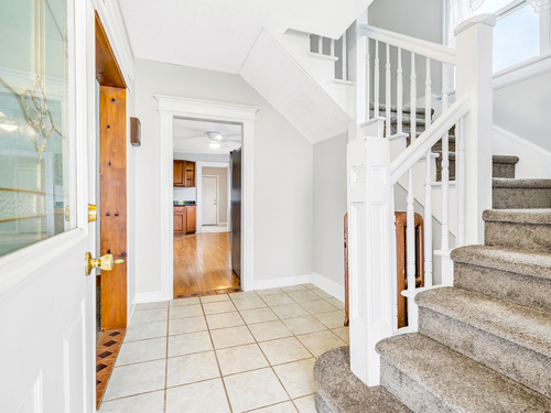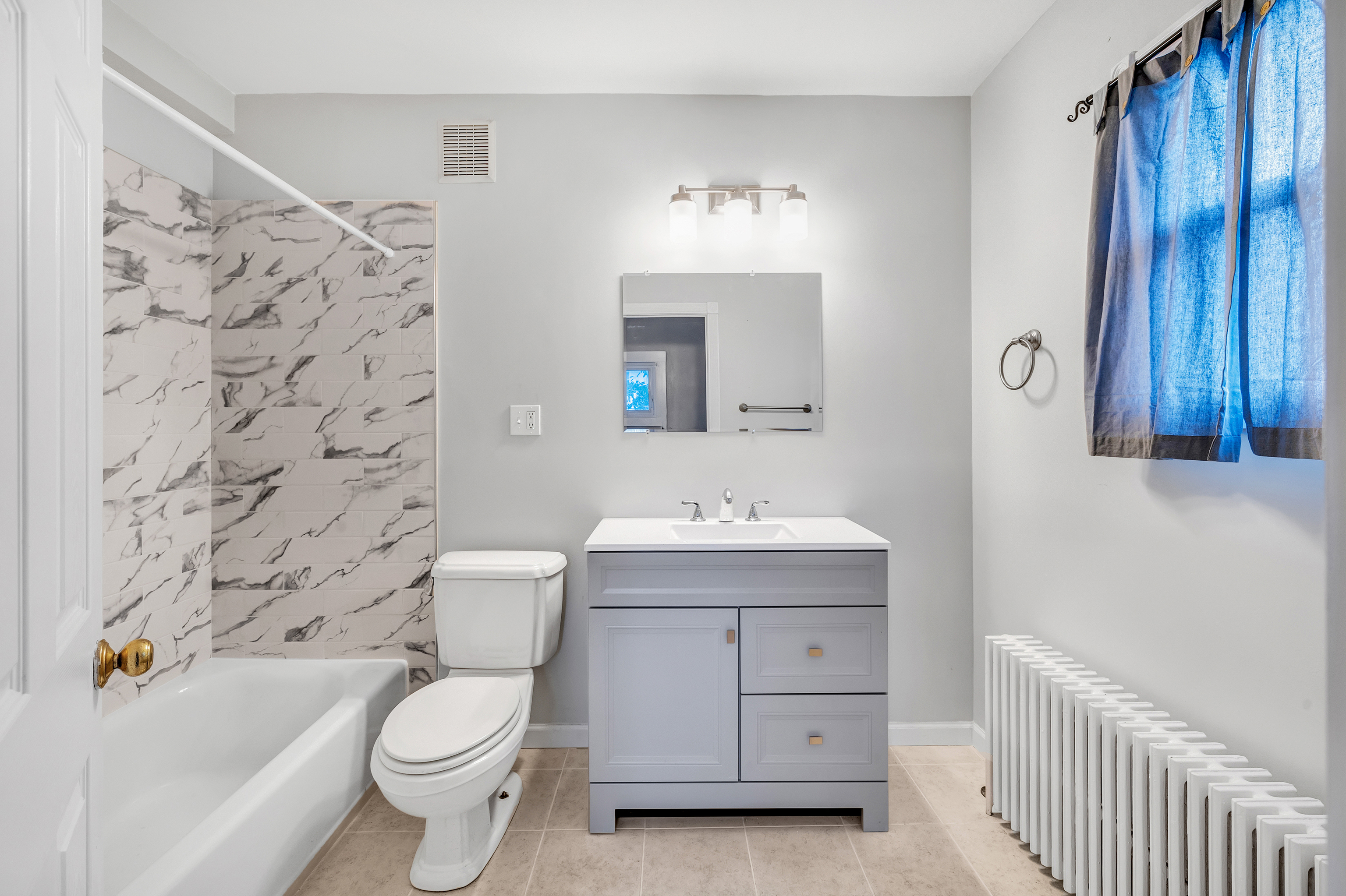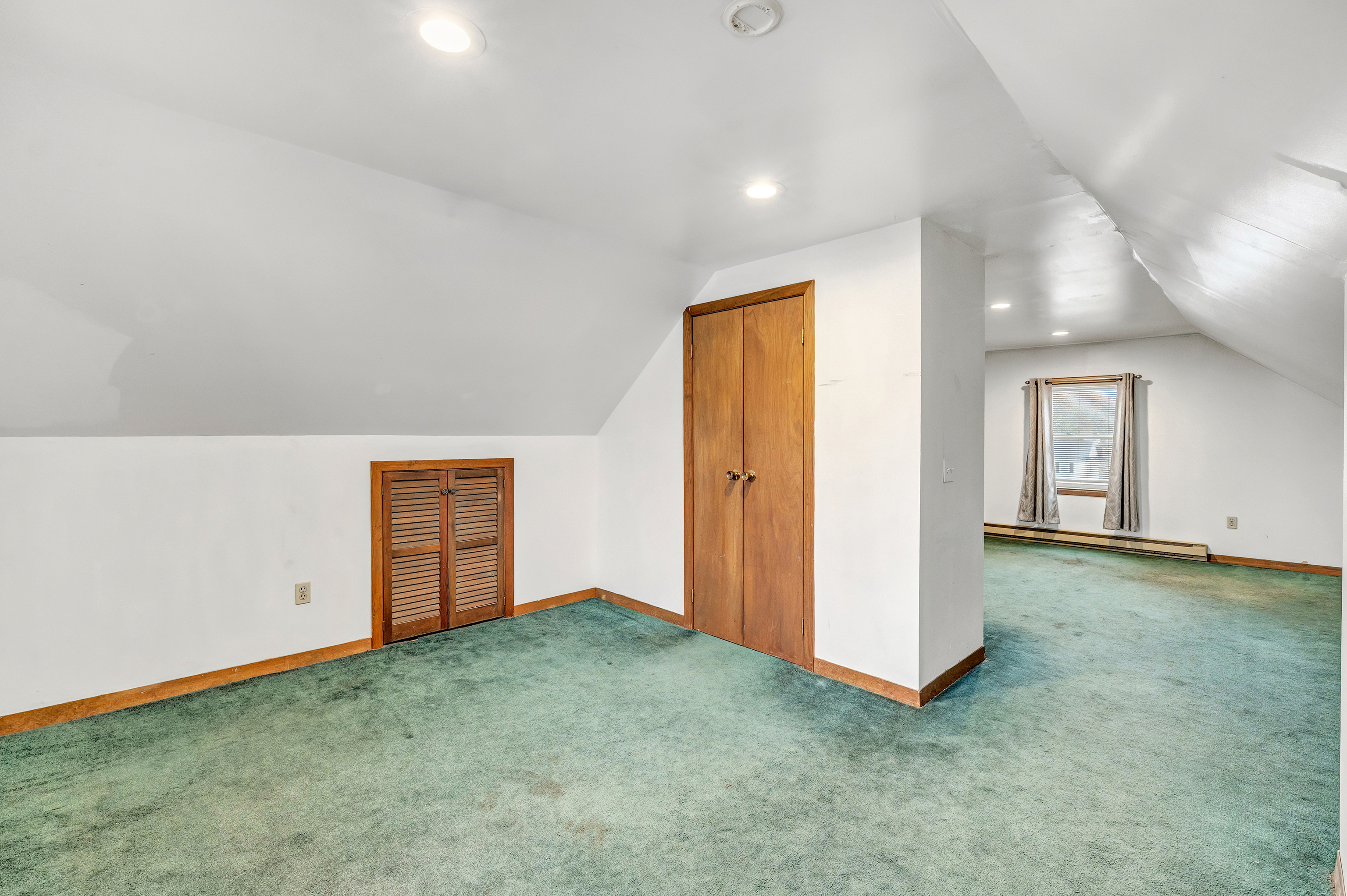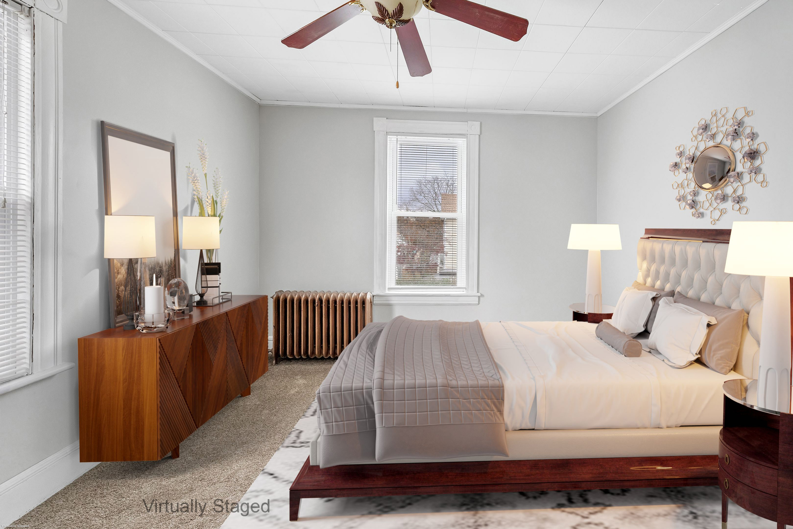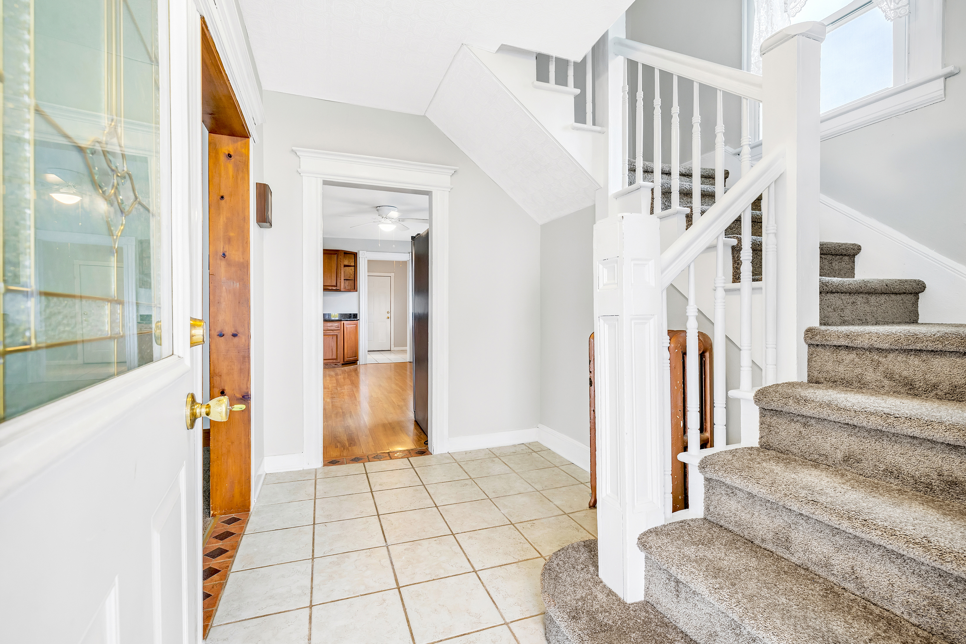 Ideally sited less than a mile from the train and a hop skip and a jump to the schools, this charming home makes life easy! The enclosed front porch is a lovely introduction in to the warm and welcoming entryway that opens into a cozy living room with wall to wall carpet and a bowed wall of windows. The formal dining room is ideal for entertaining with a bowed wall of windows and a ceiling fan. The eat in kitchen is the perfect place for gatherings and leads to a mudroom and a full bathroom on the main level! The 2nd floor has 2 bedrooms and a third flex space perfect for4 a reading nook or yoga space with stairs to a 3rd floor with 2 flex rooms that could serve as bedrooms, office space, craft rooms....your imagination is the only limitation! Brand new natural gas hot water heater. Gas stove. Oil heat.