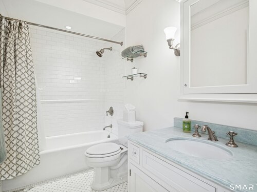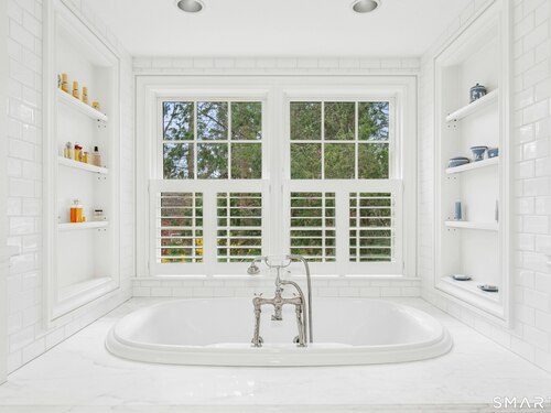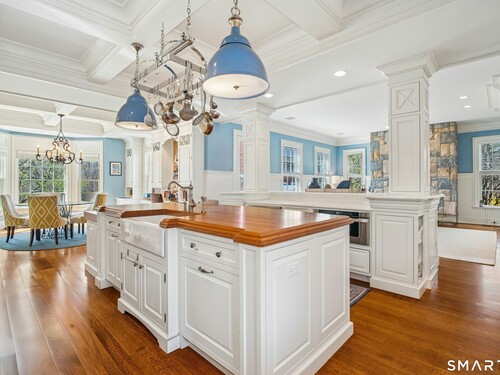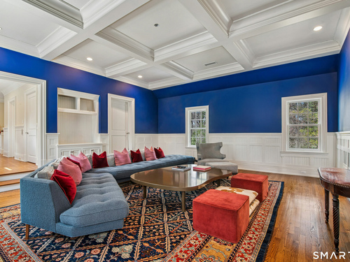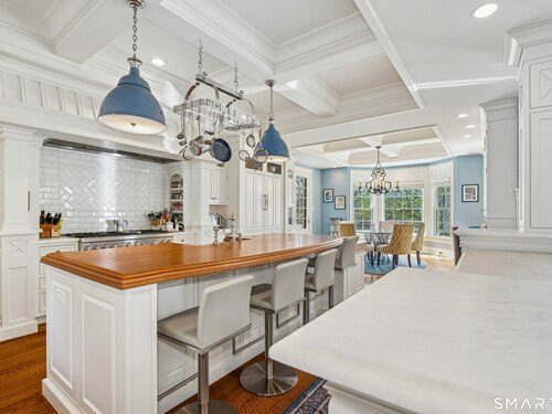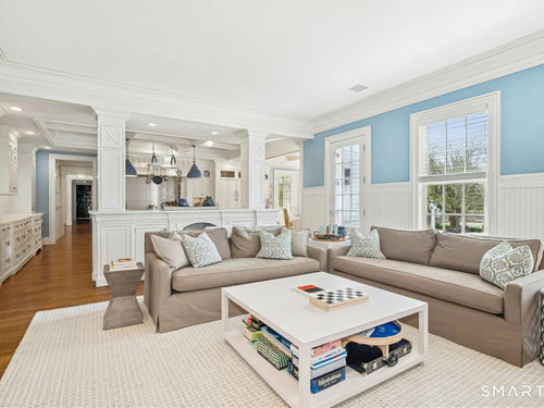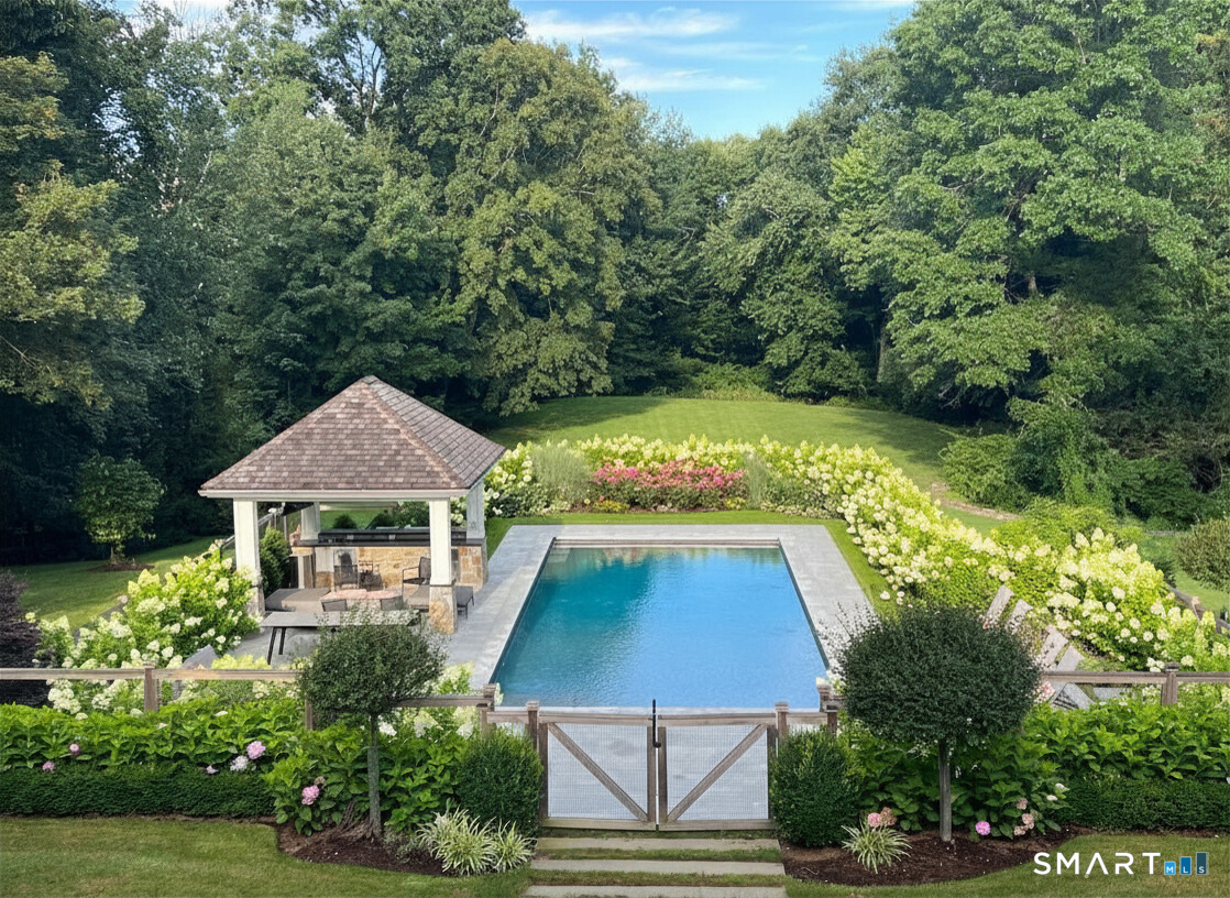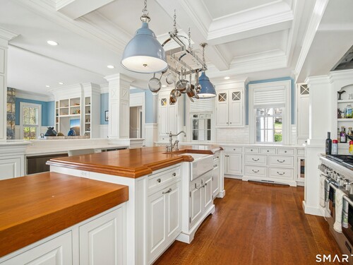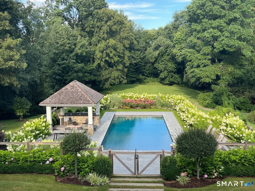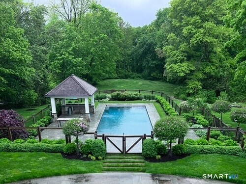 Elegant, sun-drenched and sophisticated, this timeless country estate, built by Alex Kaali-Nagy and decorated by Lynn Morgan, offers the ultimate in superior quality construction, luxurious amenities, exceptional millwork, refined architectural details, built-ins galore and a fabulous versatile floor plan for easy living and gracious entertaining. With four fully finished floors, highlights include 7 large ensuite bedrooms with walk-in closets,10 foot ceilings,7 fireplaces, front to back grand entrance hall, elevator, full house generator, slate roof, expansive covered rear porch, bluestone terraces, fabulous chef's eat-in kitchen opening into the family room, handsome library and adjacent home office, wet bar, spectacular second floor playroom, exercise room and so much more. The serene private 4 acre property on coveted West Rd. is equally impressive. The deep play yard is surrounded by majestic tree, beautiful professional landscaping and glorious gardens. There is a fabulous new Gunite heated pool by Shoreline with retractable cover, a charming custom fitted gazebo and an amazing newly restored circa 1790 barn with loft and several garage spaces. In addition, there is courtyard parking for guests and a separate service entrance for convenience. Make this your forever home to love and cherish and build special memories with family and friends. Welcome to 584 West Rd.!