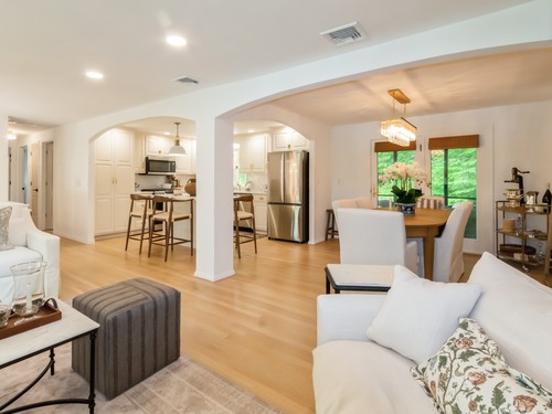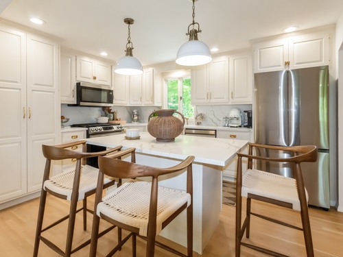 Water Views & Designer Updates - Lovingly renovated home in Lakewood Estates! Located in the sought-after Lakewood Estates community, this beautiful light and airy home offers peaceful water views from all three bedrooms and living room and high-end features throughout. Enjoy worry-free living with a new roof, insulation, A/C, water heater, newer furnace and more! The renovated chef's kitchen boasts a dramatic waterfall quartz backsplash, center island, stainless steel appliances, and elegant brass hardware. The open floor plan is enhanced by custom archways, making it ideal for entertaining. Just off the dining room, a bonus screened-in porch provides the perfect spot to relax and take in the serene surroundings. Main level has just been freshly painted and crown molding added to dining room. Nothing to do but move in - they say a picture says a thousand words so please scroll. Voluntary lake association membership. Sale subject to owners finding suitable housing.